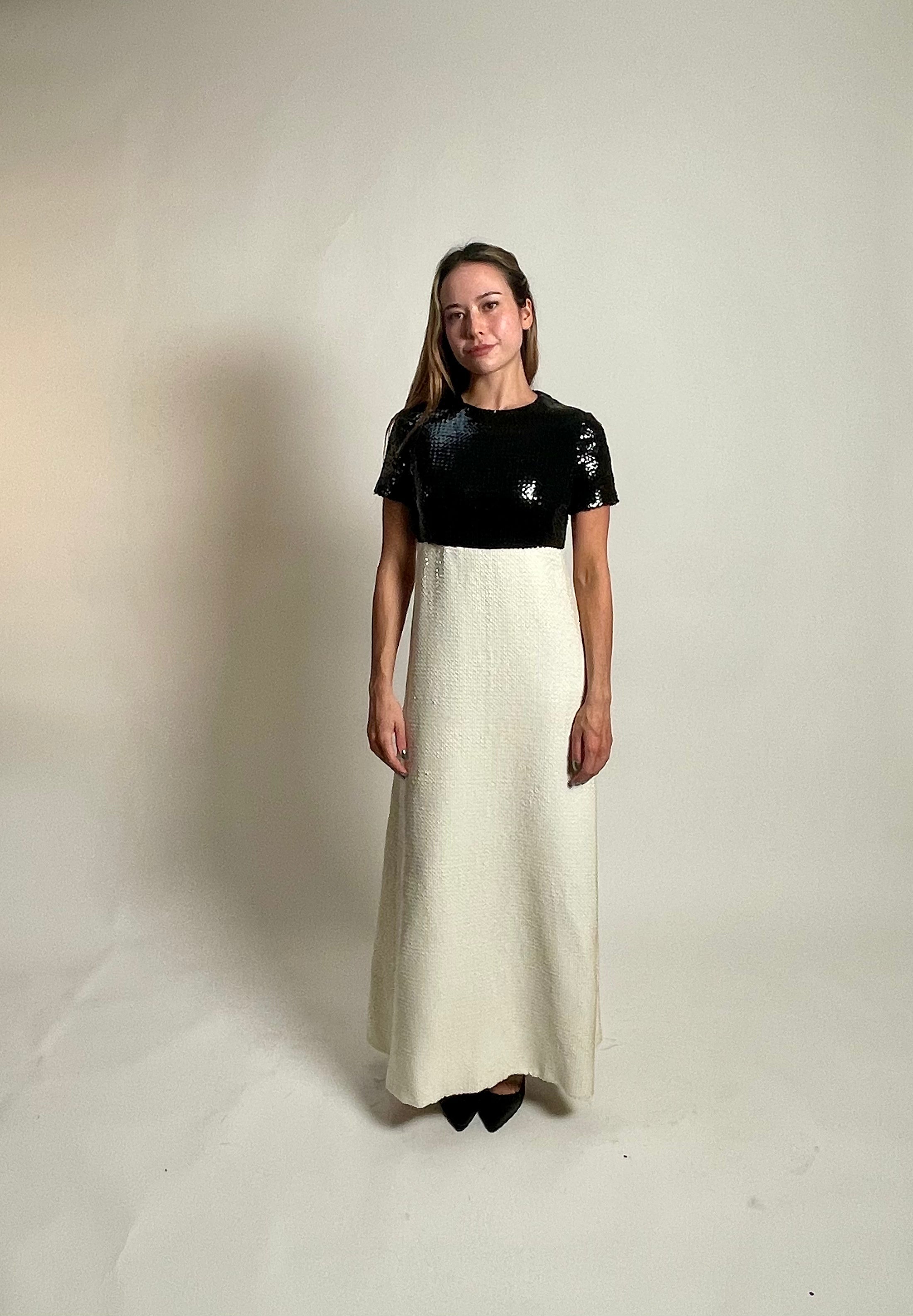 1960s Christian Dior Monochromed Sequin Maxi Dress