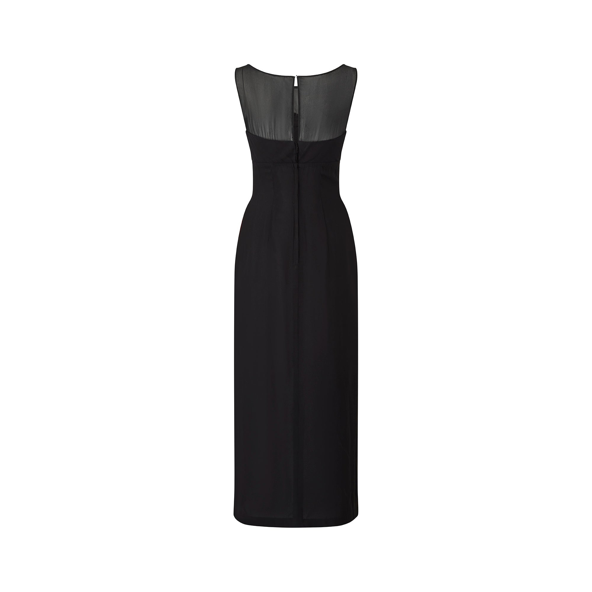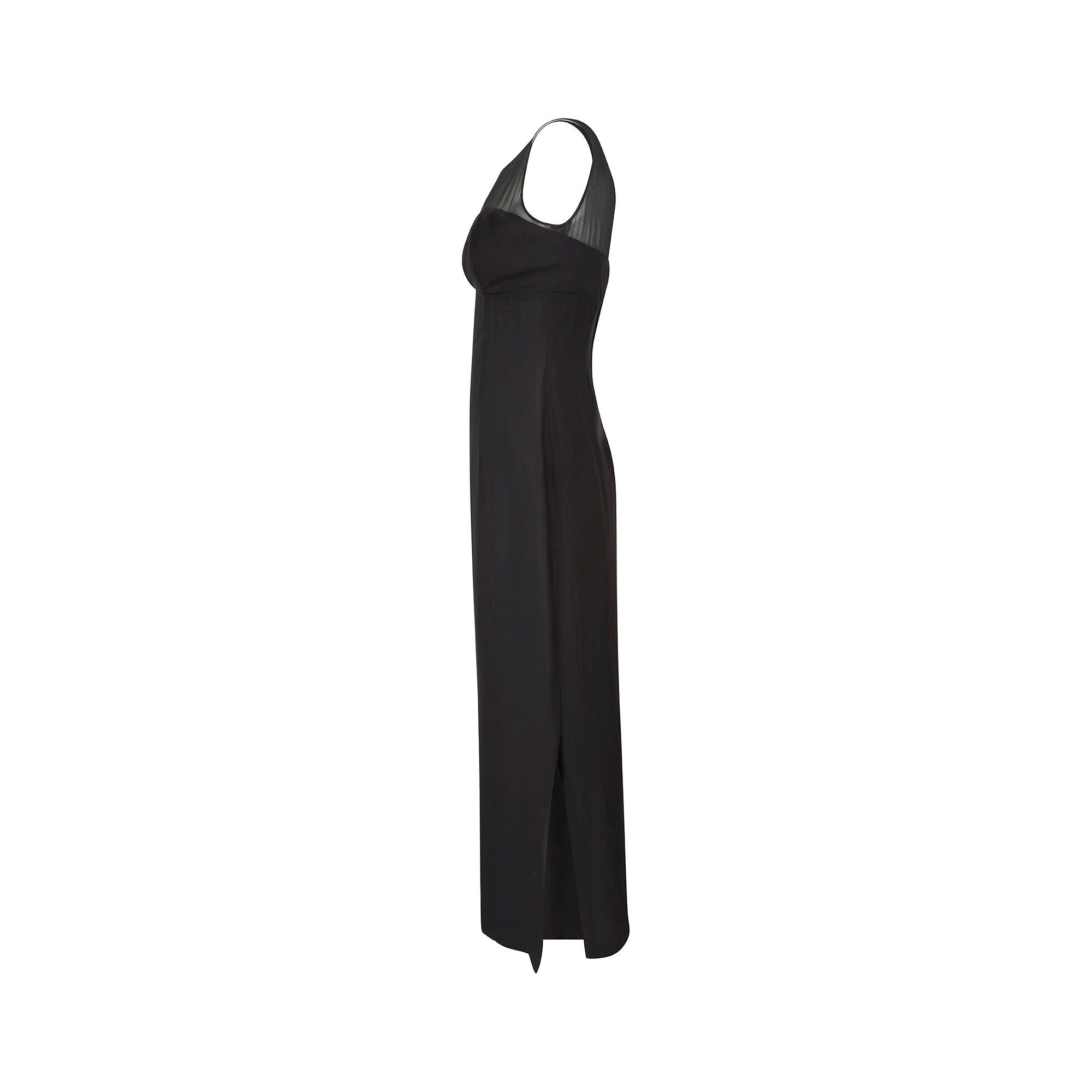 1960s Black Crepe and Georgette Column Dress