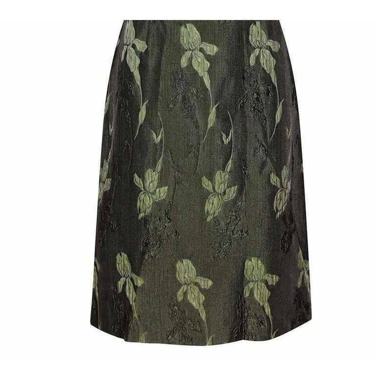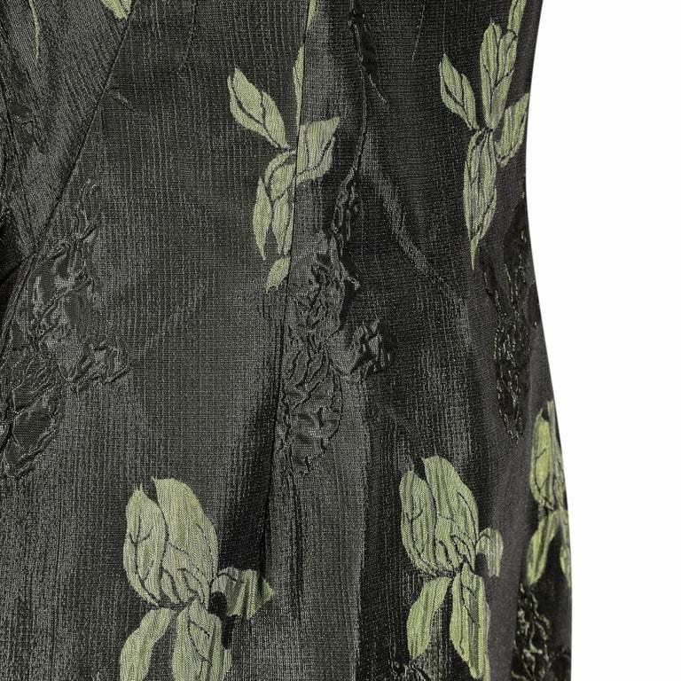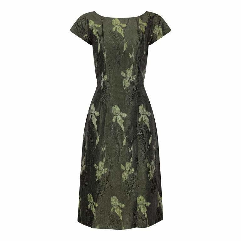 1960s Green Floral Metallic Brocade Dress