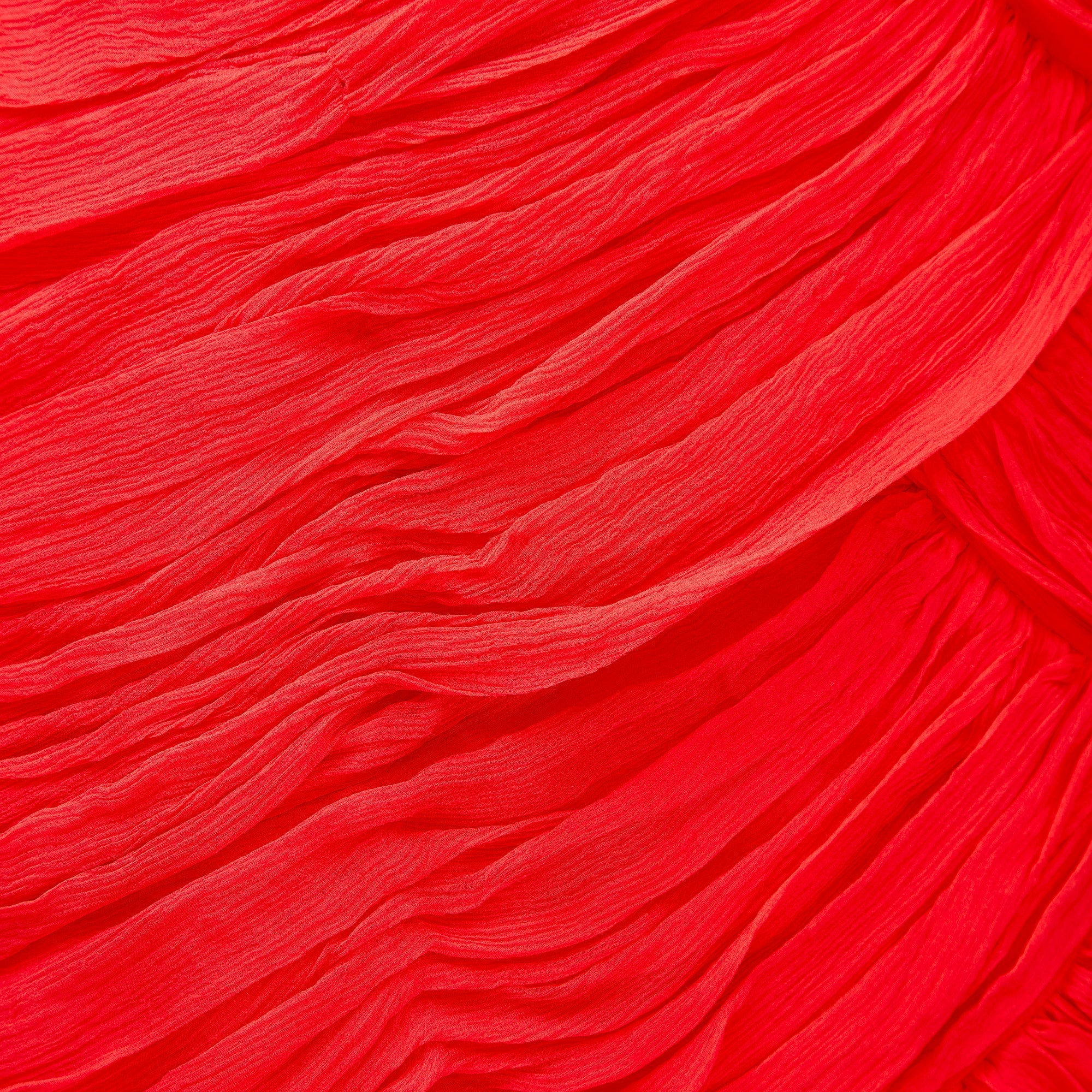 1960s Red Silk Chiffon Pleated Dress with Train