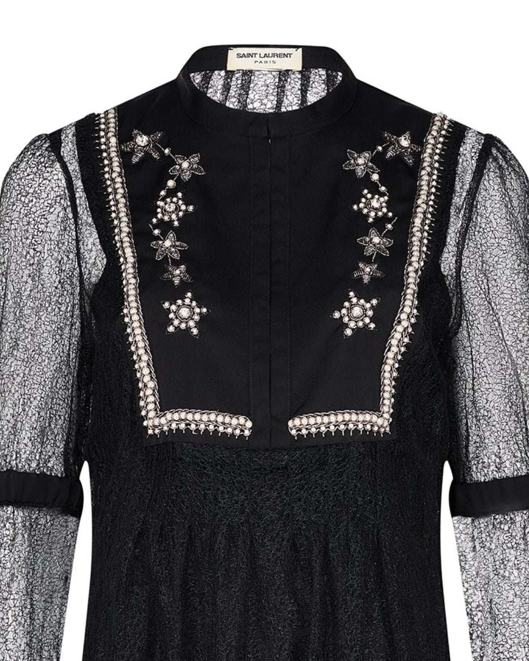2017 Saint Laurent Embellished Yolk Black Lace Dress