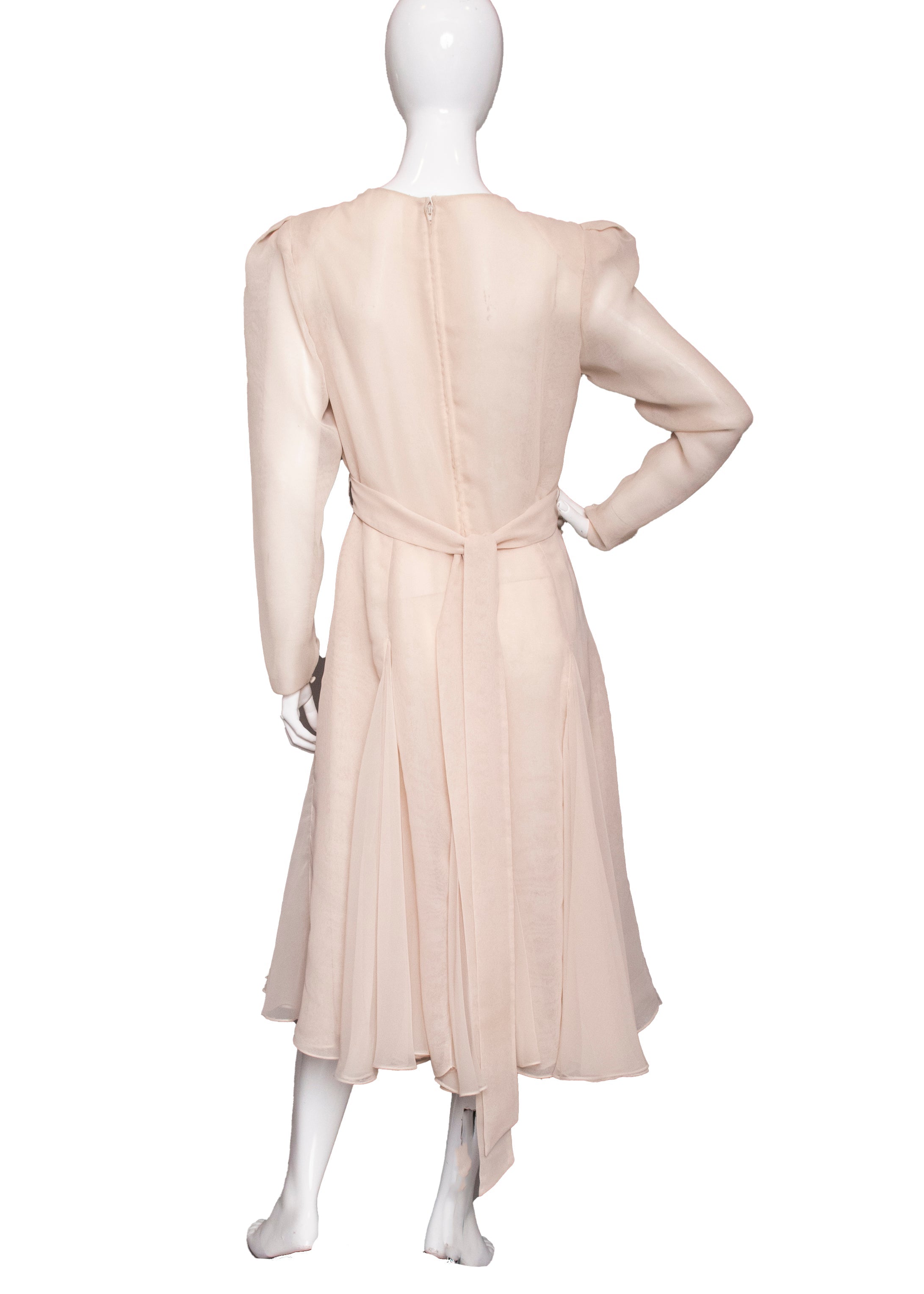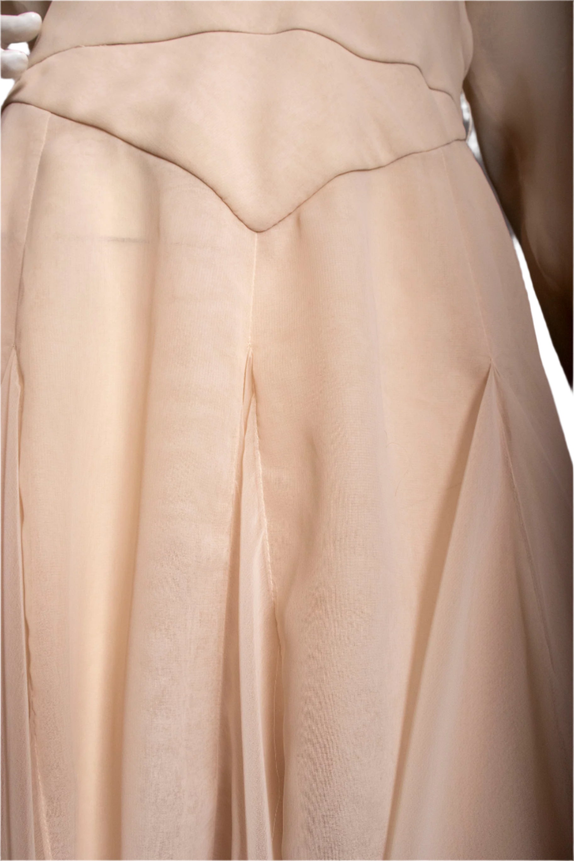 This elegant dress features delicate chiffon layers, shoulder pads, and a full pleated skirt that flows gracefully. The structured waist with a sash enhances your silhouette, while the zip-up back and fully lining (except for arms) ensure comfort and fit. Designed to accommodate a small or ample size bust, this timeless piece combines sophistication and versatility, making it perfect for any season or occasion—from daytime events to evening outings.