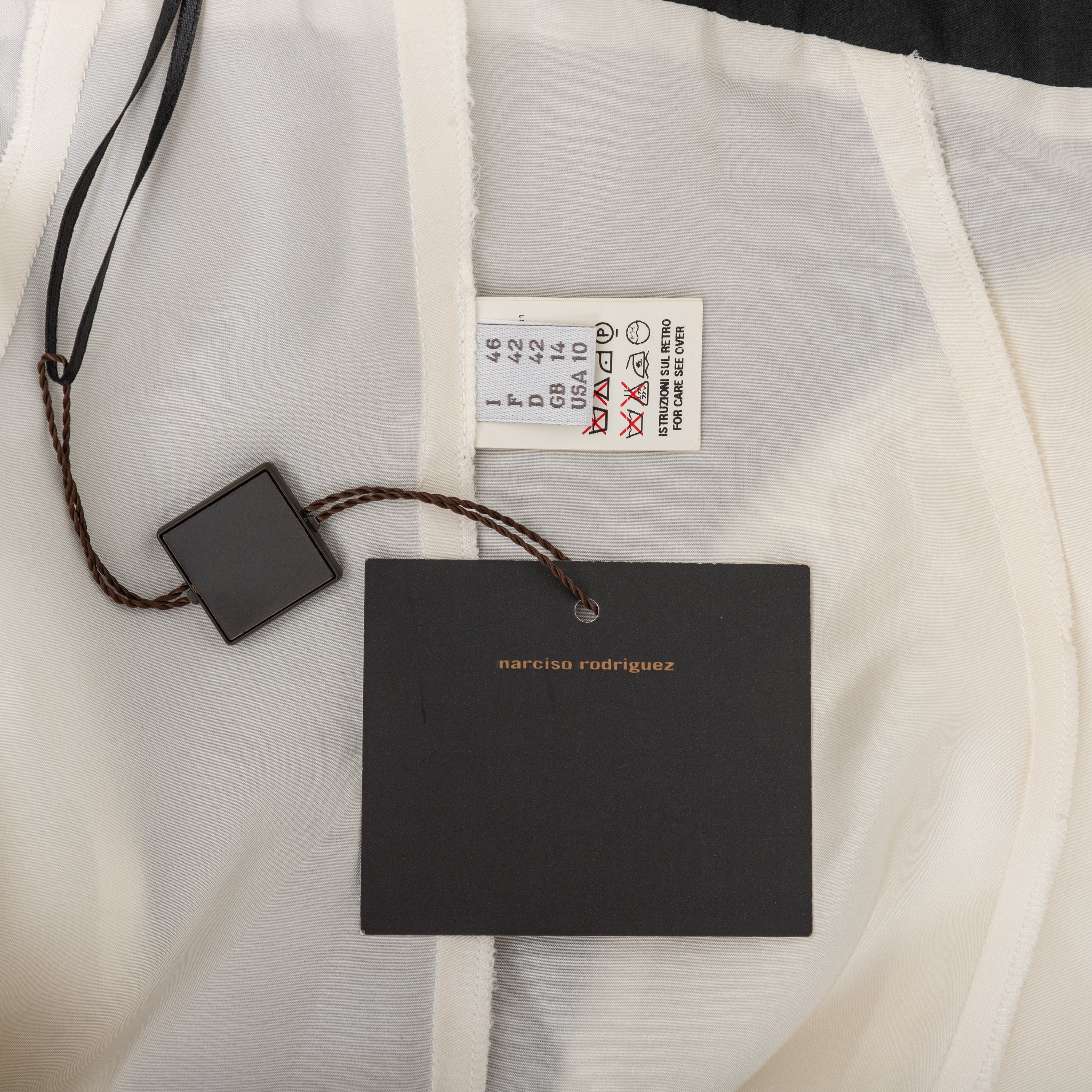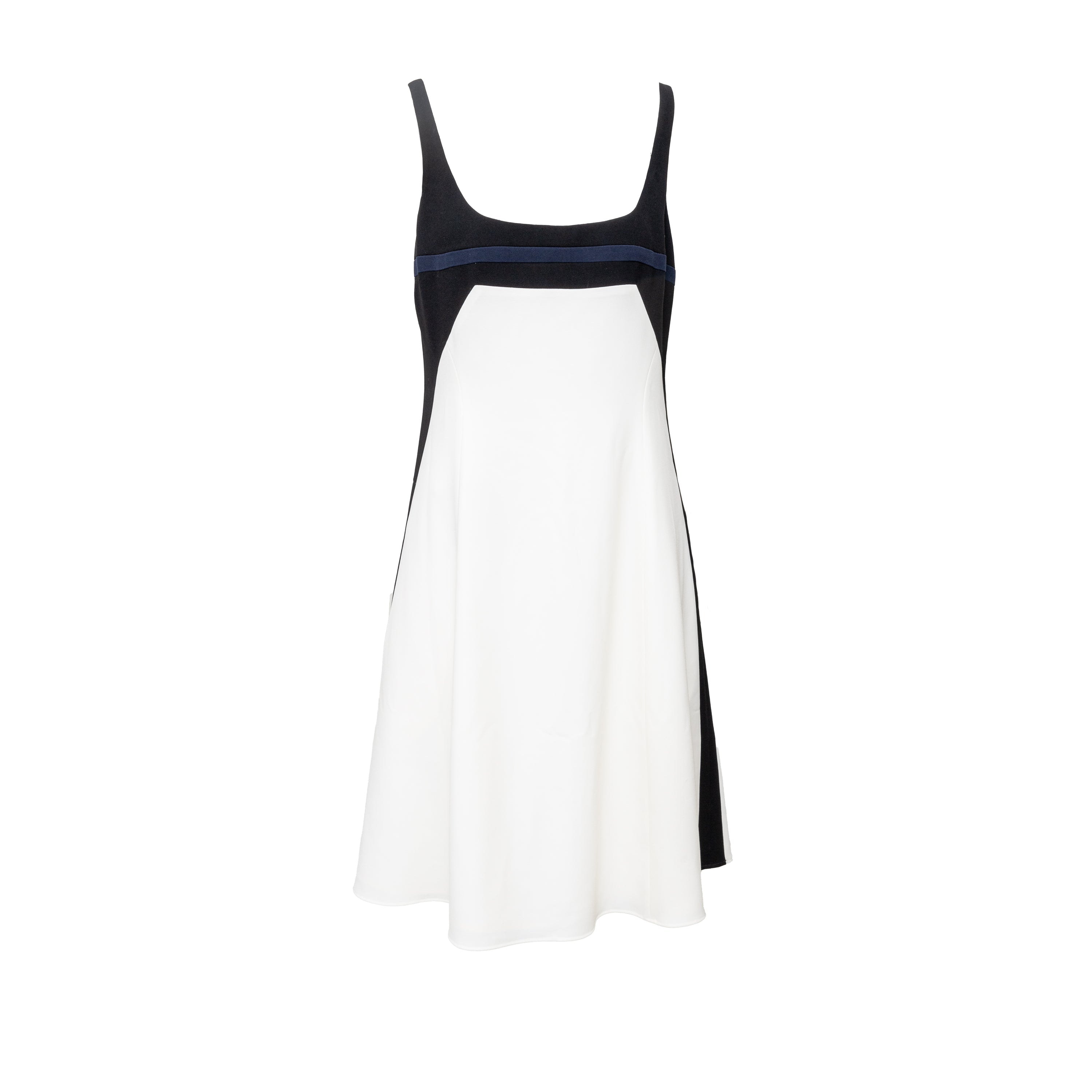 EfEffortlessly chic Narciso Rodriguez dress in a triacetate blend. Features a flattering A-line cut, thin straps, bold colorblocking, and a soft blue accent. Back zip closure.