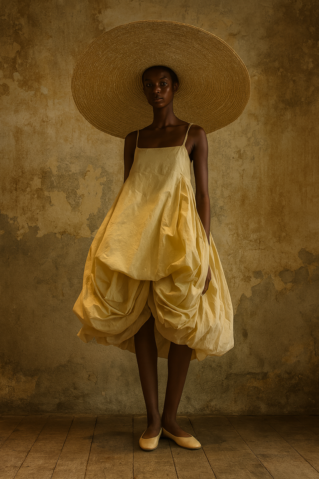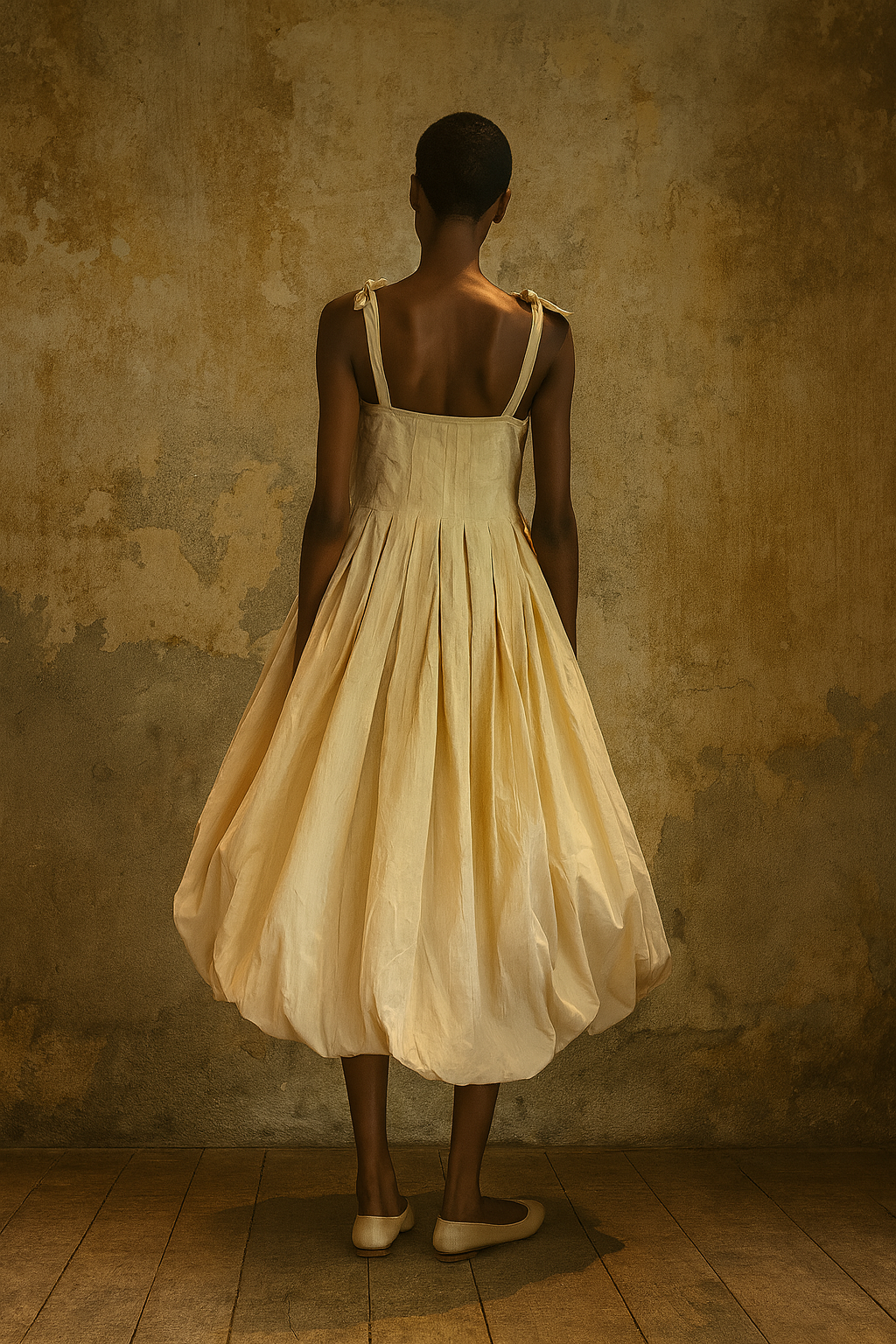With a side zip and two adjustable straps that tie on the shoulder, it offers versatile styling options. It's a unique piece that features a timeless essence.