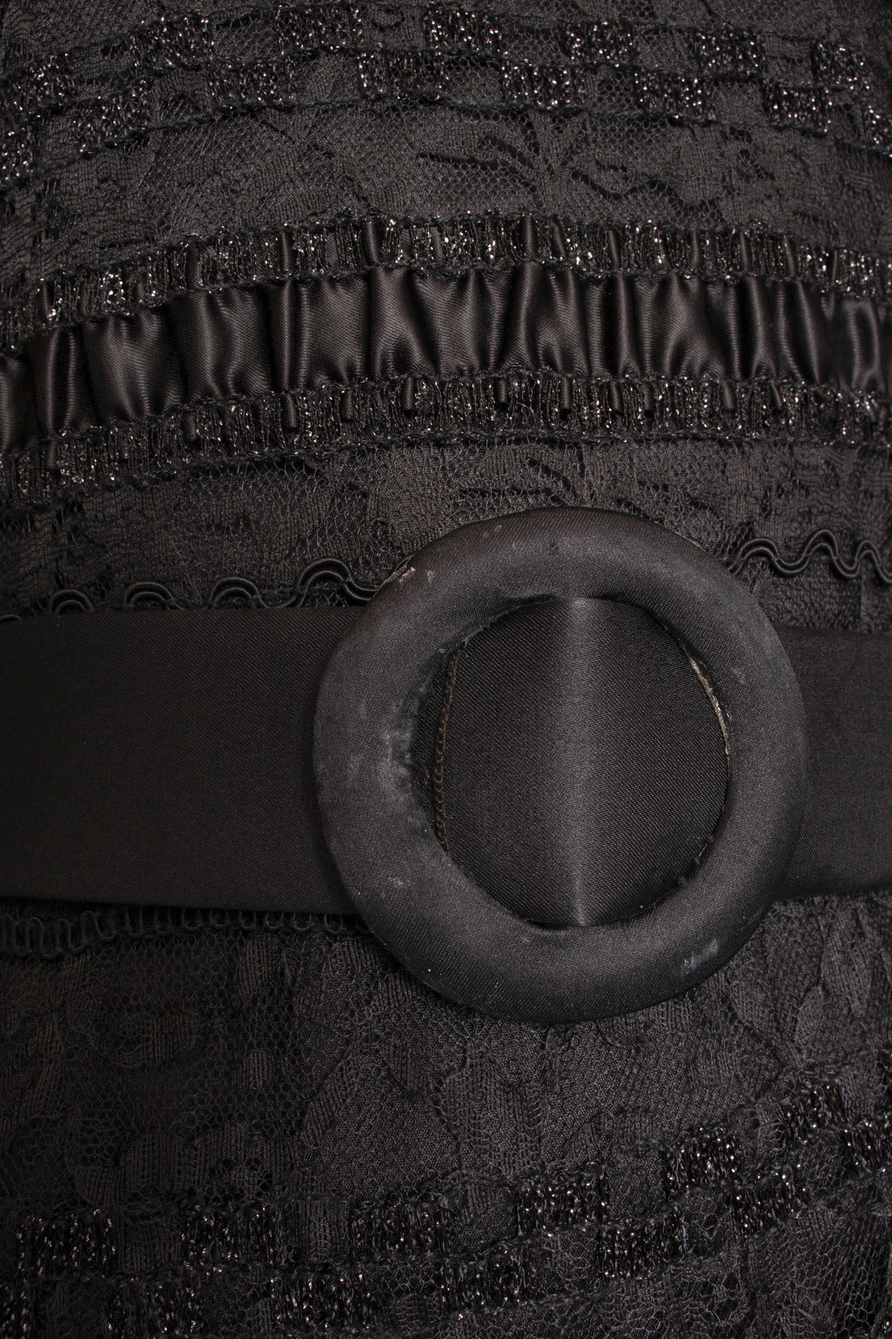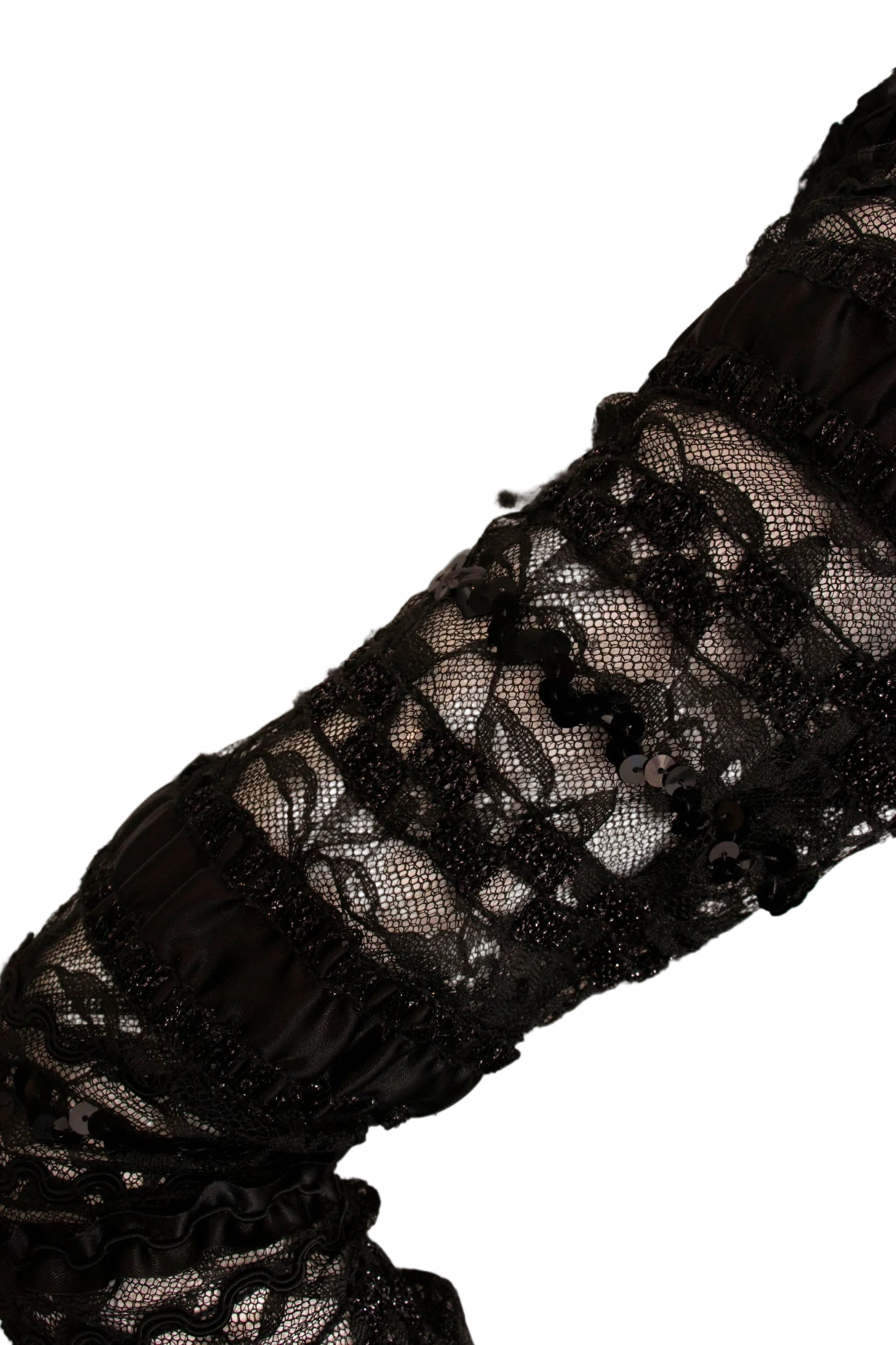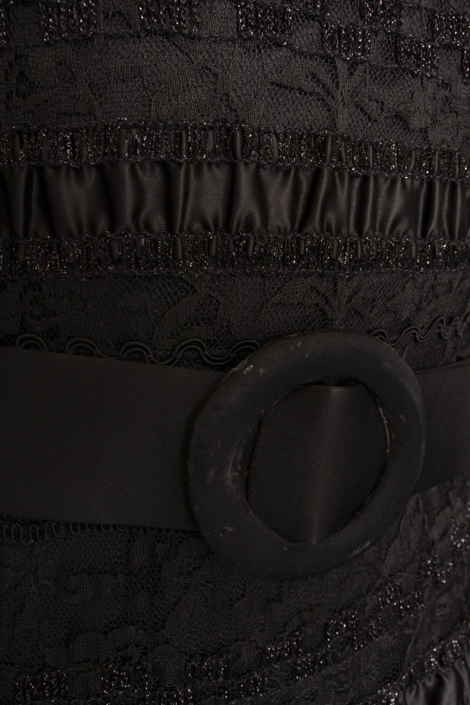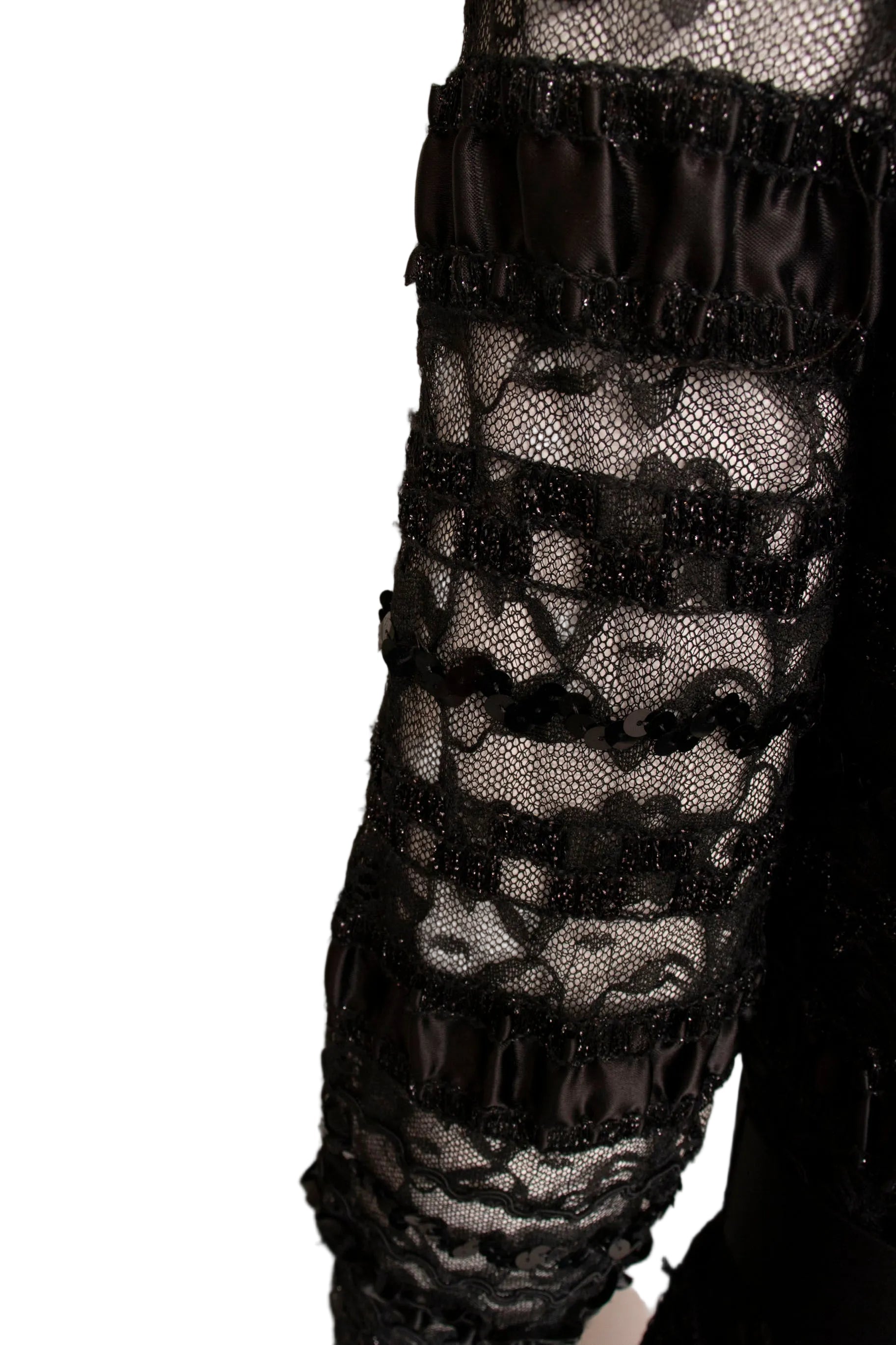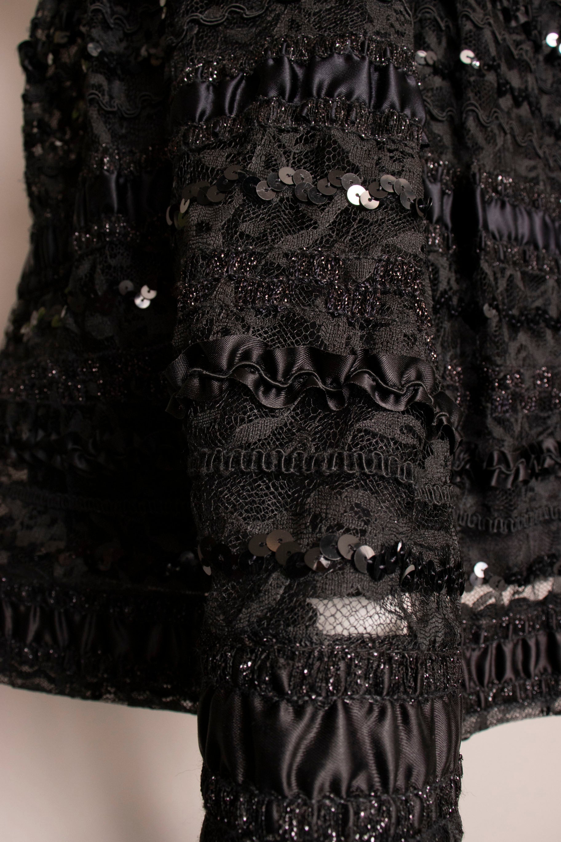 - Fabric: No content tag. Sequined lace and black silky fabric.