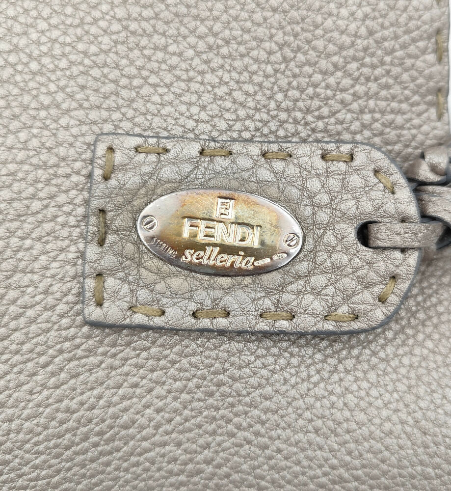 FENDI SELLERIA METALLIC GREY MINI TOT BAG