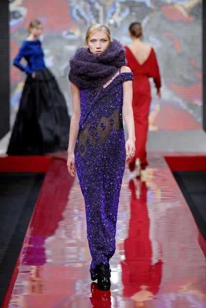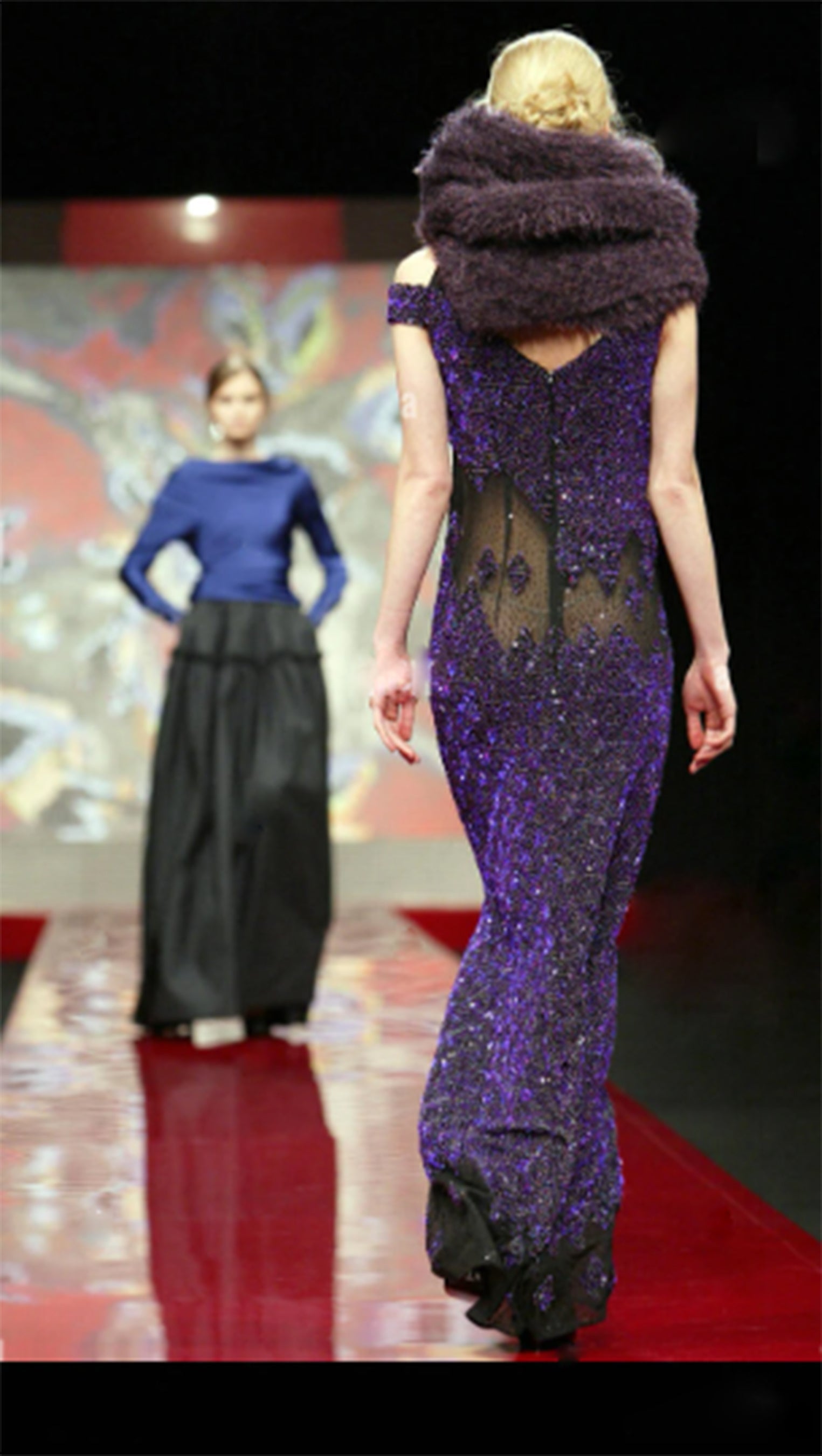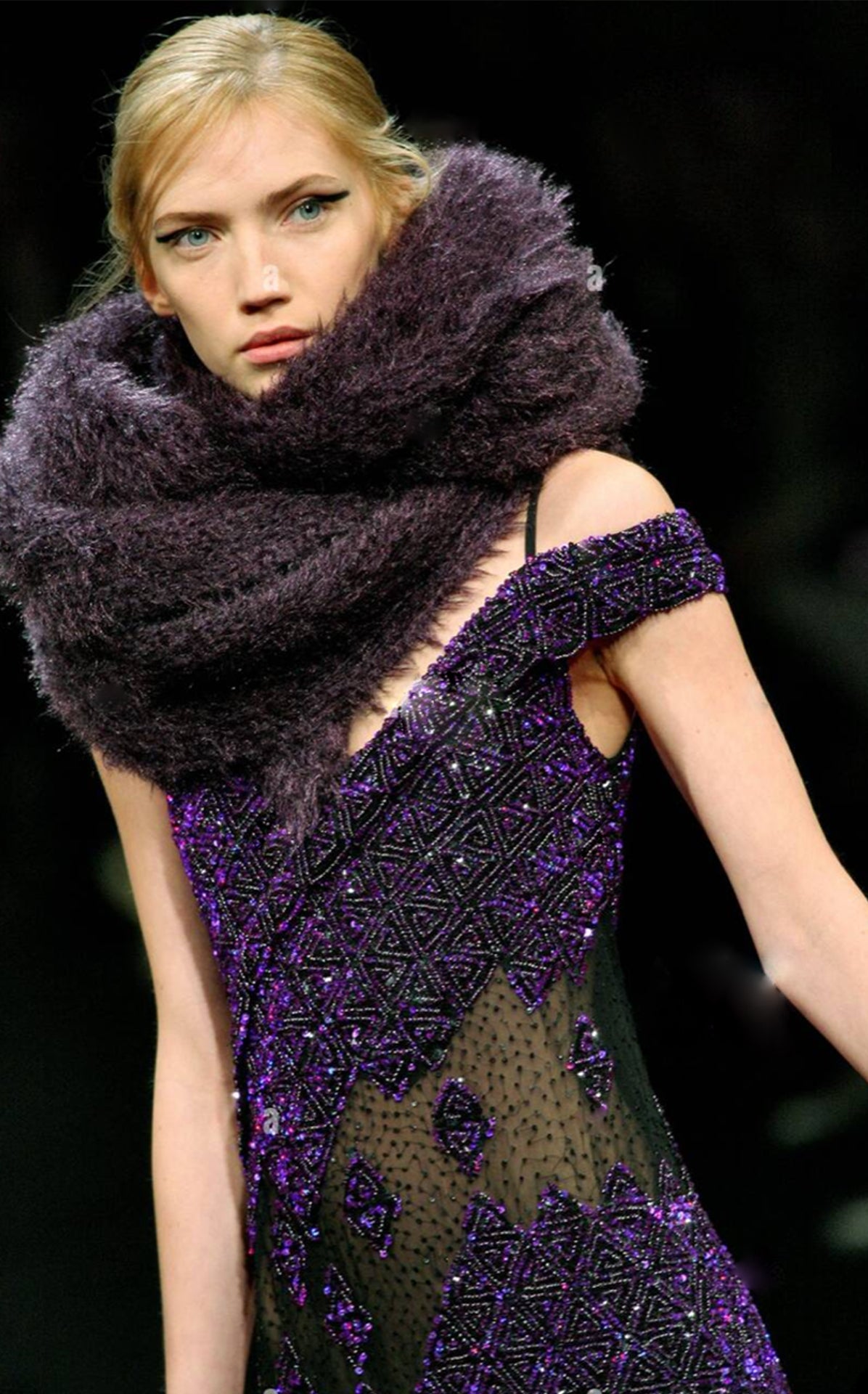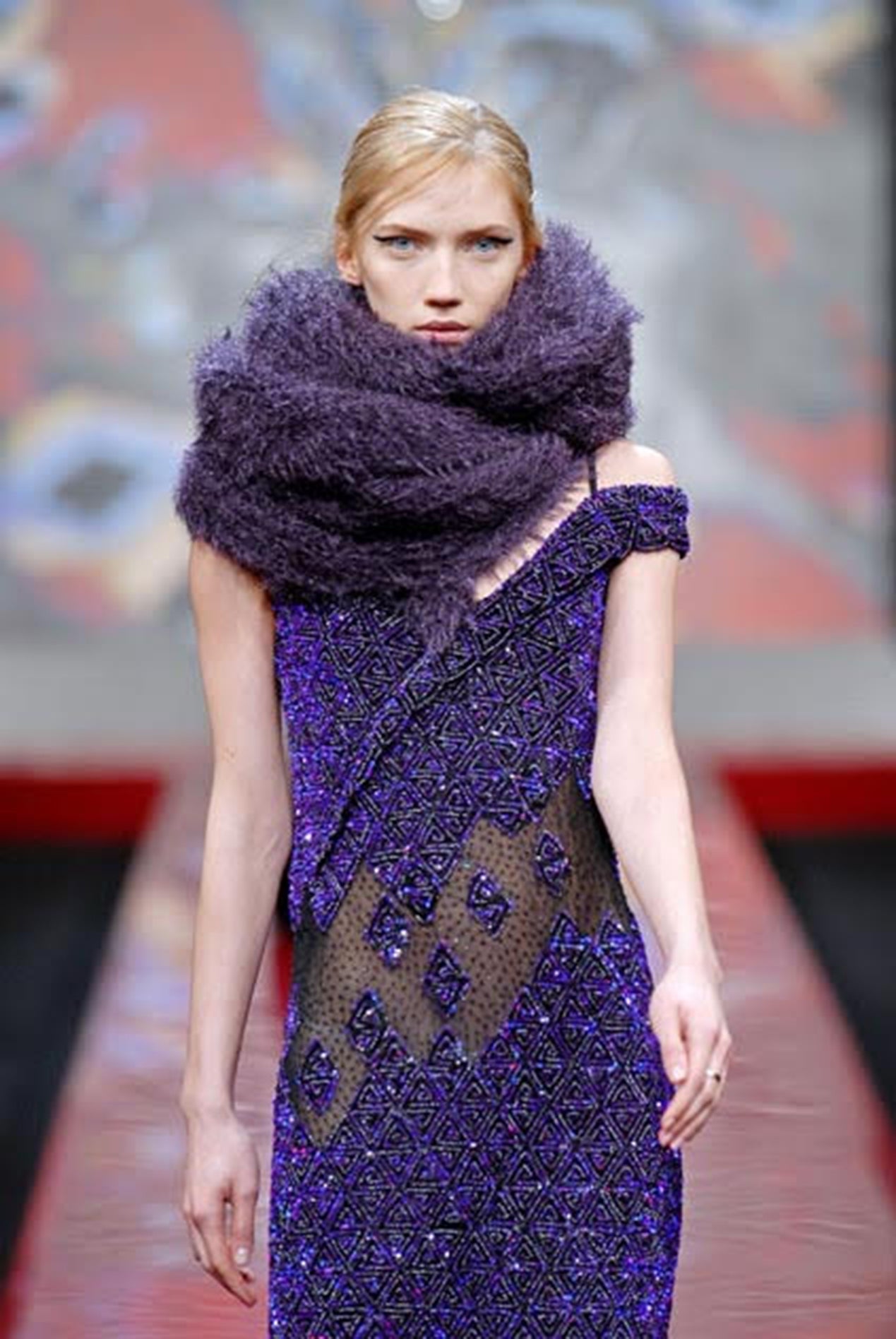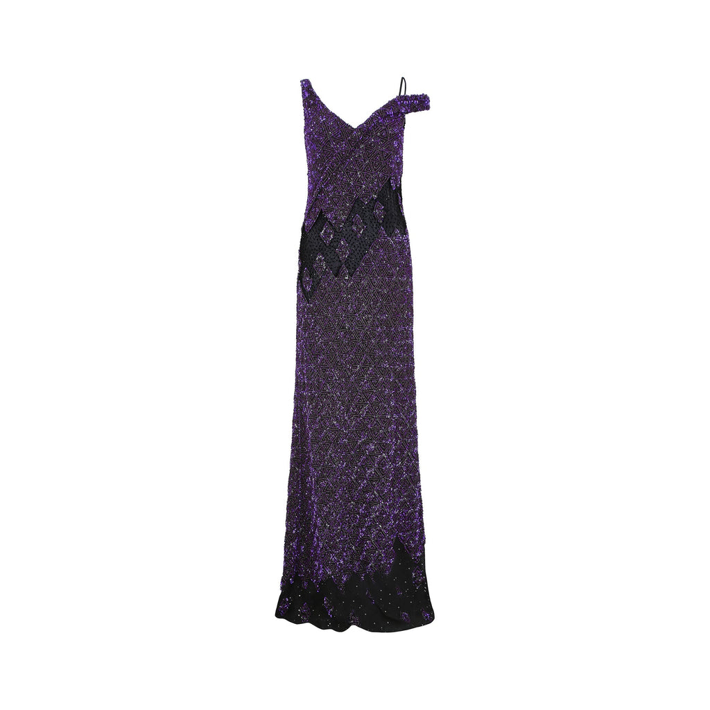2007 Runway Guy Laroche Purple Sequin Maxi Dress