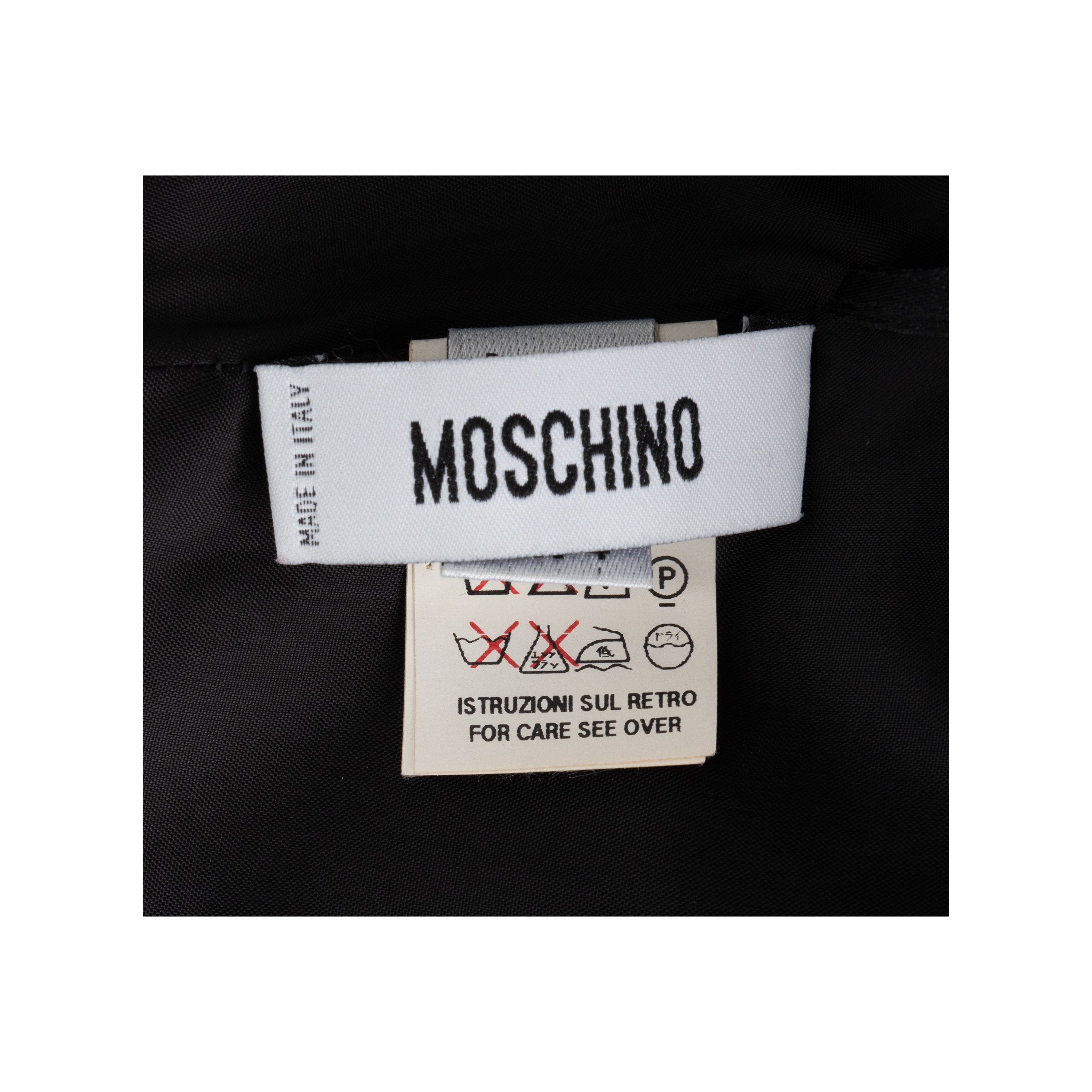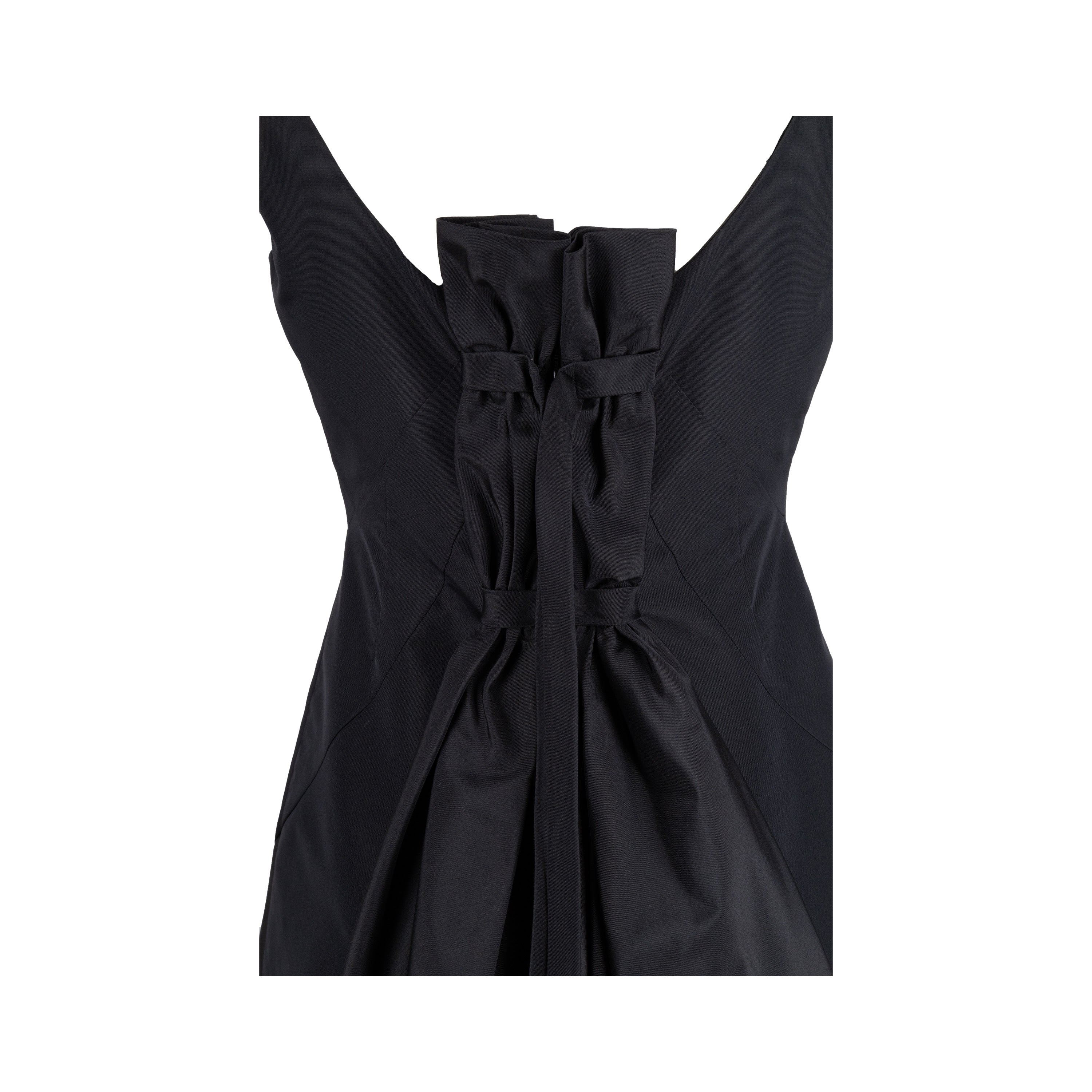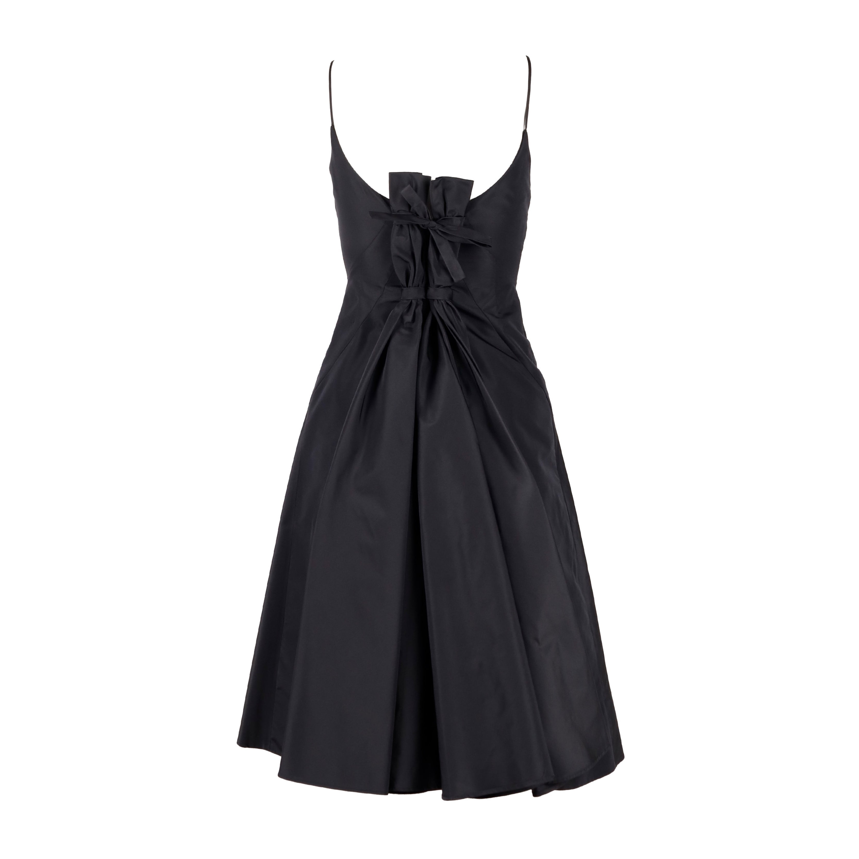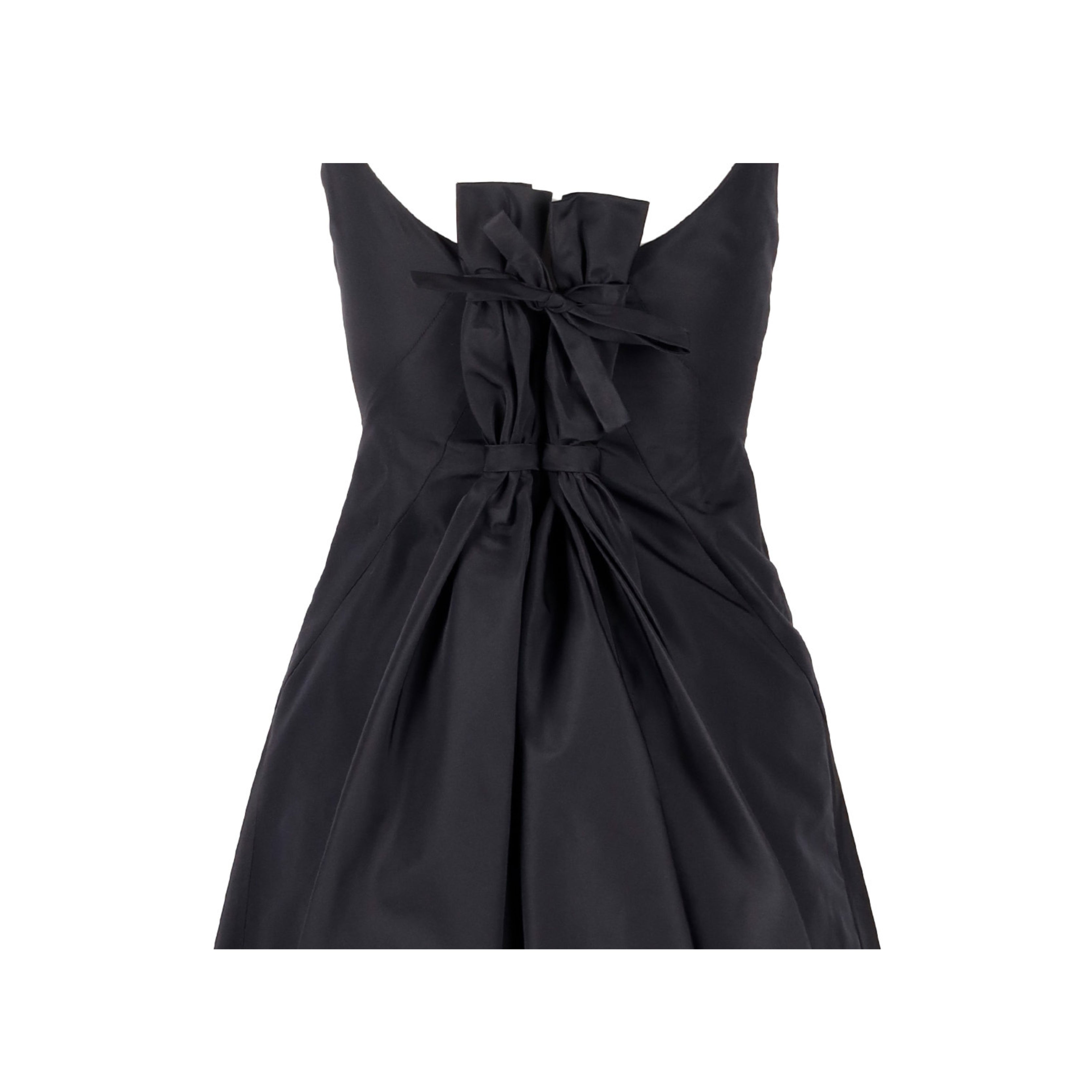 Expertly crafted and coveted, this Moschino dress in silk blend fabric features a sleek design with a sweetheart neckline and thin straps. But the true standout is the back, with its intricate pleats and charming tie-knot bow detail. Elevate your formal wardrobe with this timeless and elegant piece.