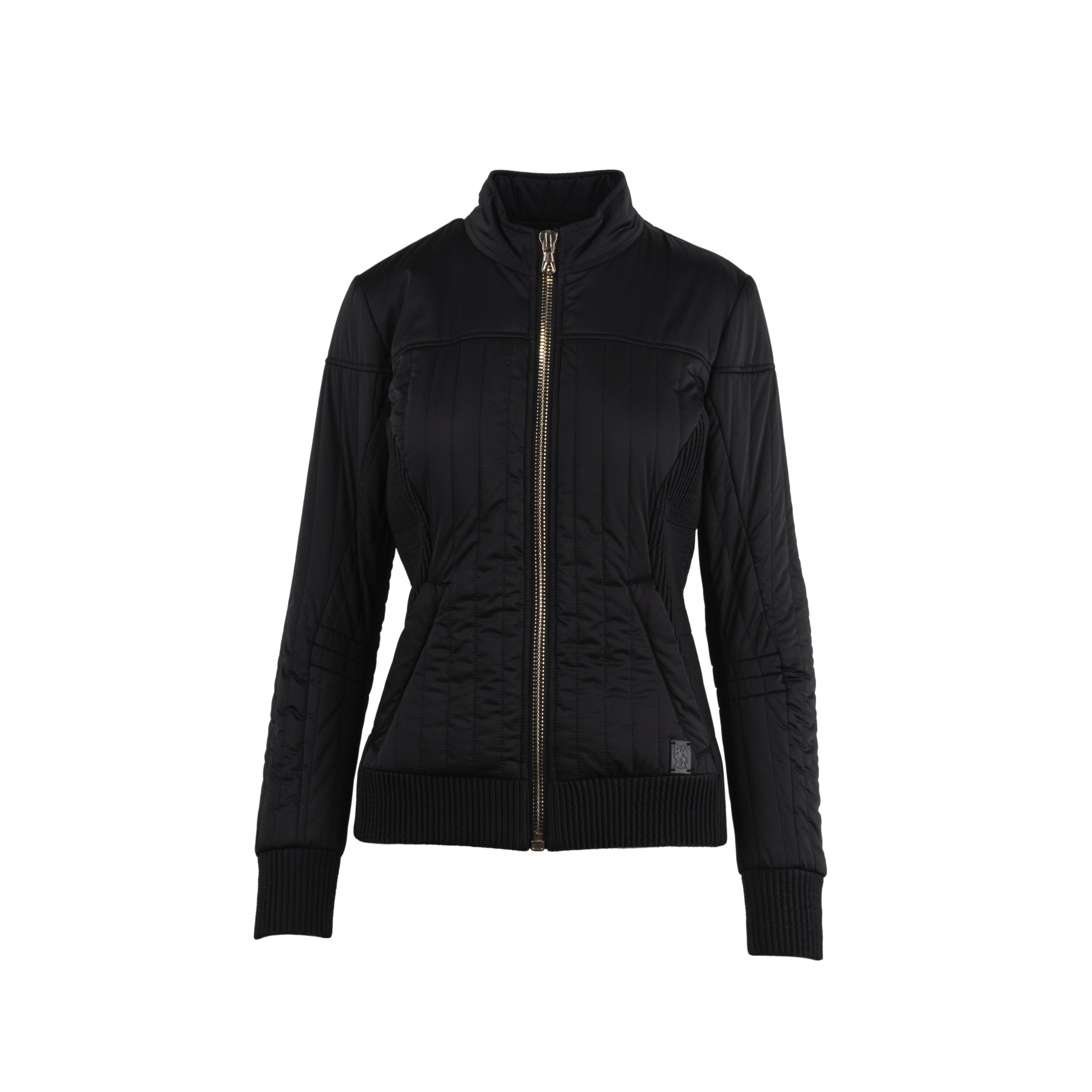 Bacon black down jacket. Slim fit, golden zip fastening and two front pockets.