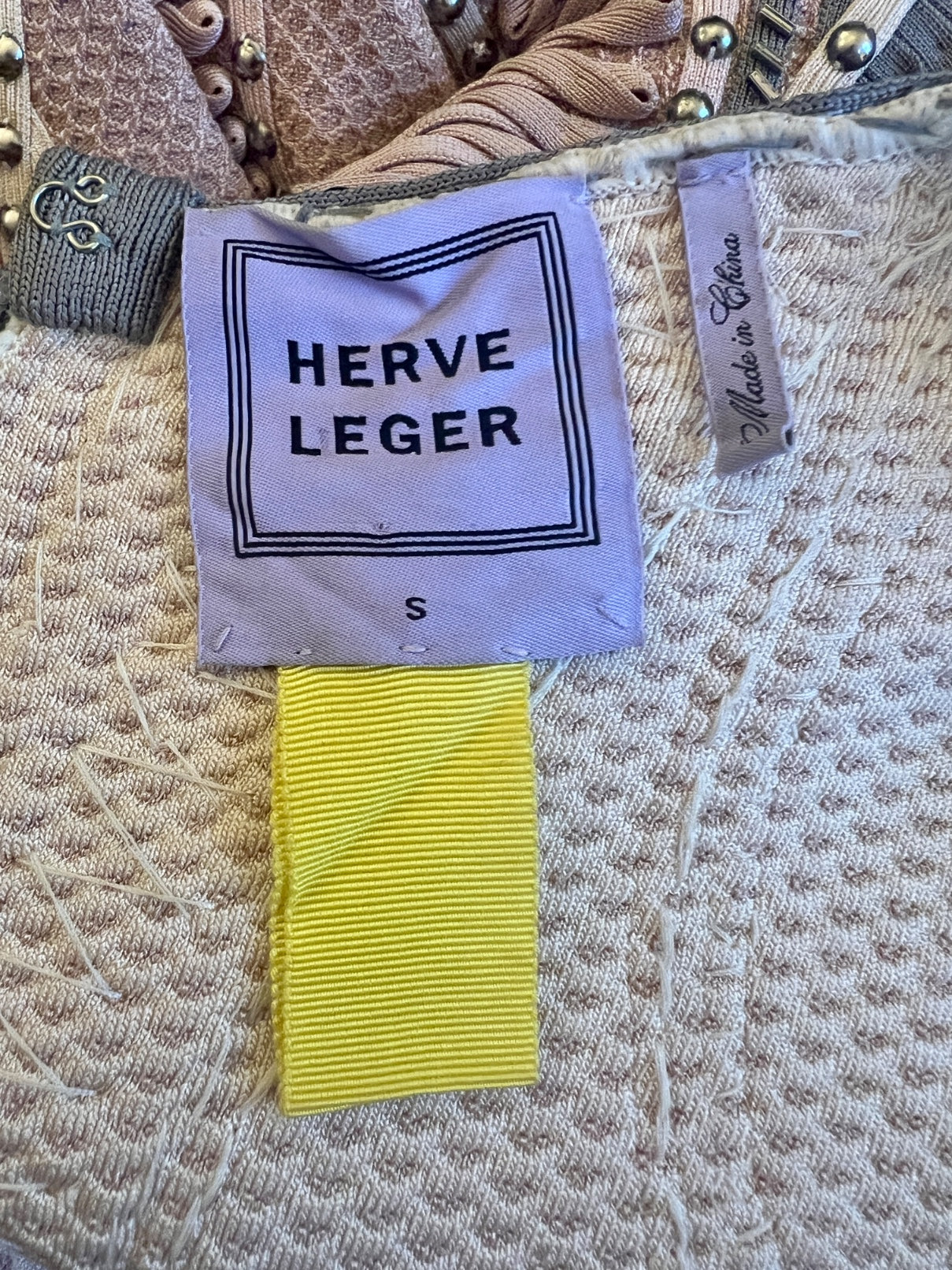 2015 Hervé Léger Runway Pink and Grey Bandage Dress with Stud Detail