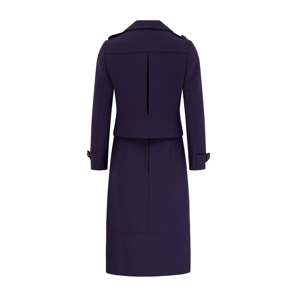 1970s A-line Purple Wool Jacket and Skirt Suit
