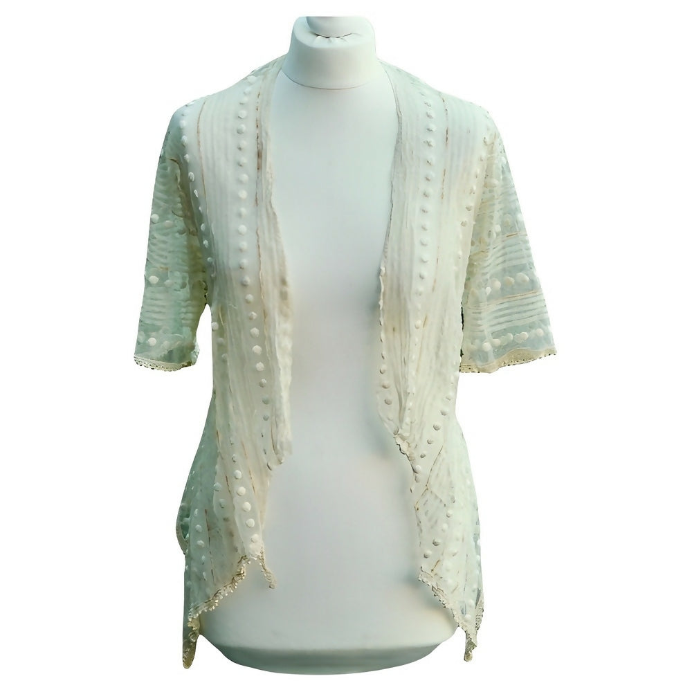 Beautiful antique cream net lace jacket with a pleated and fabric circle design.