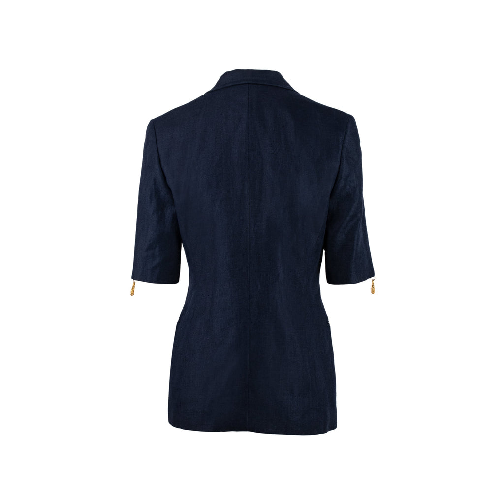 Blue Baila cotton jacket. Fitted style with half sleeves, front button fastening and decorated with maxi eyelets.