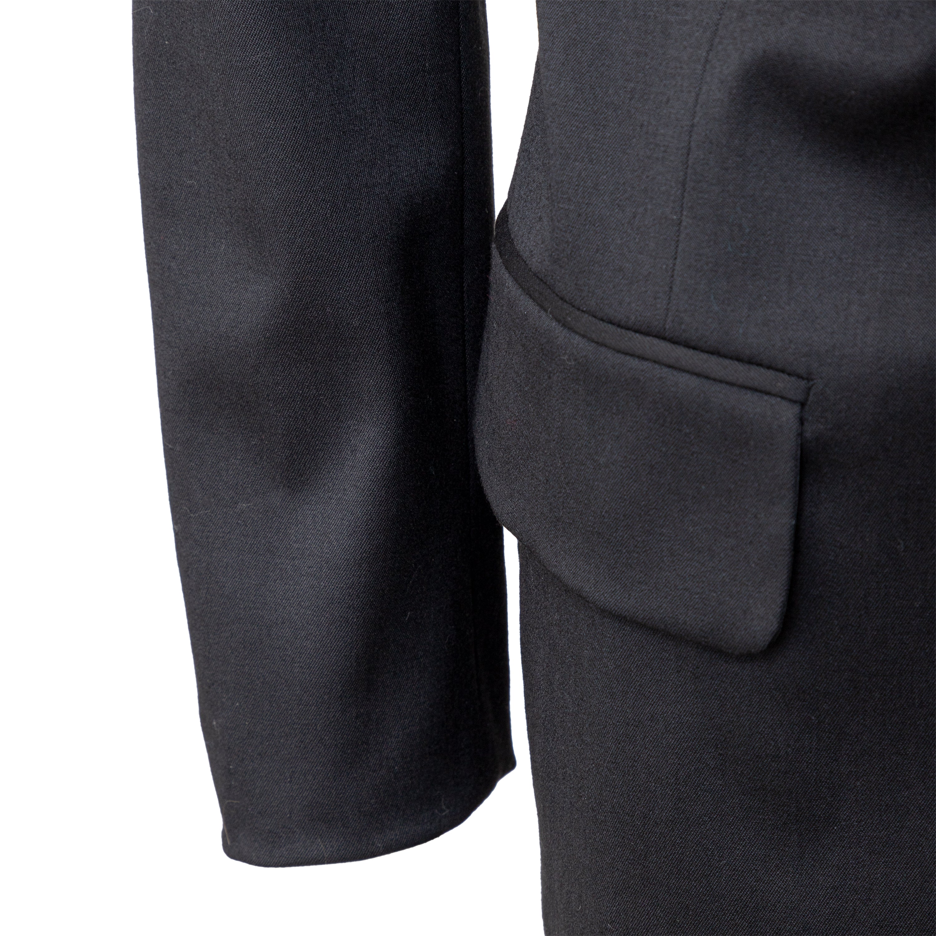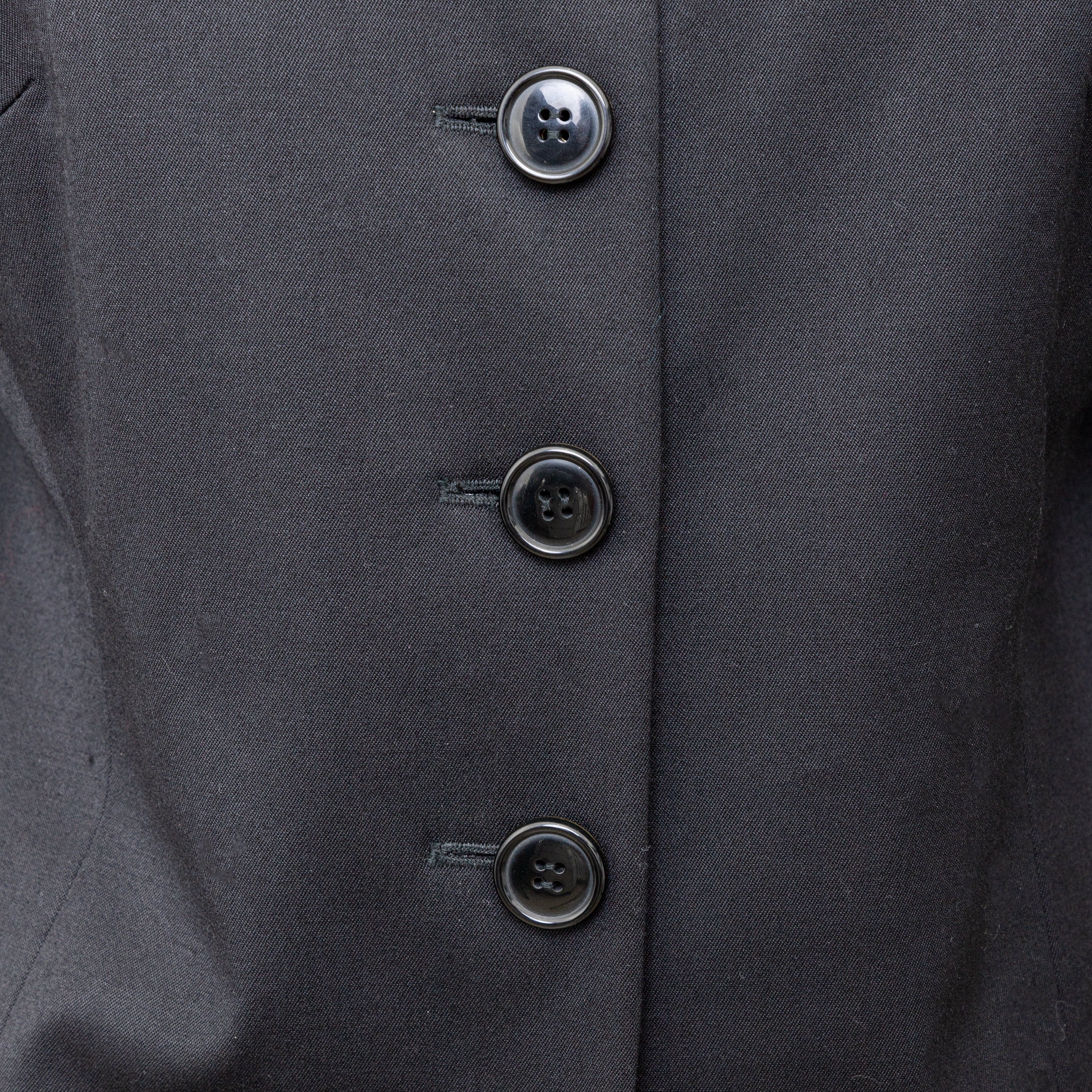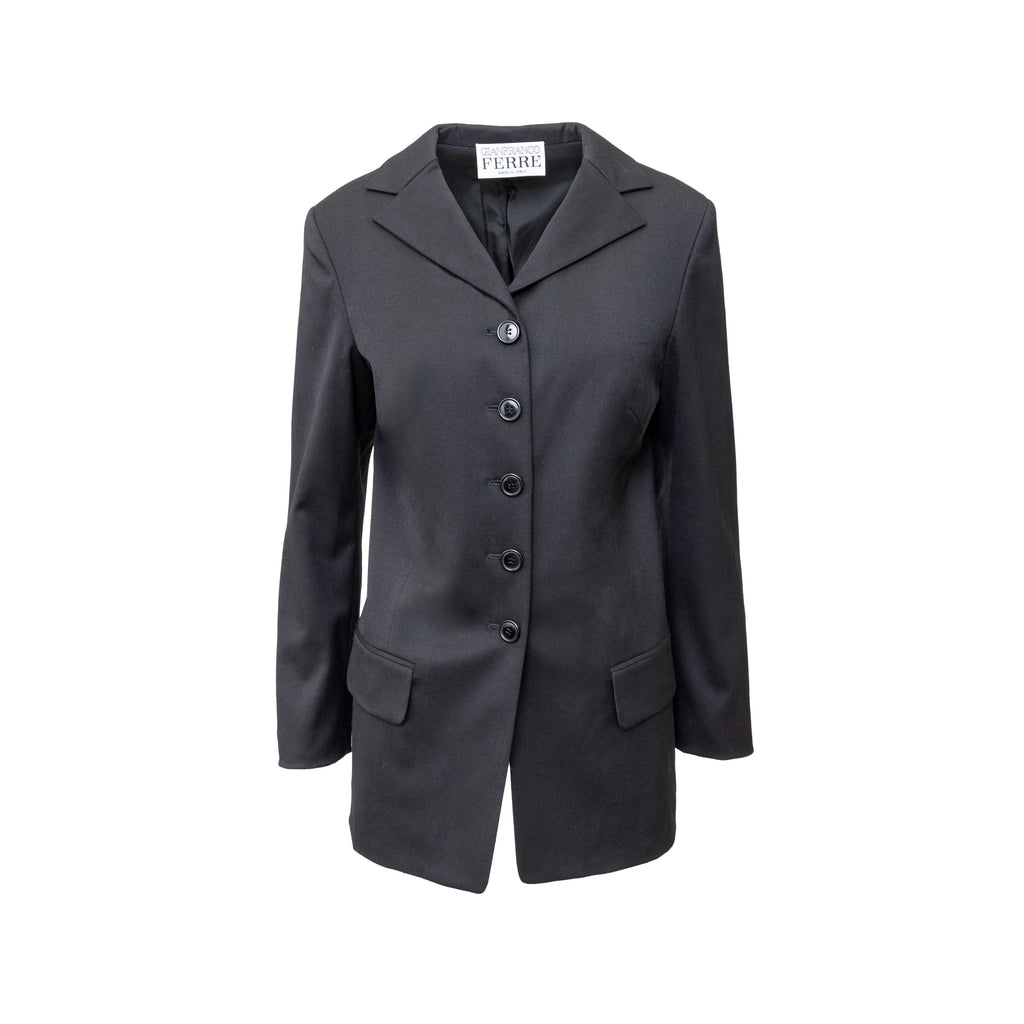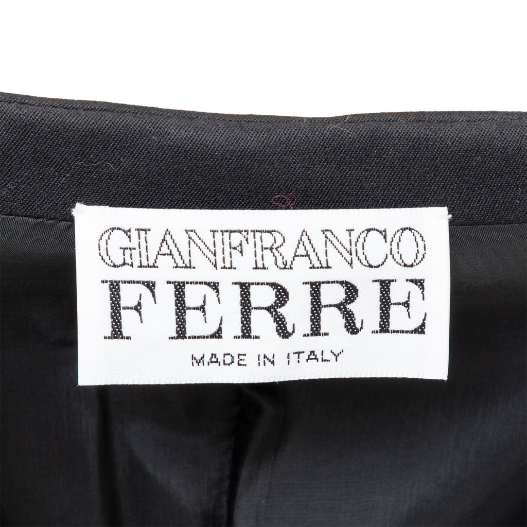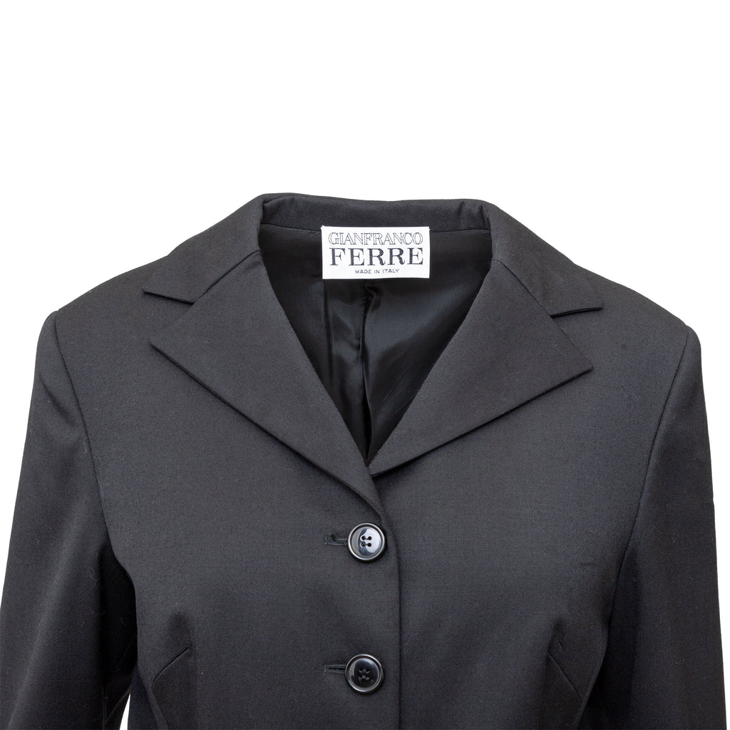 The Gianfranco Ferré Black Jacket from the 90s is a classic addition to any wardrobe. Made from high-quality black wool, this long fit jacket features a collar with lapels and a five button front closure.
