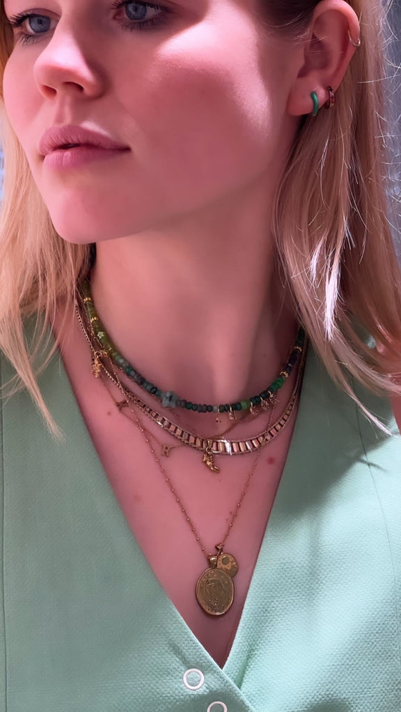 The stunning green tones of this necklace can help support the Heart Chakra which is the middle Chakra and represents the ability to be loved and to love and helps you to treat yourself and others with kindness and respect.