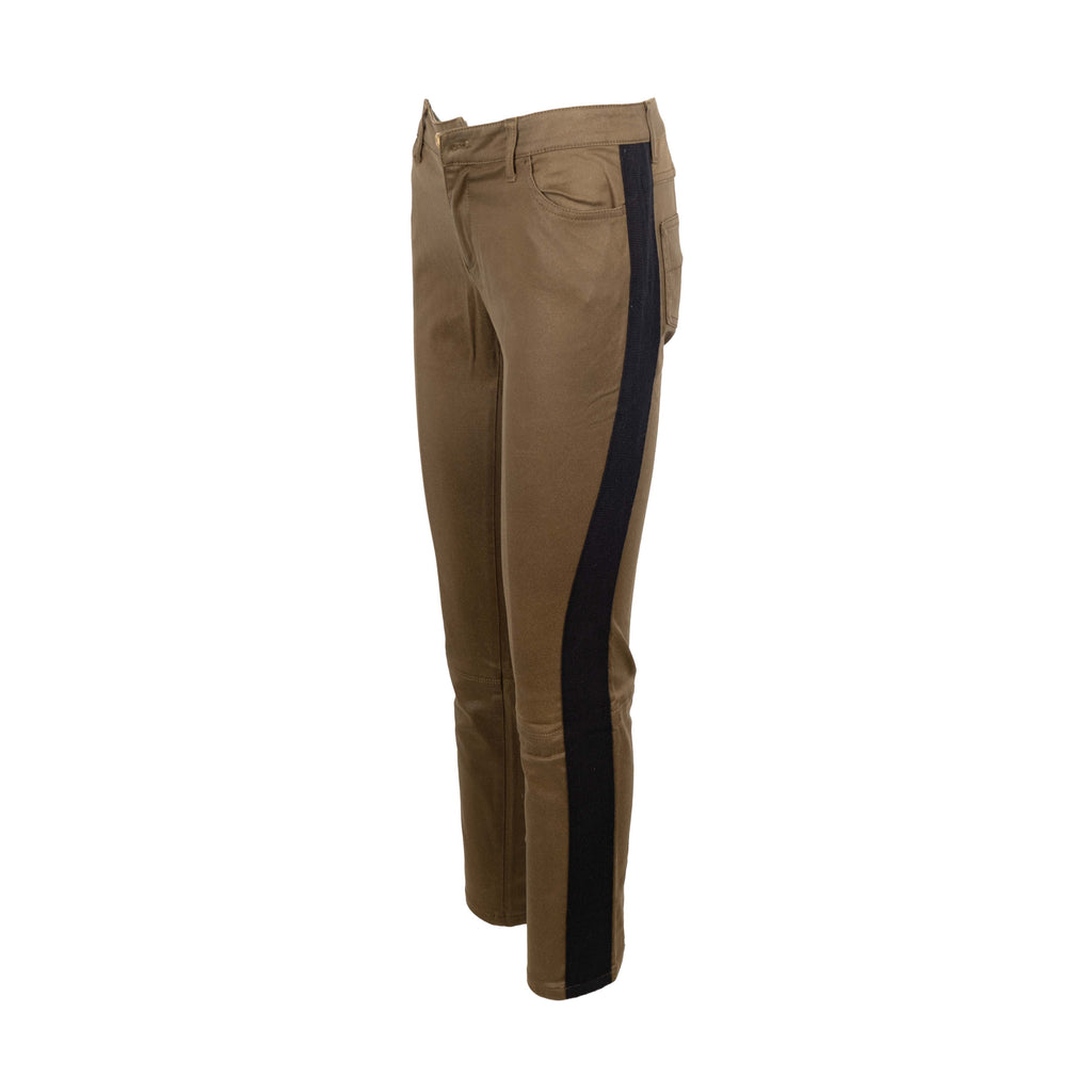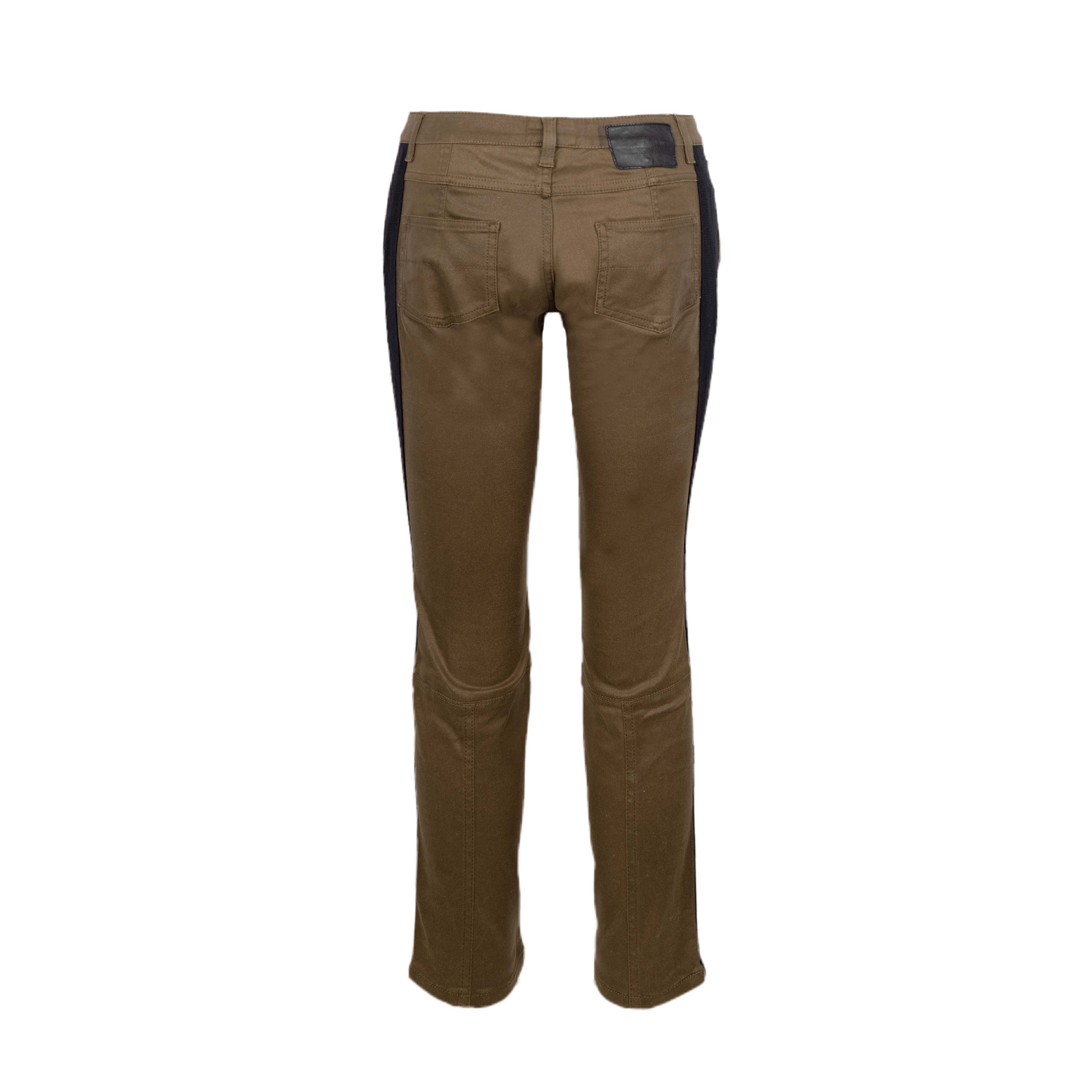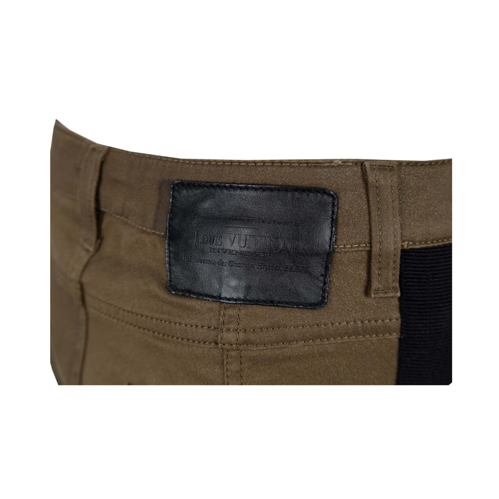 The Louis Vuitton Jeans with Black Stripe consists of a black panel on both sides of the pant with branded flair being highlighted by the one-of-a-kind customization on the hardware and the black patch stitched on the back embossed with the brand logo and other emblems that showcase the uniqueness of the piece.