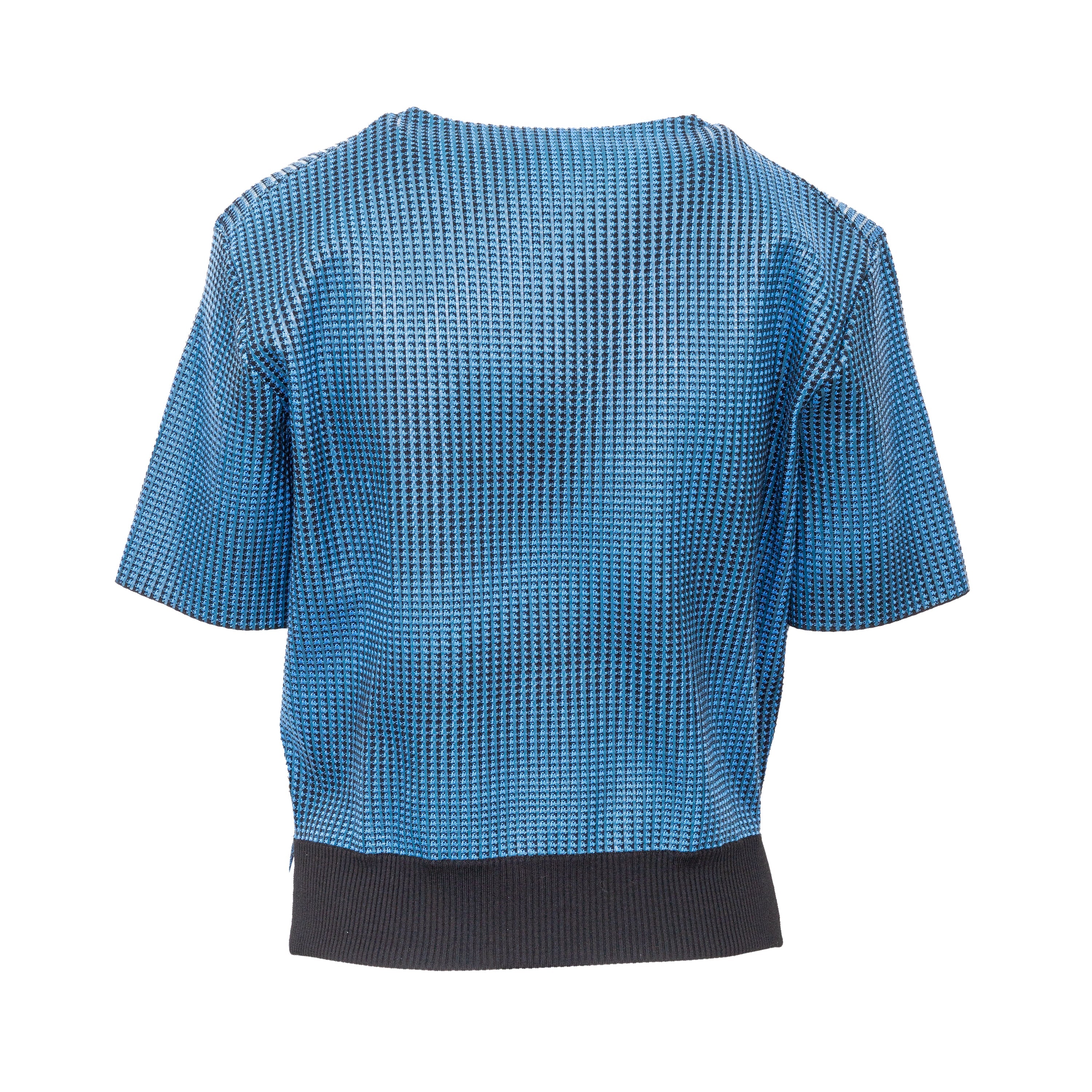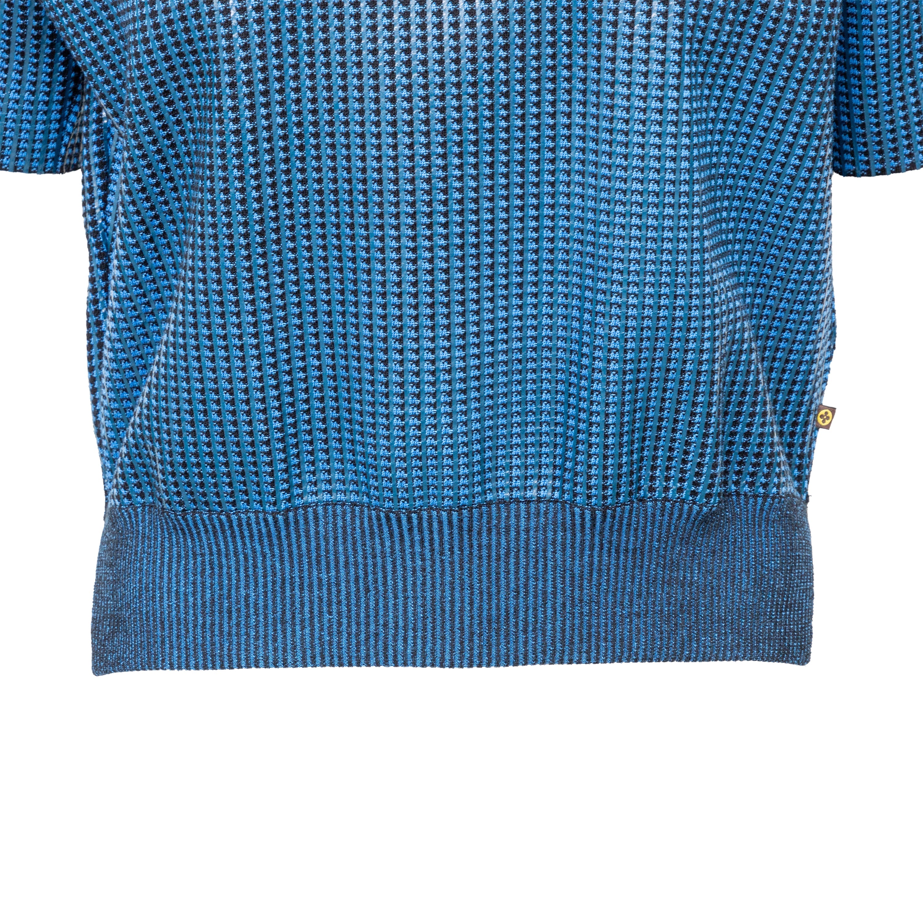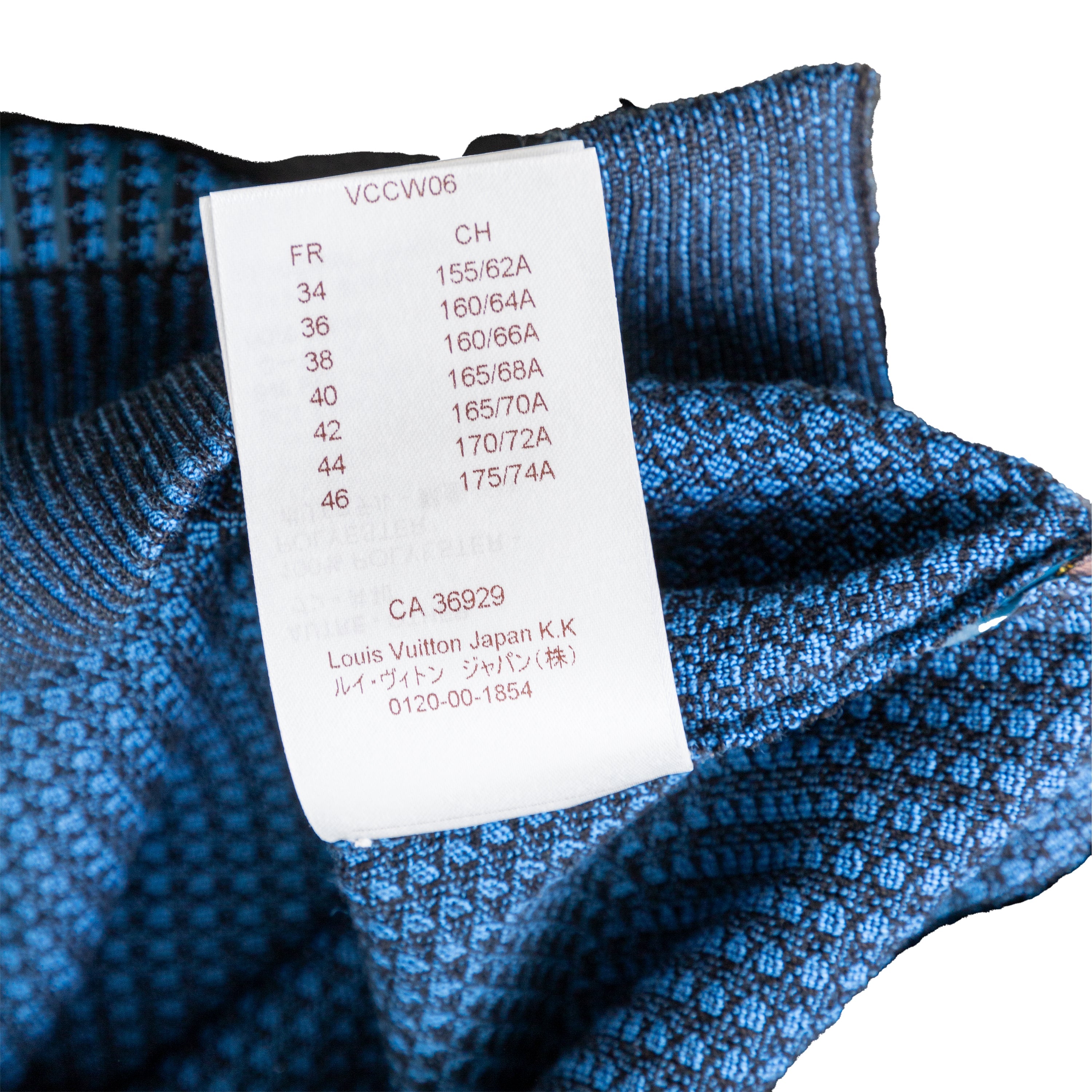 The Louis Vuitton V-neck top lends an elevated finish to street-casual vibes. This piece features a classic V-neck, ribbed hem and a distinctive blue stripe running along the knitted body. Composed of a combination of wool and elastane, this top is suitable for both formal and casual occasions.