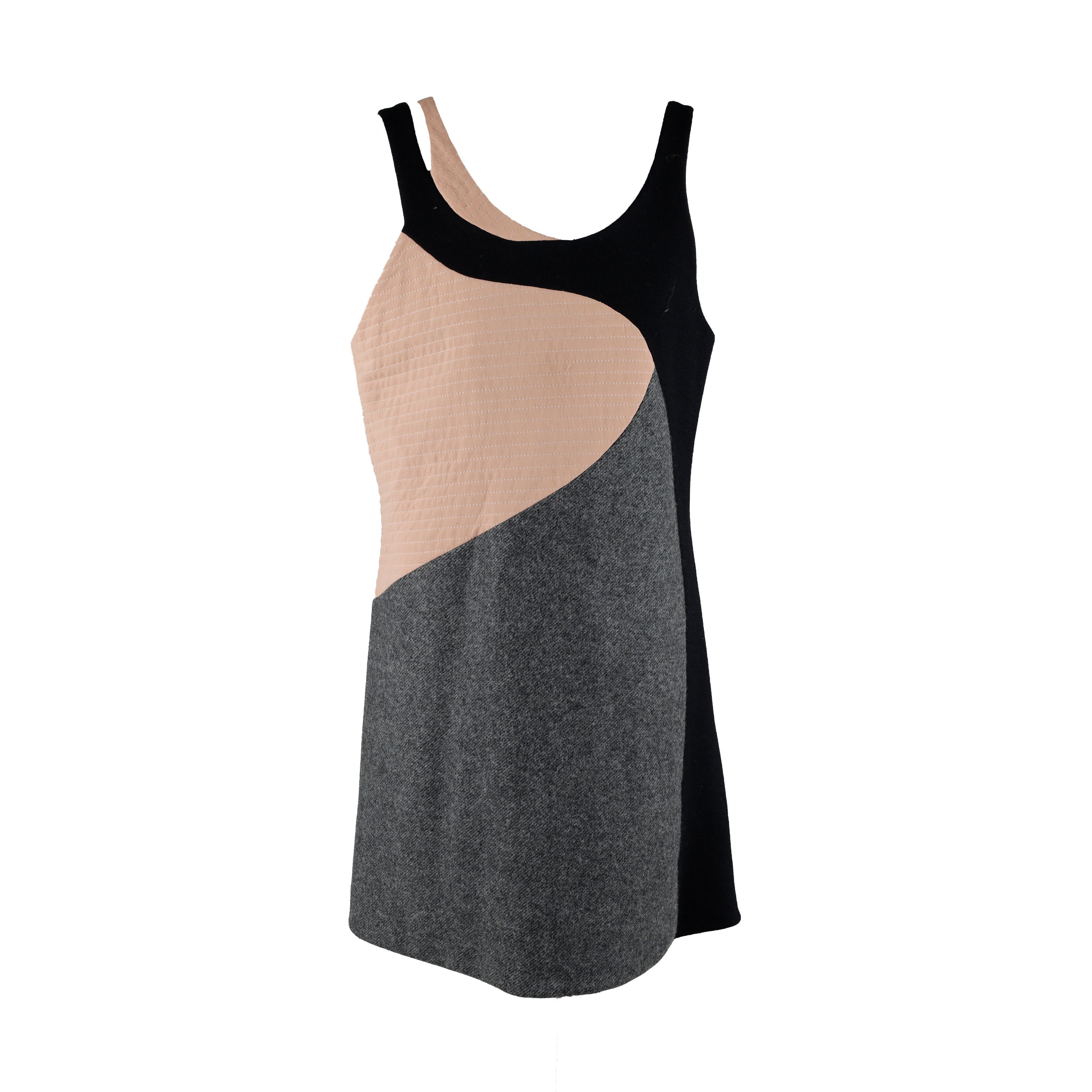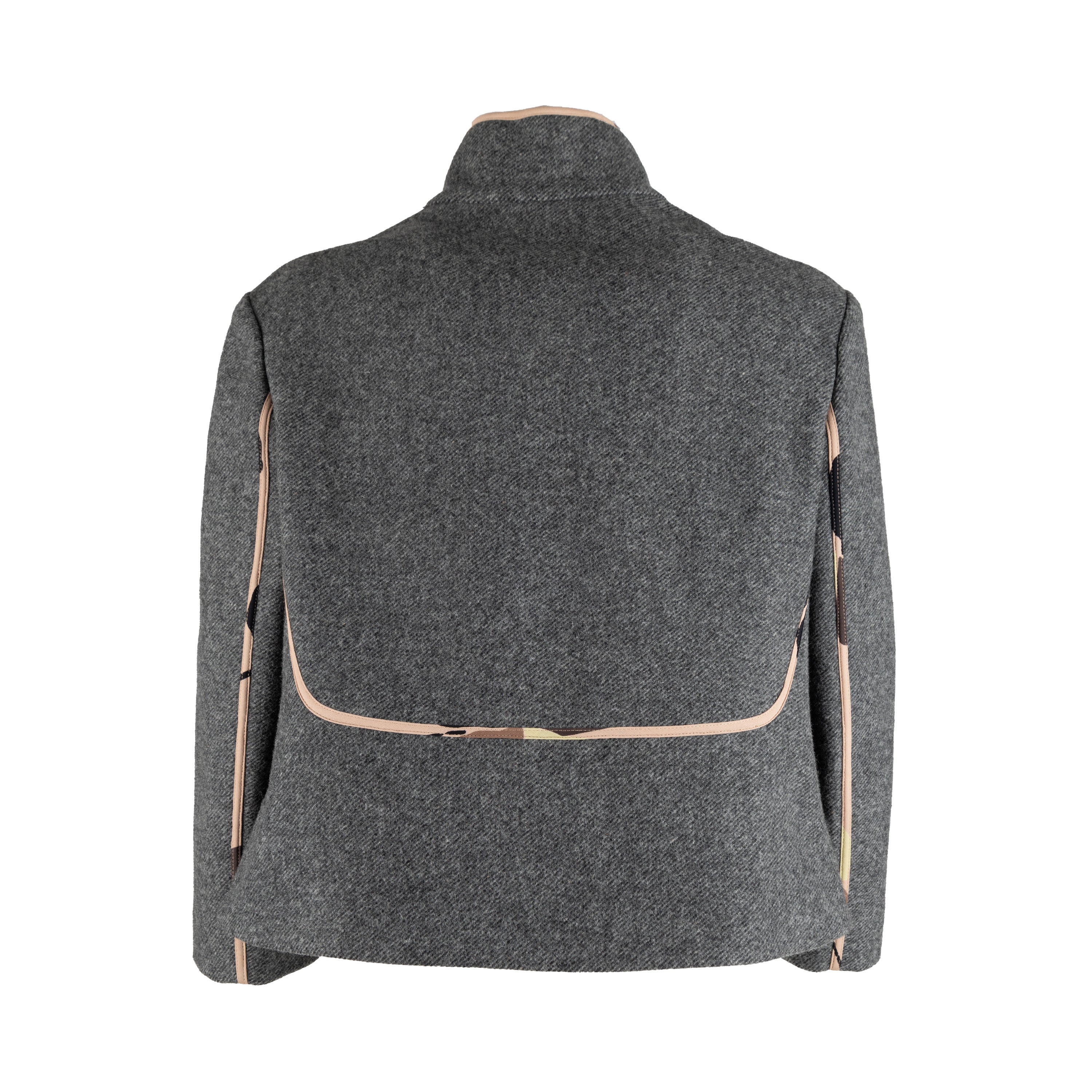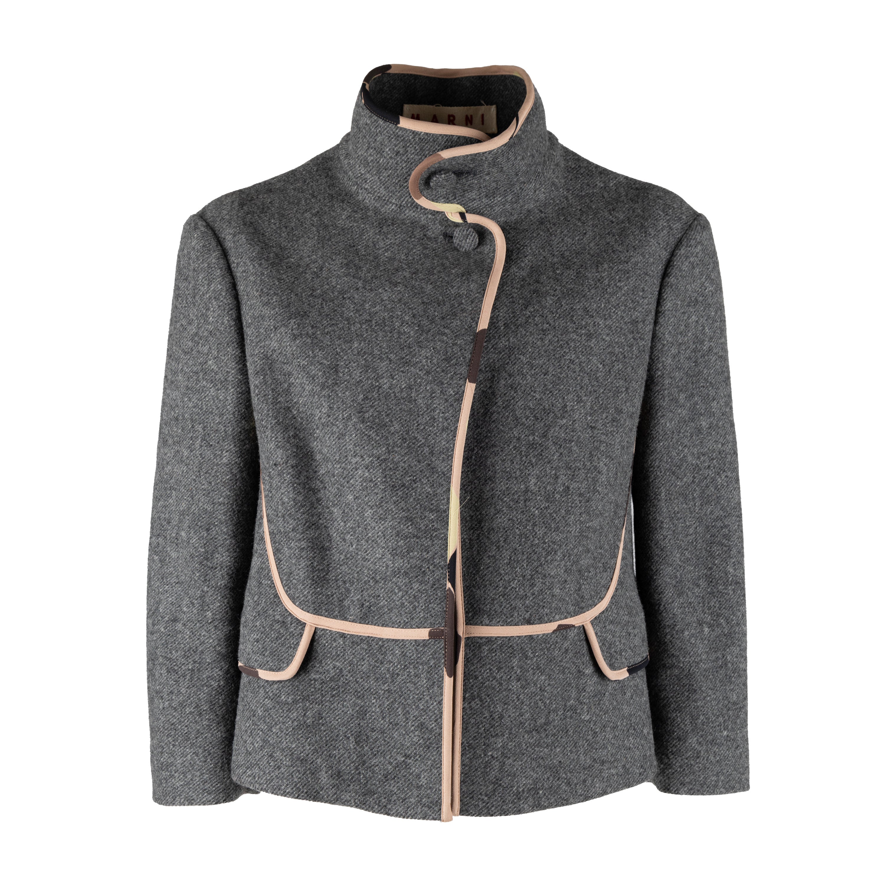 This Marni Dress and Jacket Set is crafted from a luxurious wool blend fabric. The grey fabric is complemented by striking beige and black colorblock pattern, as well as an elegant a-line silhouette. The accompanying jacket features contrasting silk trim, two front pockets and a high-necked button closure. Perfect for any special occasion.