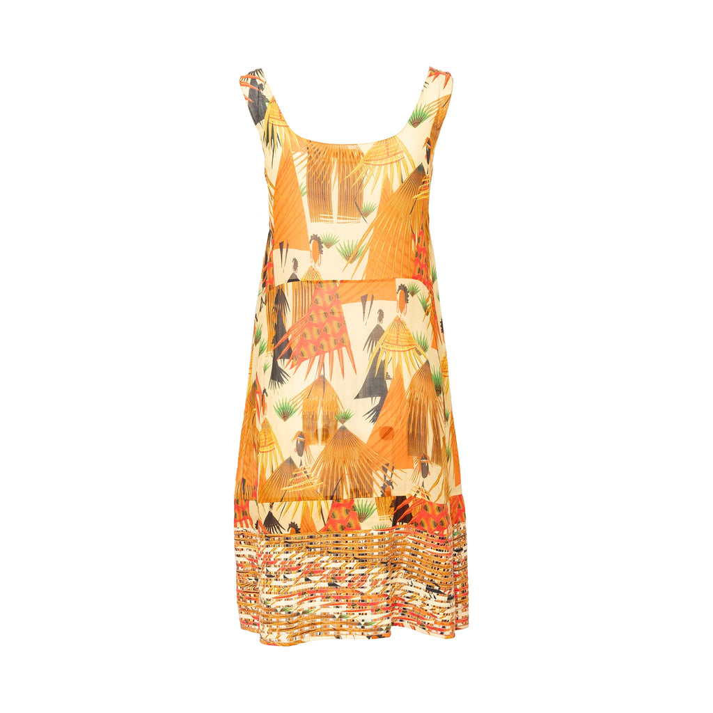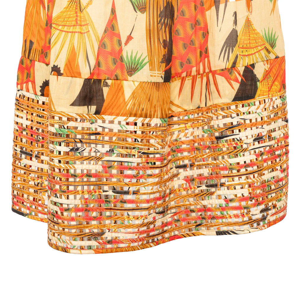 This Marni dress from the Spring 2006 collection is the perfect summer addition to any wardrobe. Made of cotton and featuring a unique multicolor pattern of palm leaves, this sleeveless midi dress has pleats over the waist and a woven hem for a one-of-a-kind look.