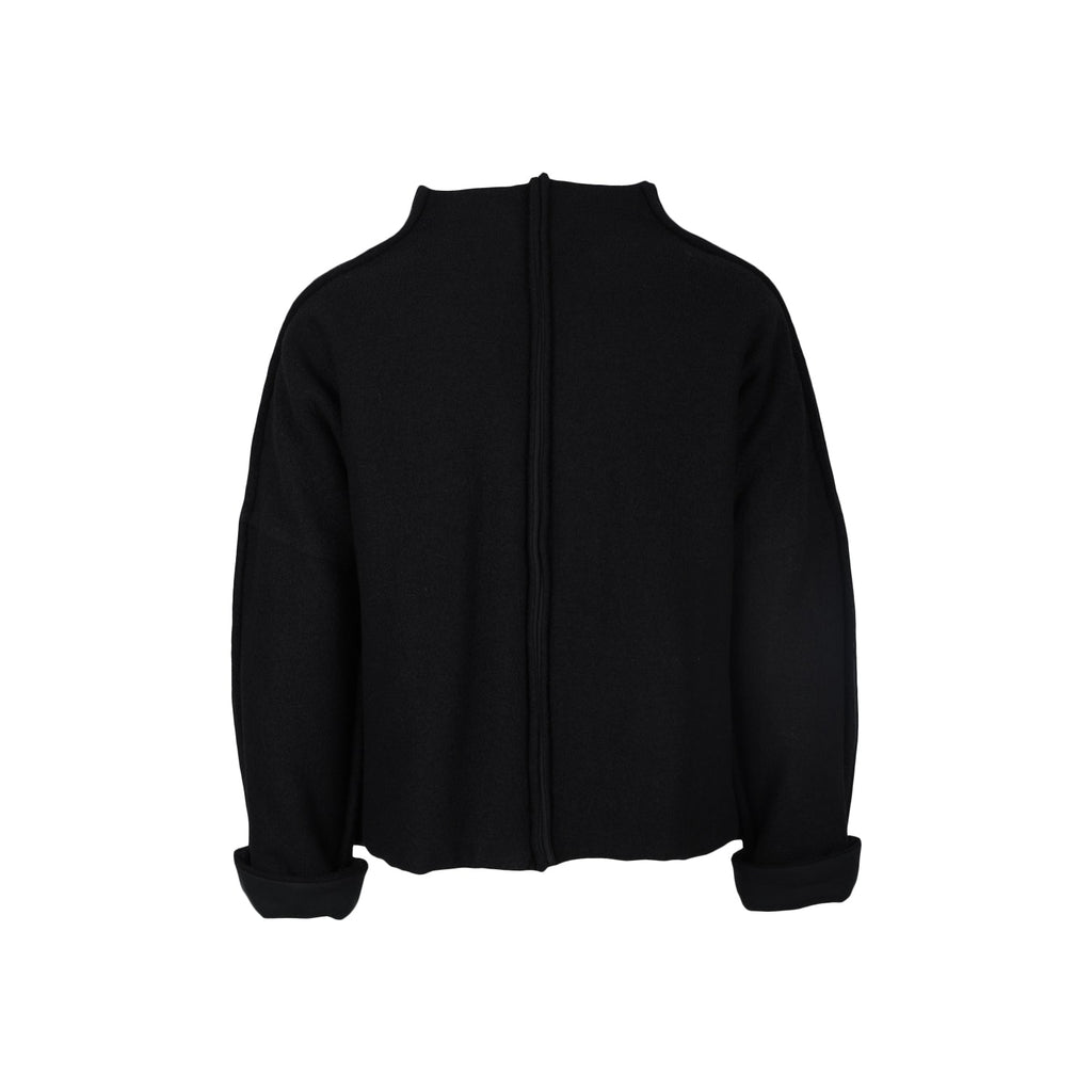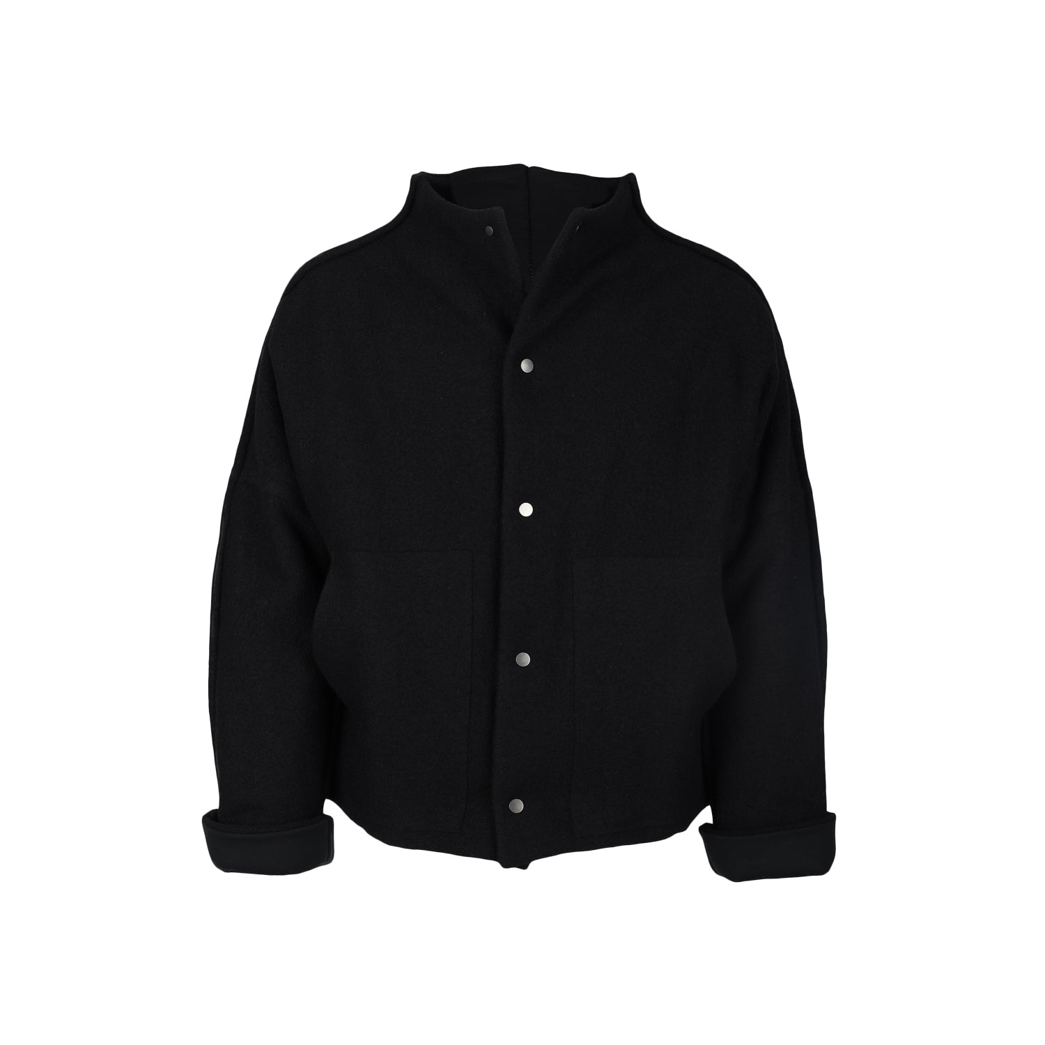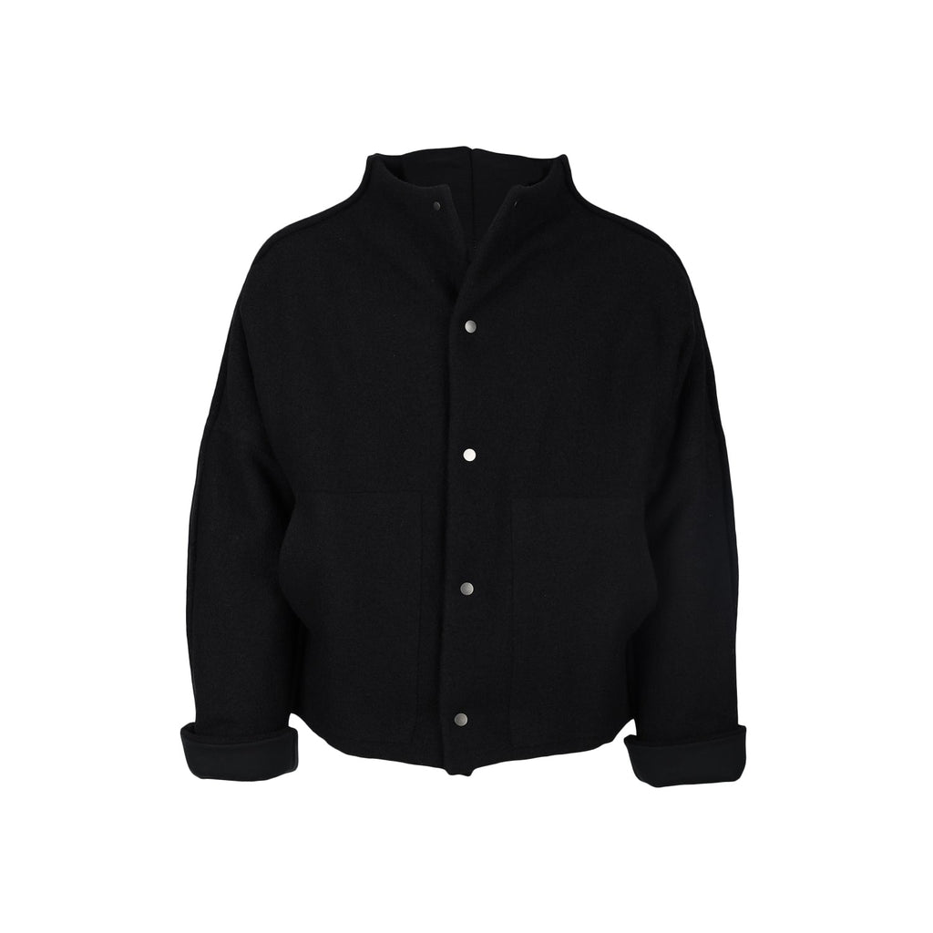 Barbara Alan black wool bomber. Over fit, long sleeve, button fastening, two big frontal pockets.