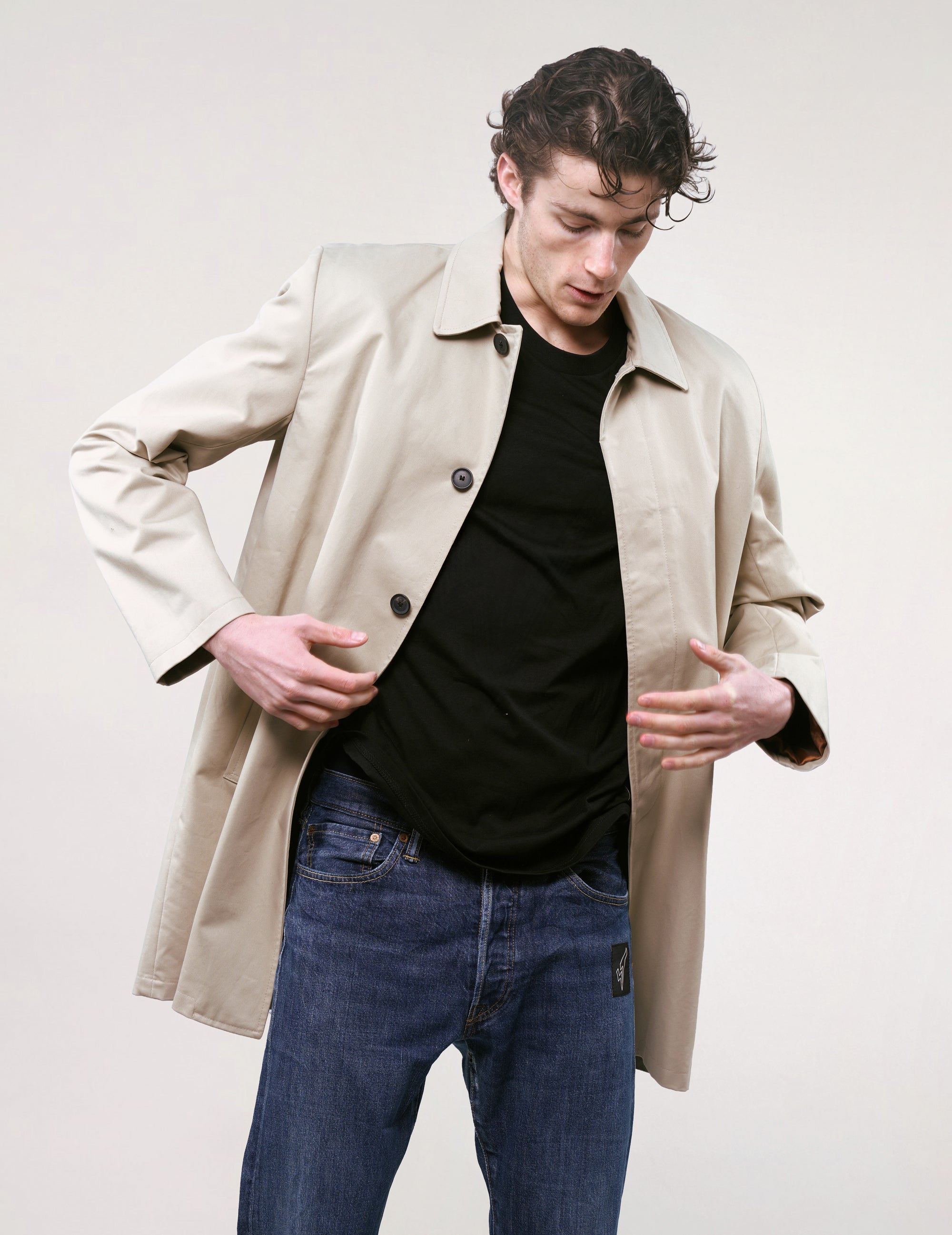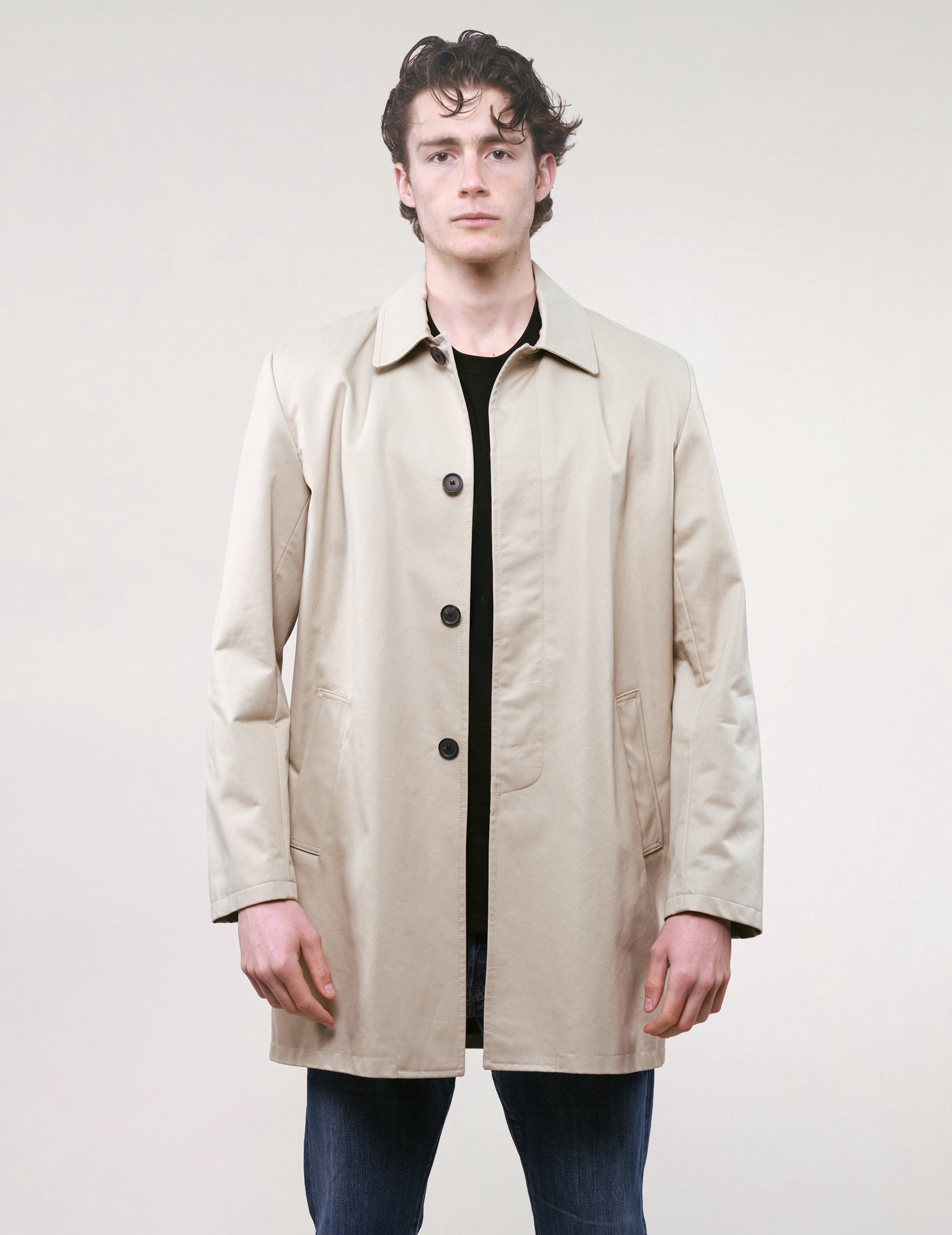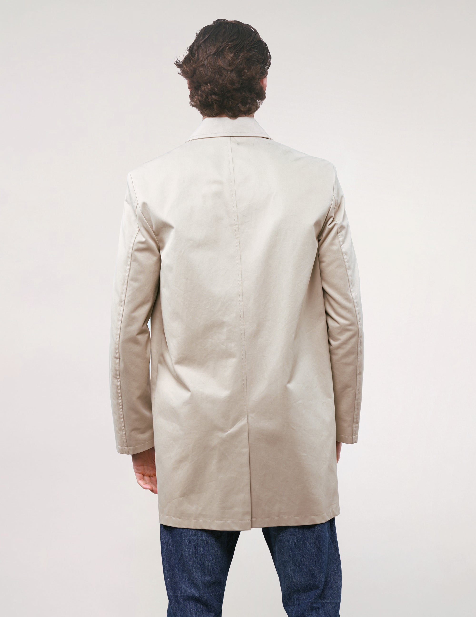 Waxed cotton/nylon Mac x STUART TREVOR. Hand crafted in our East London Tailors from the most beautiful, showerproof deadstock Italian fabric. Beautiful finish, unlined, with bound and taped seams inside.