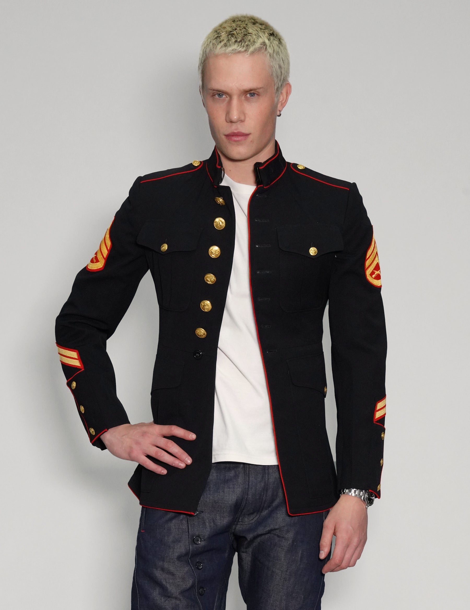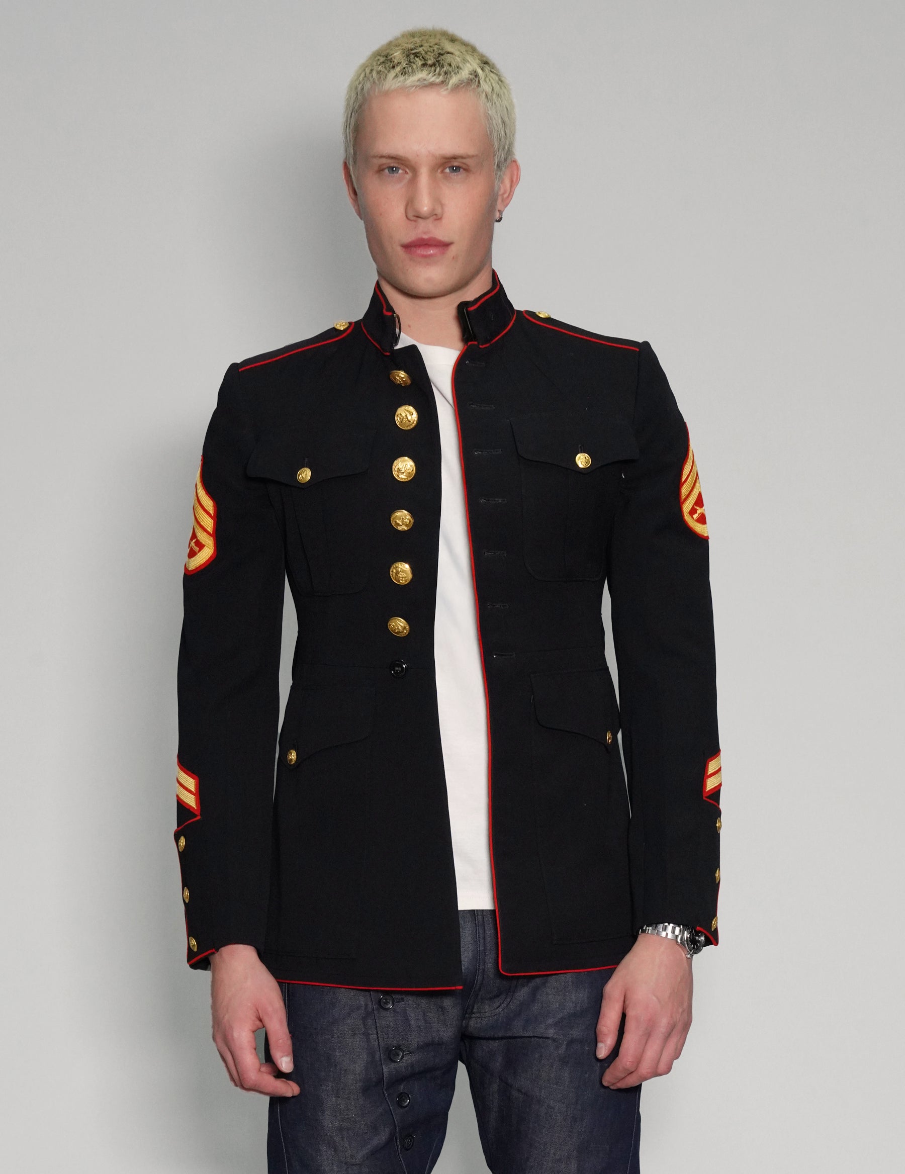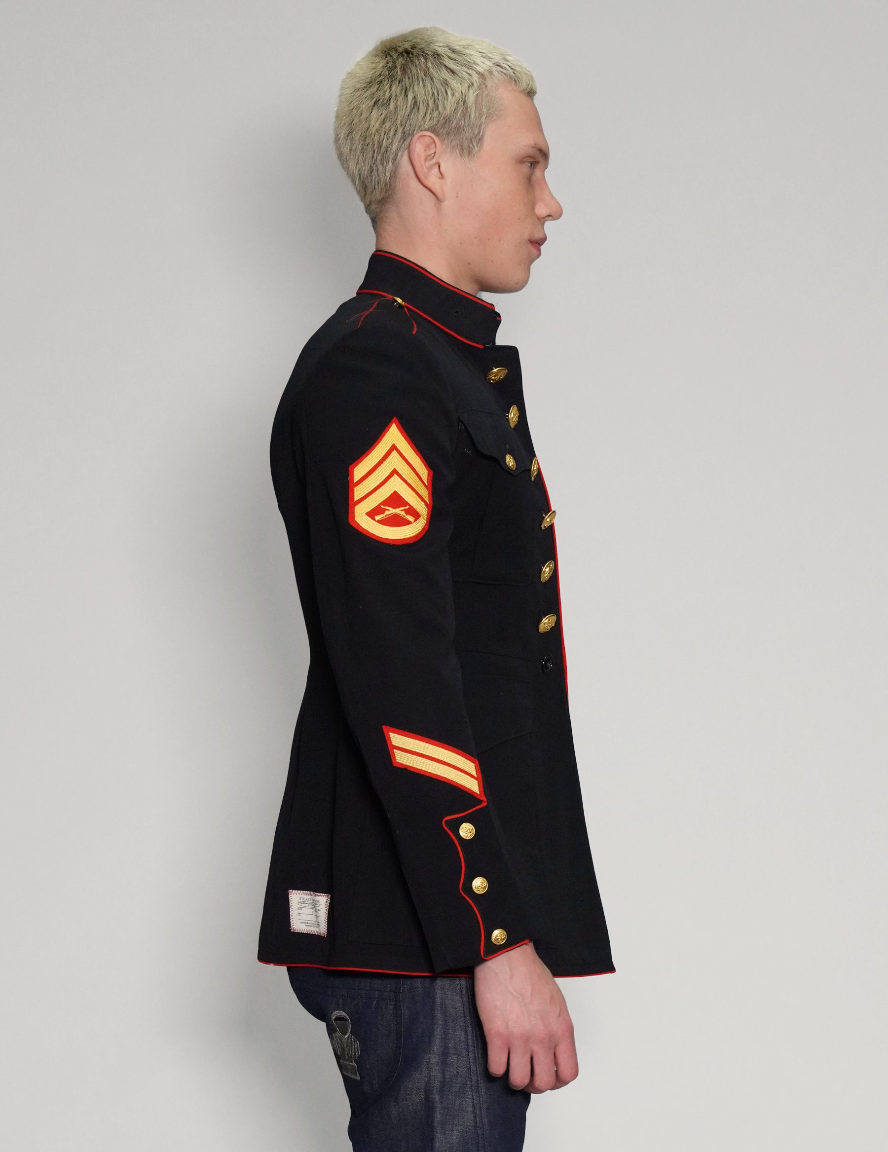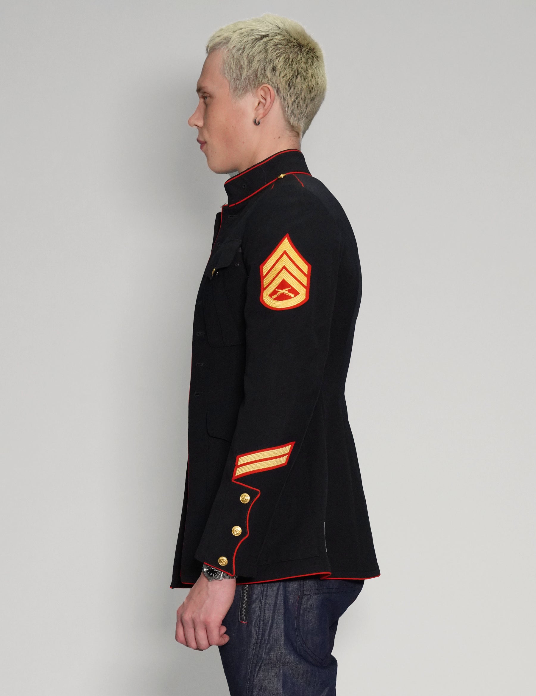 An original vintage US Marine Staff Sergeant dress tunic, 100% Wool. For a Staff Sergeant. Gold metal button fastening front and loop on collar. Ideal for the man who dresses to impress.