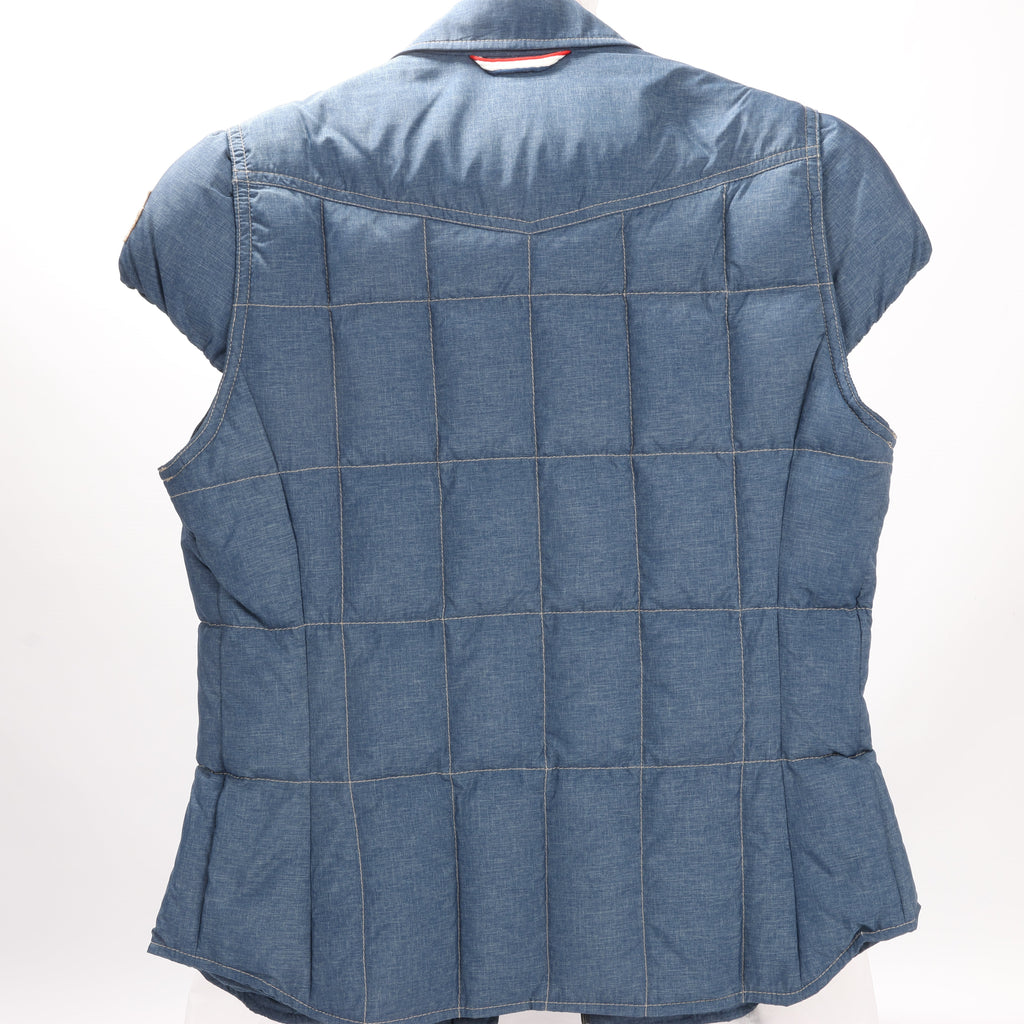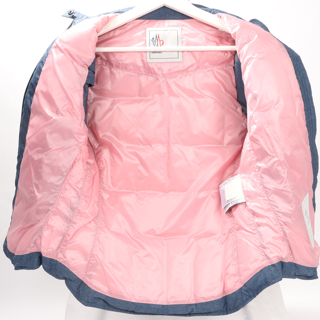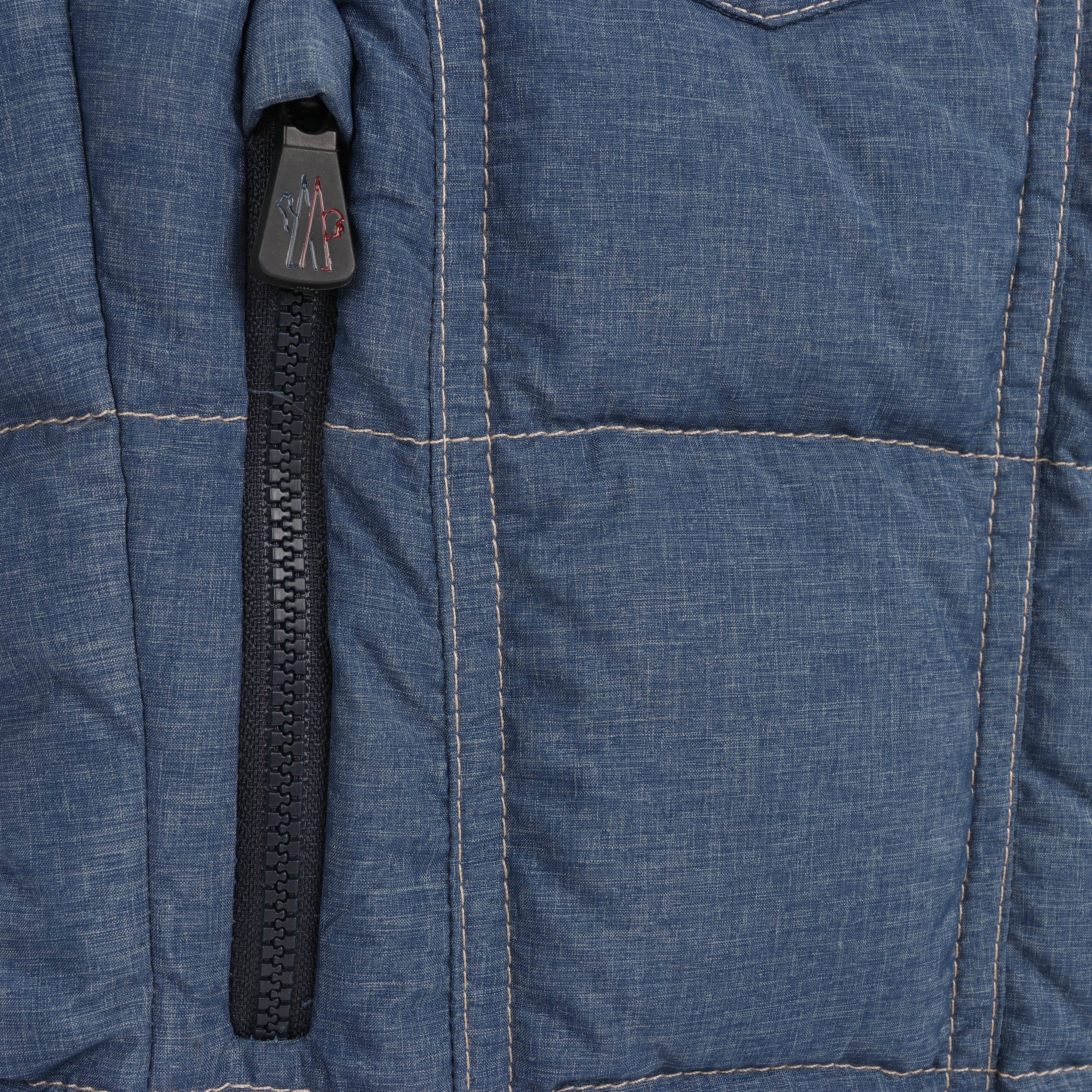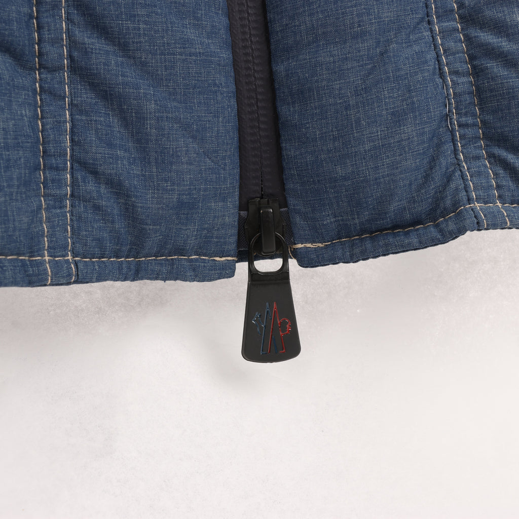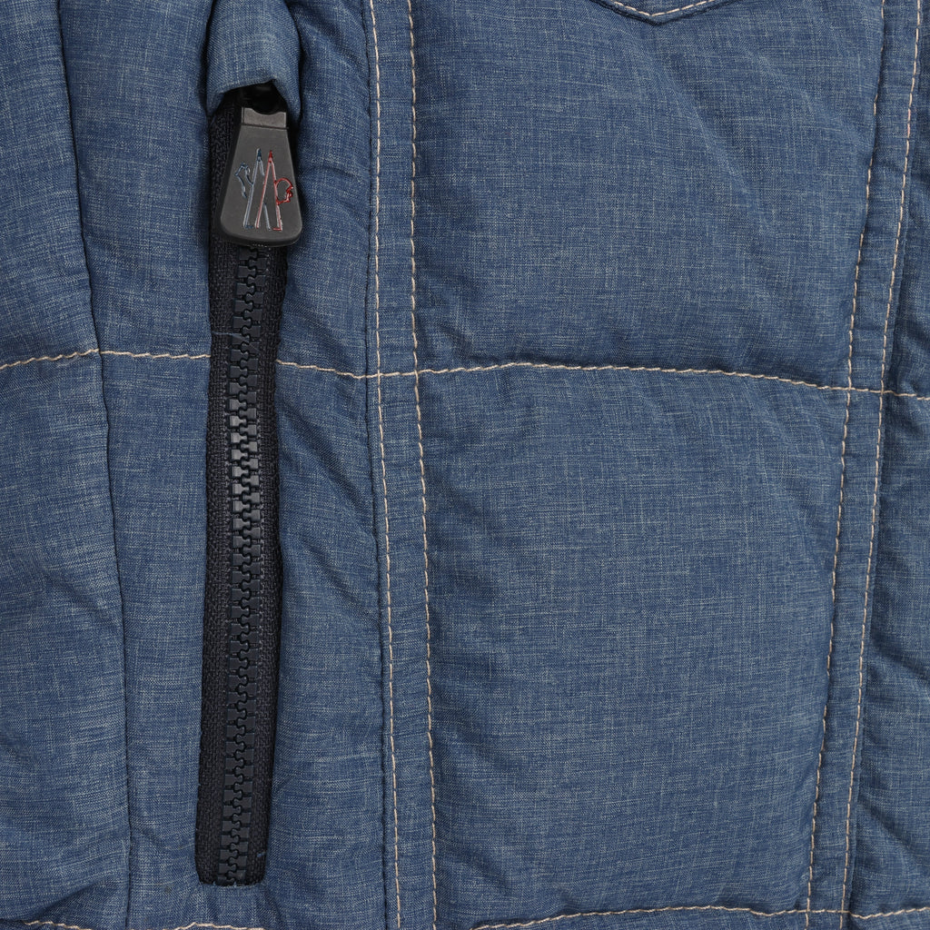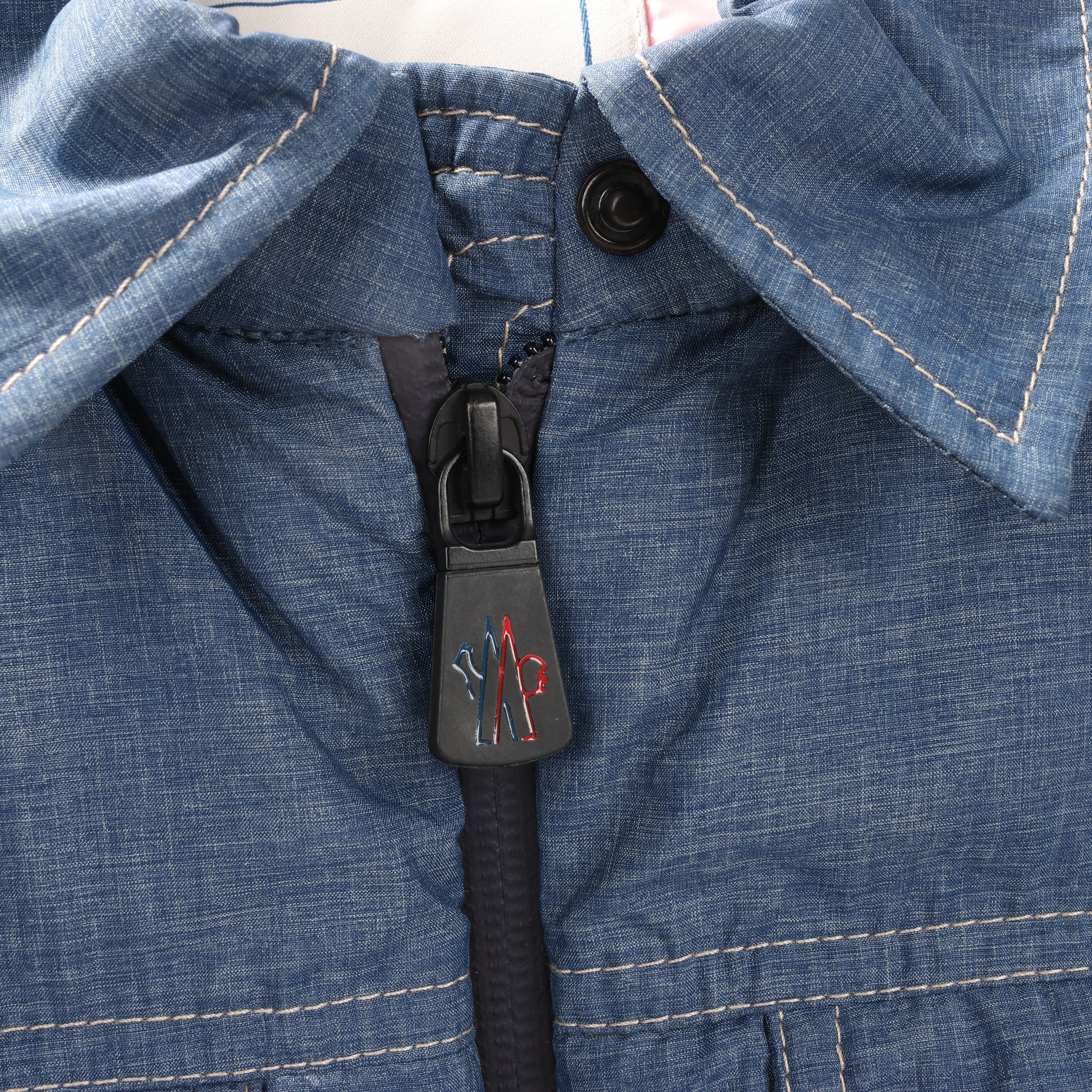 This Moncler Grenoble sleeveless jacket combines functionality with style. Featuring a blue denim exterior and a soft pink inner lining this piece offers a chic yet casual look. It includes two chest pockets front zip closure and a comfortable fit. Ideal for layering during transitional seasons.