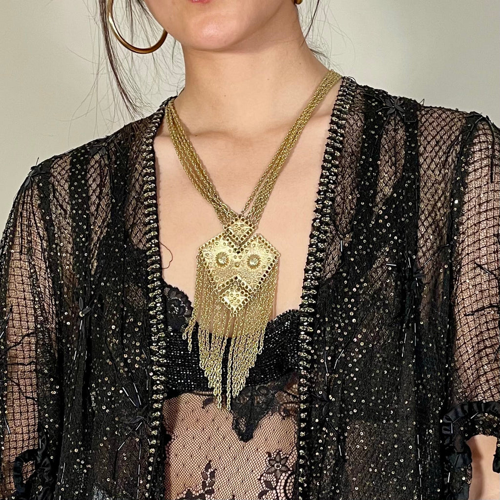 BLACK GLASS DROP FRINGE NECKLACE CIRCA 1950S