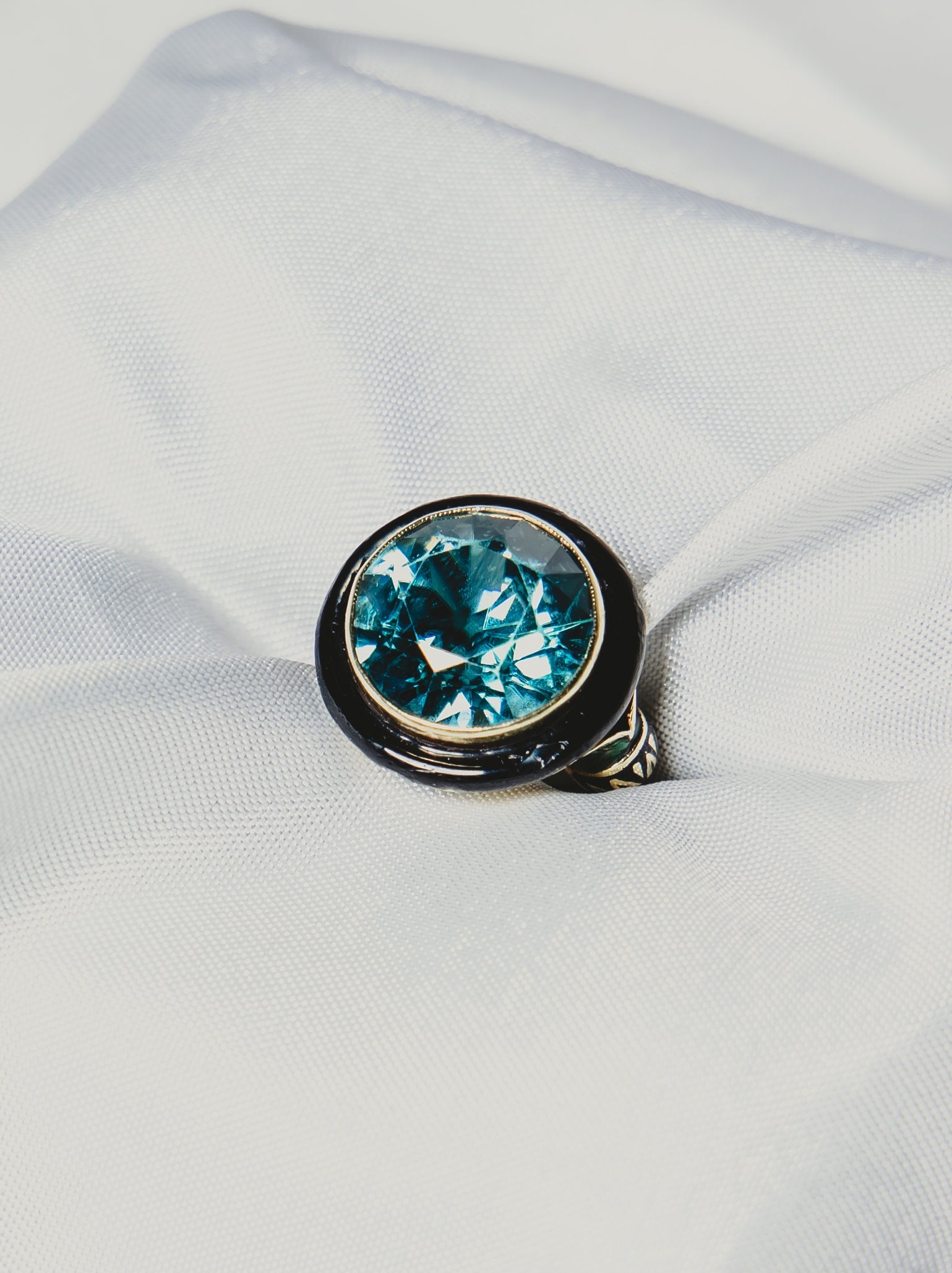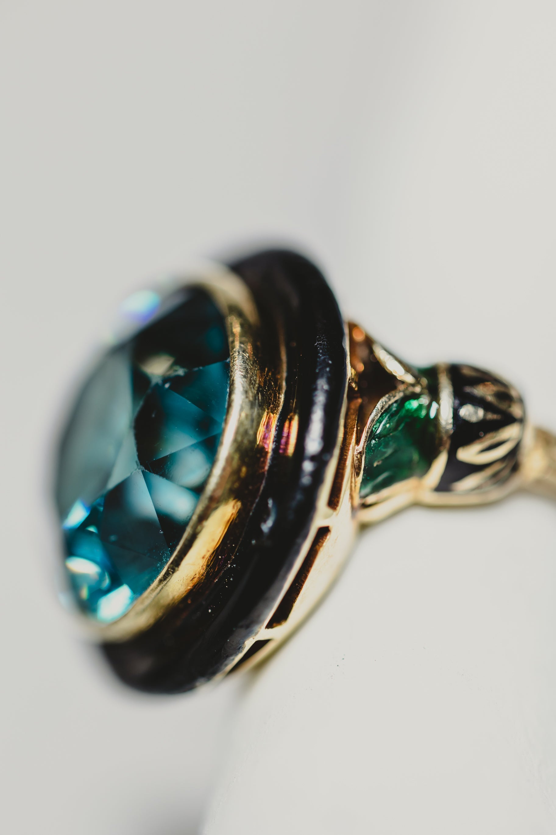 Refine your look with this exclusive bauble. Our Blue Zircon Ring is crafted in a stunning, vintage 14K gold setting, and shines with its vibrant blue hue. For a touch of classic elegance, this timeless piece is perfect for your collection.