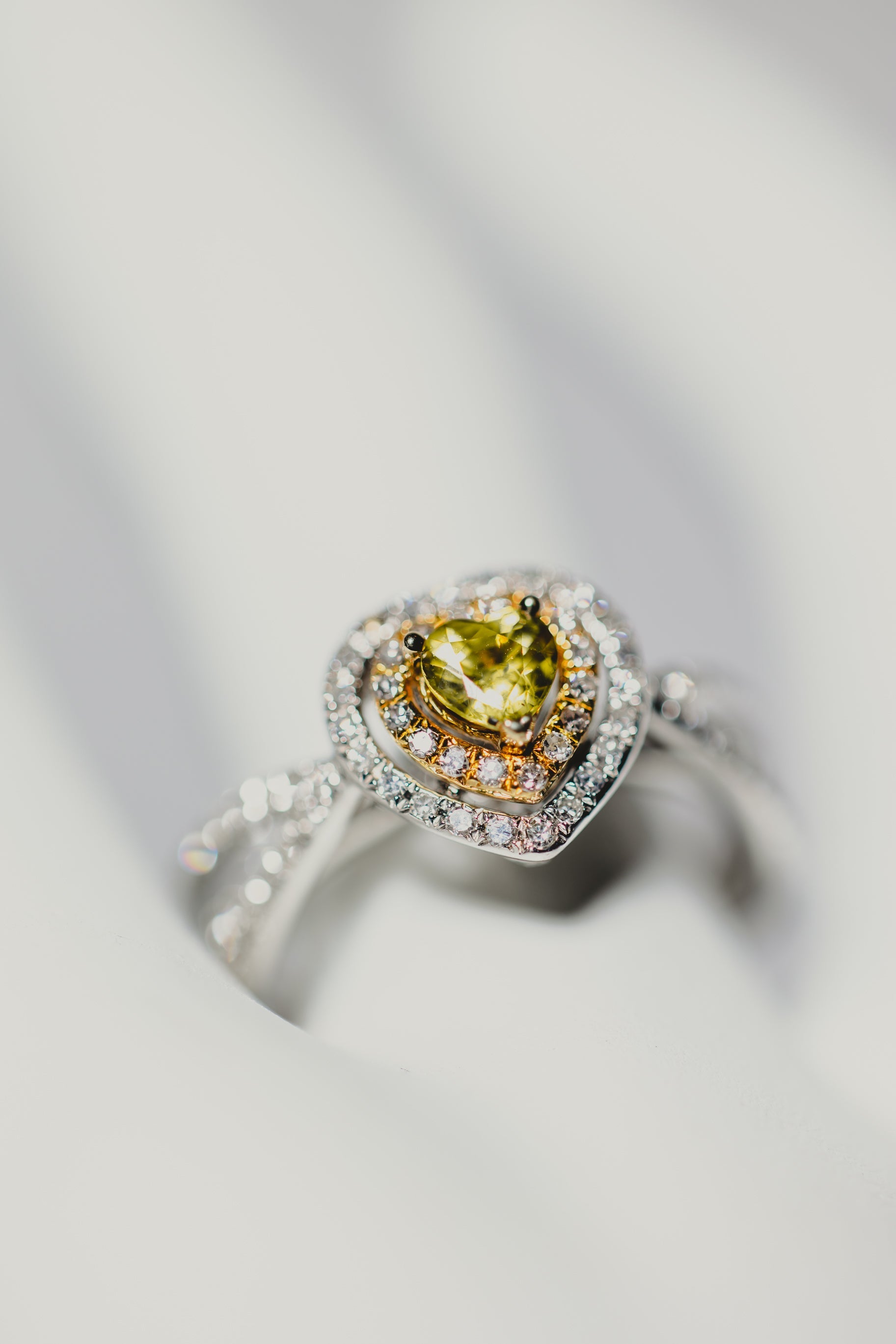 Yellow Sapphire & Diamond Heart Ring in 14K White Gold.