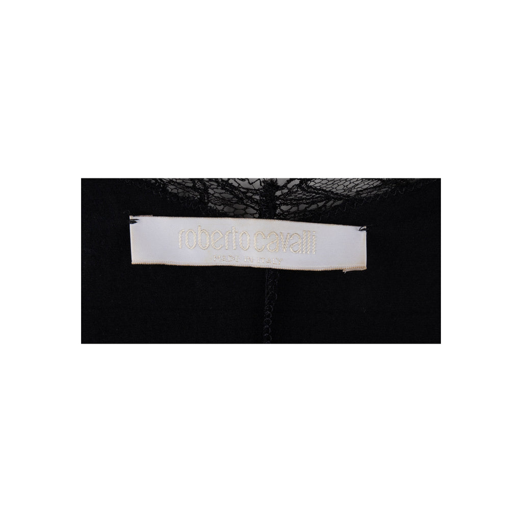 Discover the perfect evening dress. This Roberto Cavalli slip dress is crafted from a sheer black fabric with dainty lace details at the neckline and hem. A fitted silhouette and pleats at the back hem create a flattering and flowy effect.