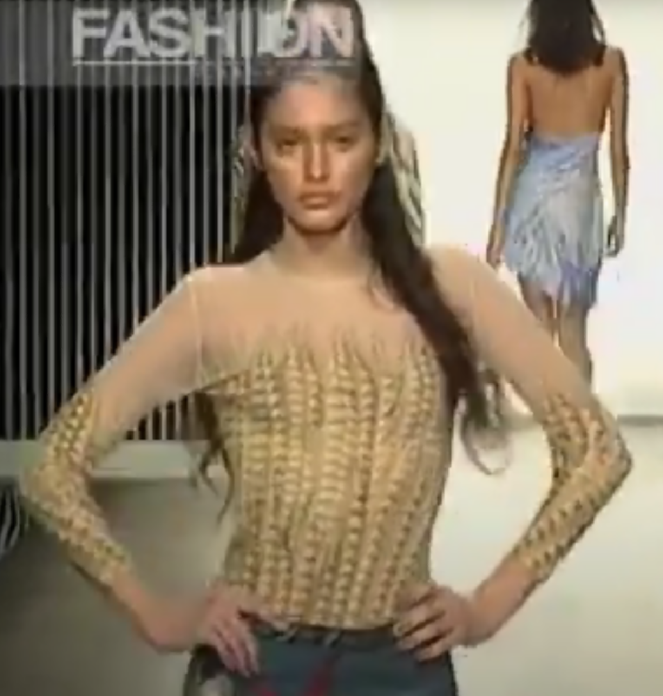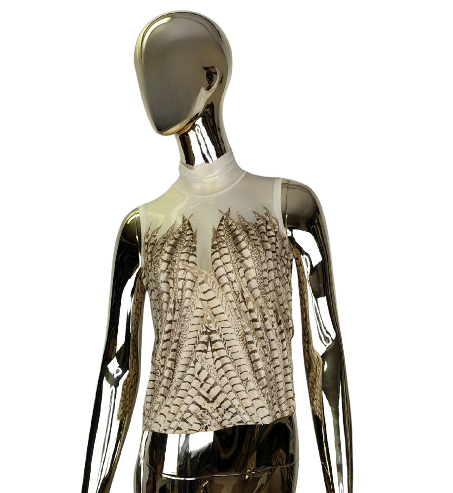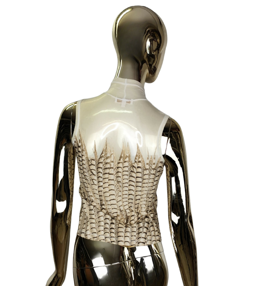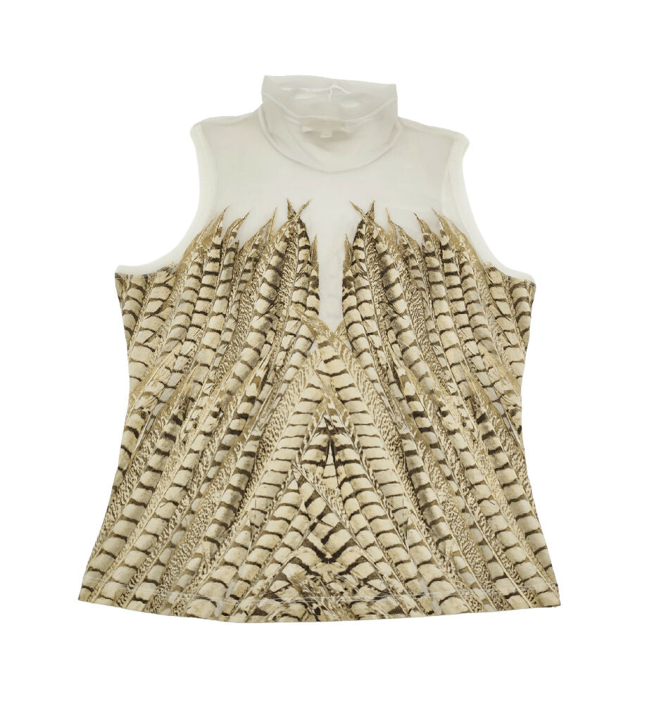 ROBERTO CAVALLI S/S 1999 FEATHERS PRINT MESH SLEEVELESS TOP