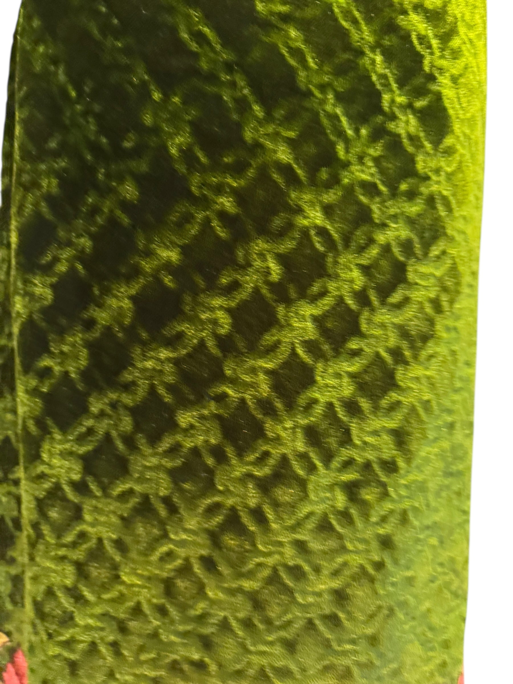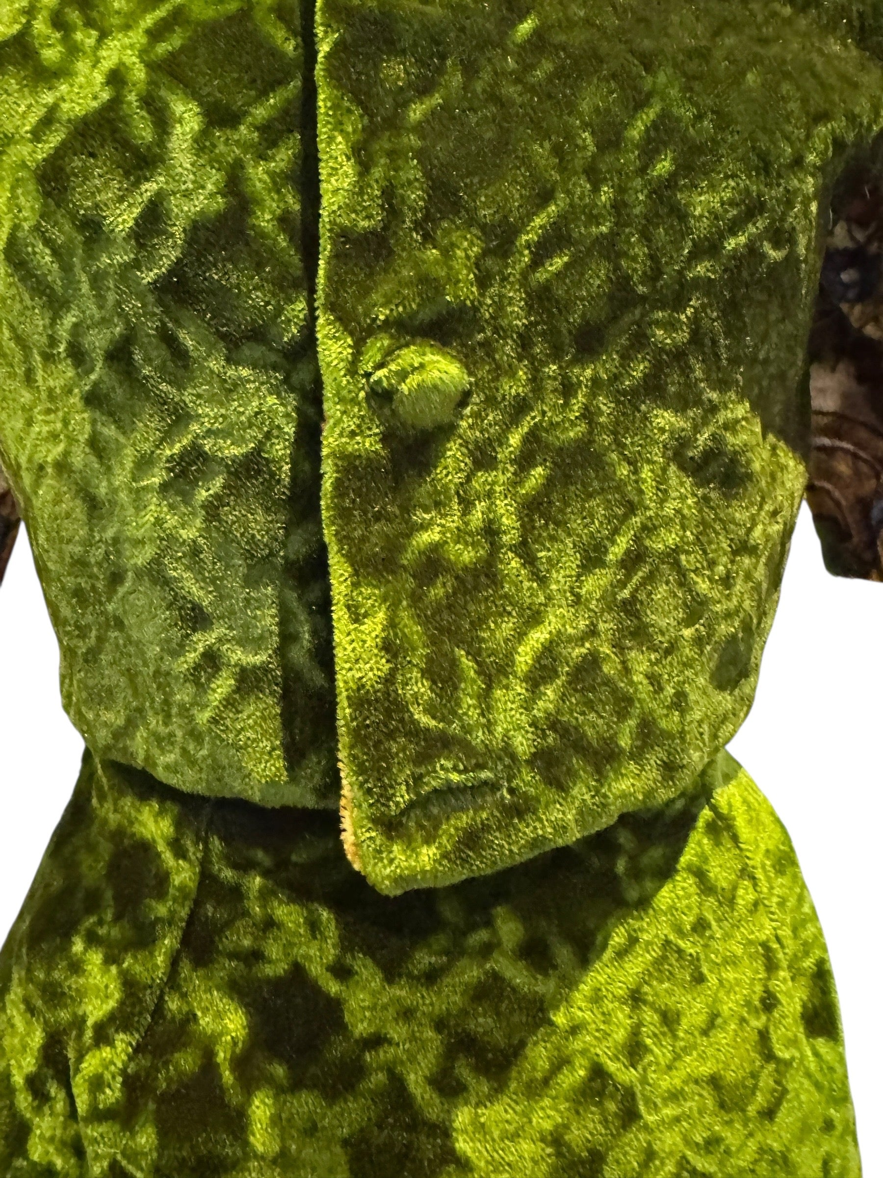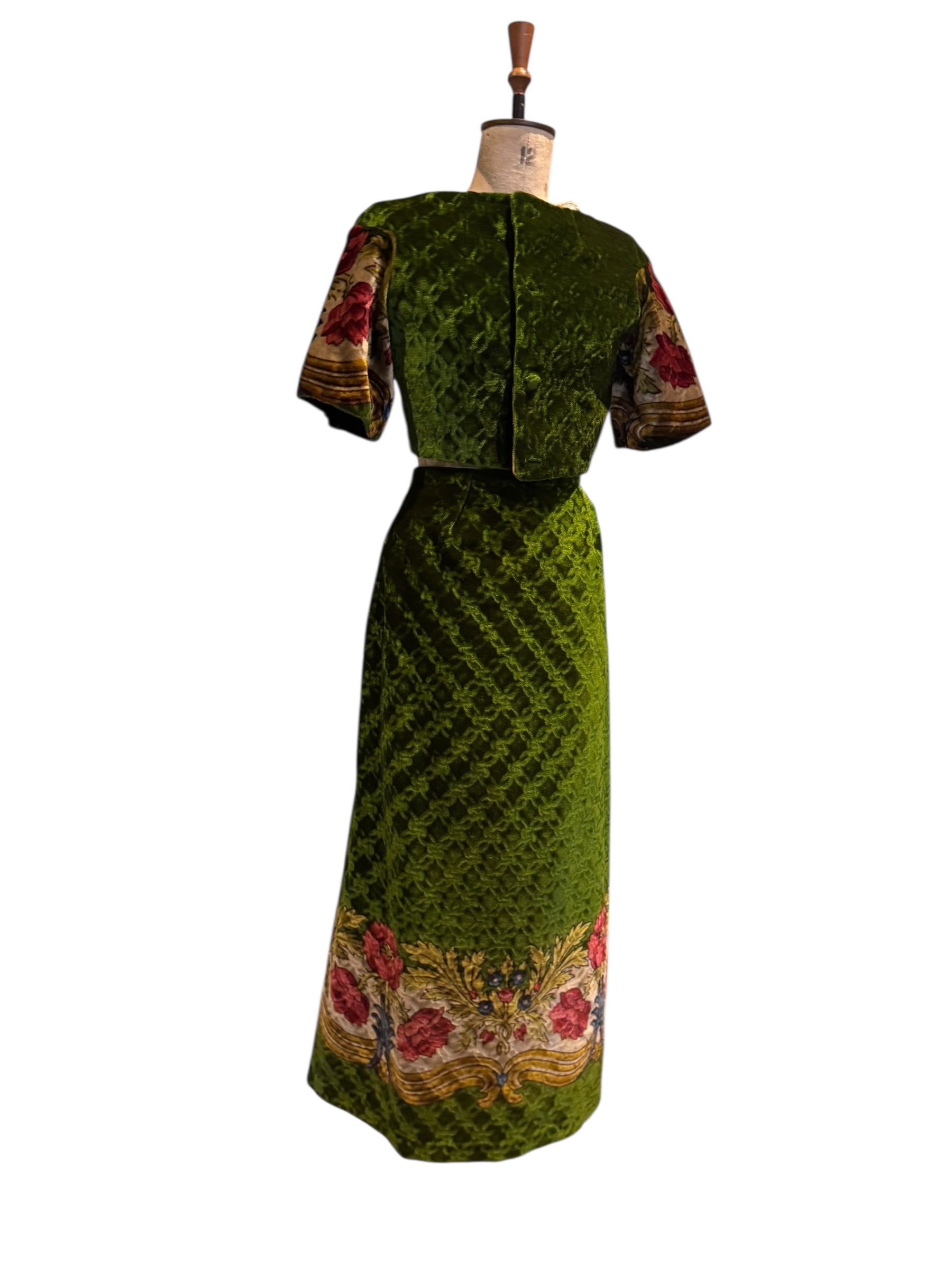 Olivia, reworked Edwardian olive green floral velour skirt and jacket
