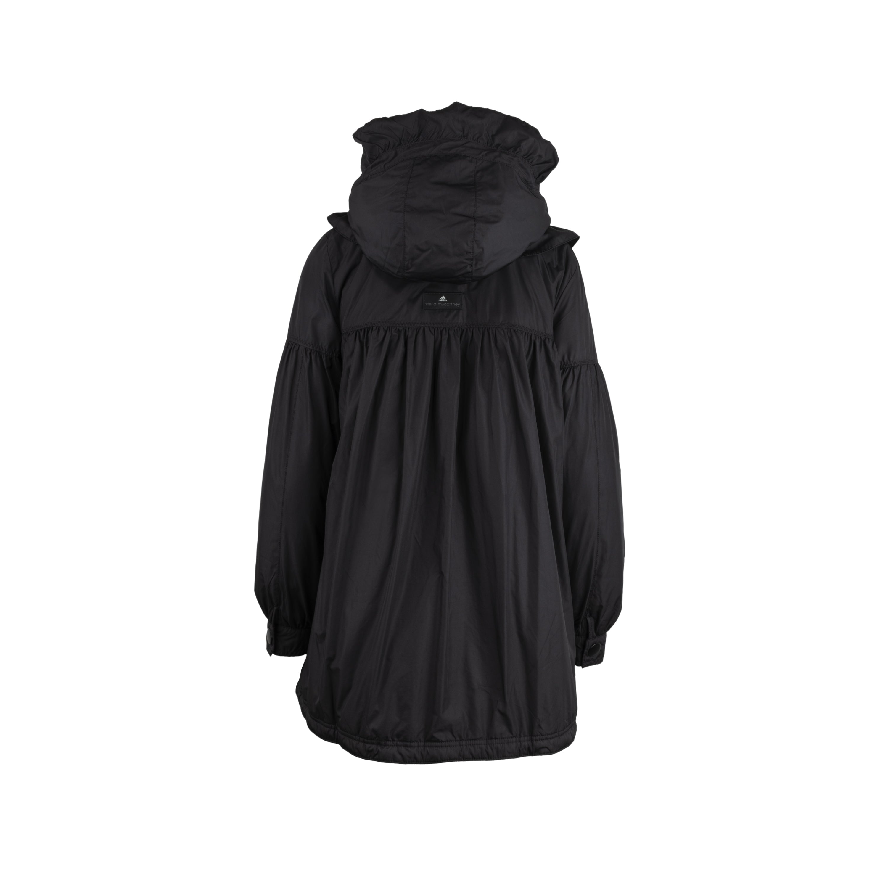 Crafted with a classic black finish, this Stella McCartney hooded raincoat features an oversized hood, long sleeves, a central button placket and a maxi collar for enhanced coverage, making this the perfect outerwear for any day.
