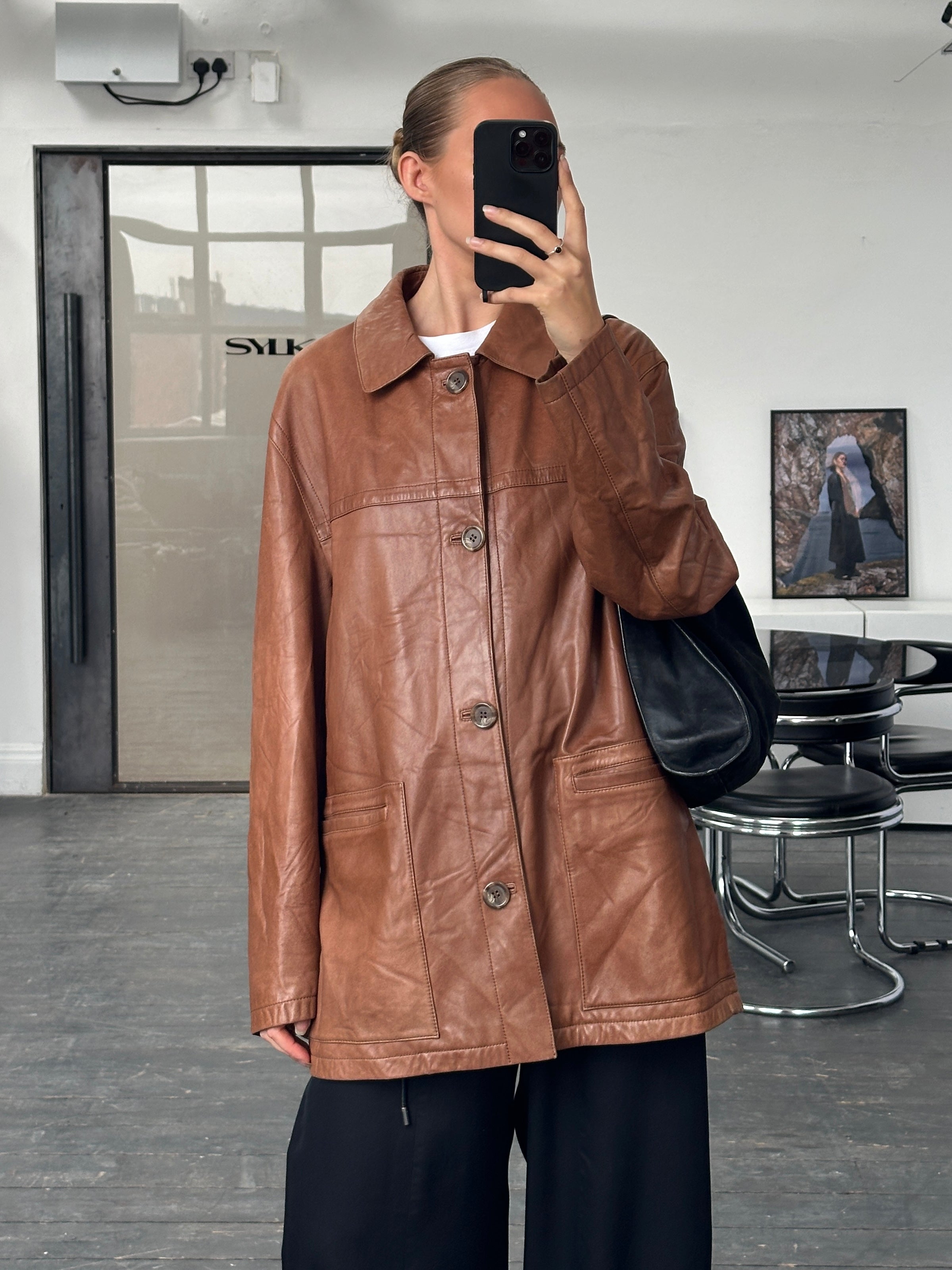 Burberry London 2000s Aged Smooth Leather Jacket - XL