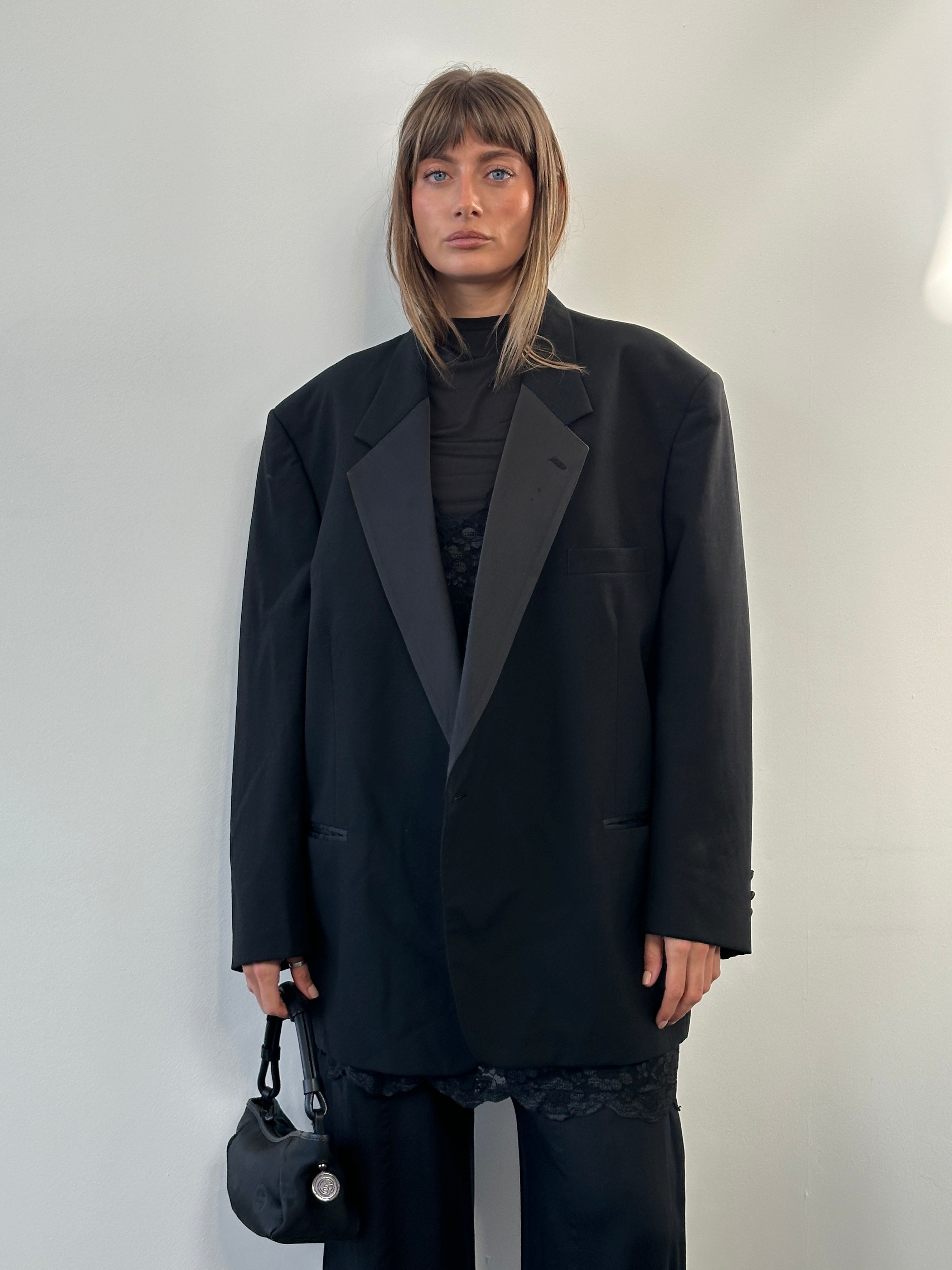 ~ Satin shawl lapel with single button fastening