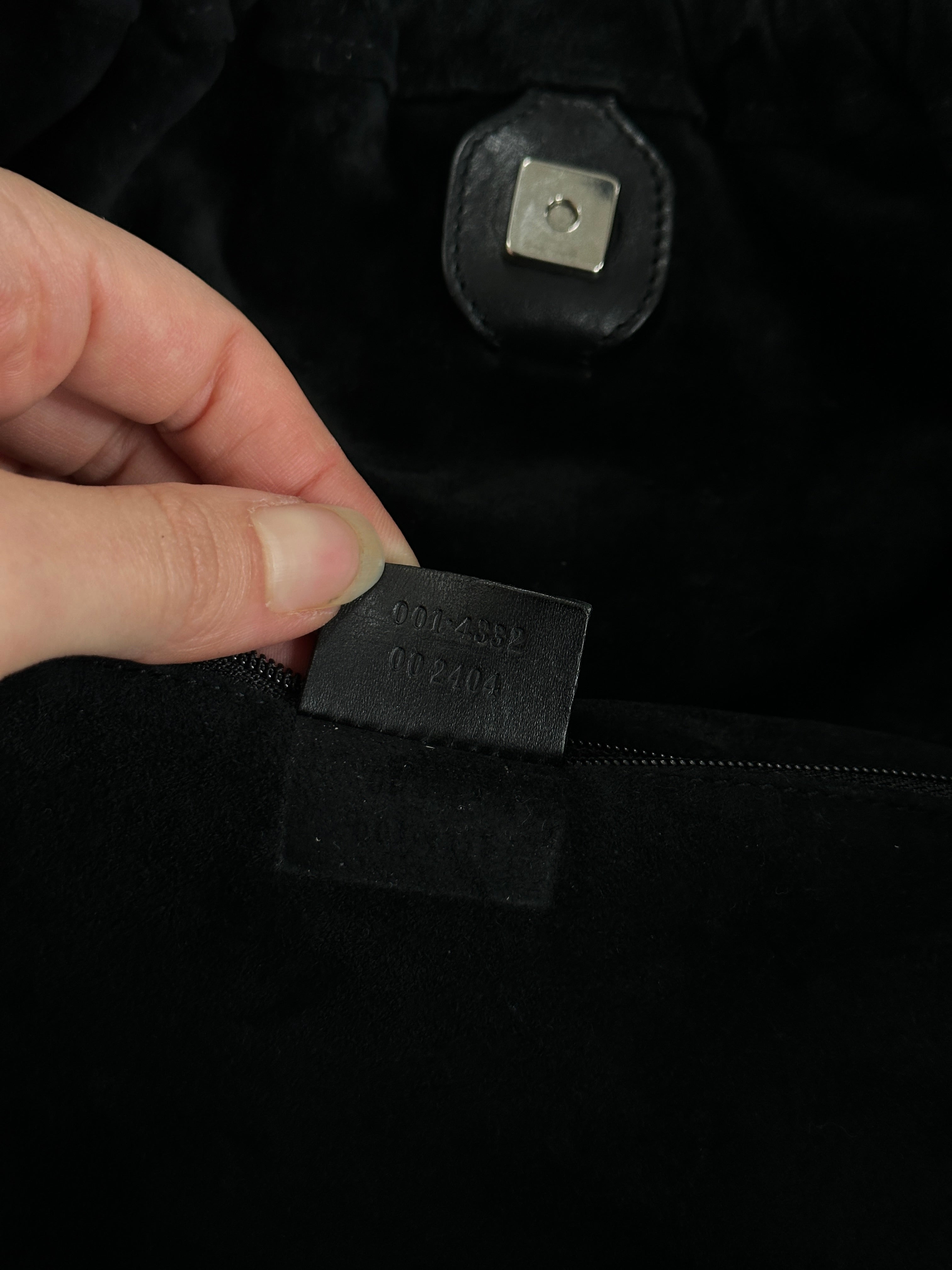 ~ Interior suede lining with zip pocket and embossed serial 001.4332 / 002104