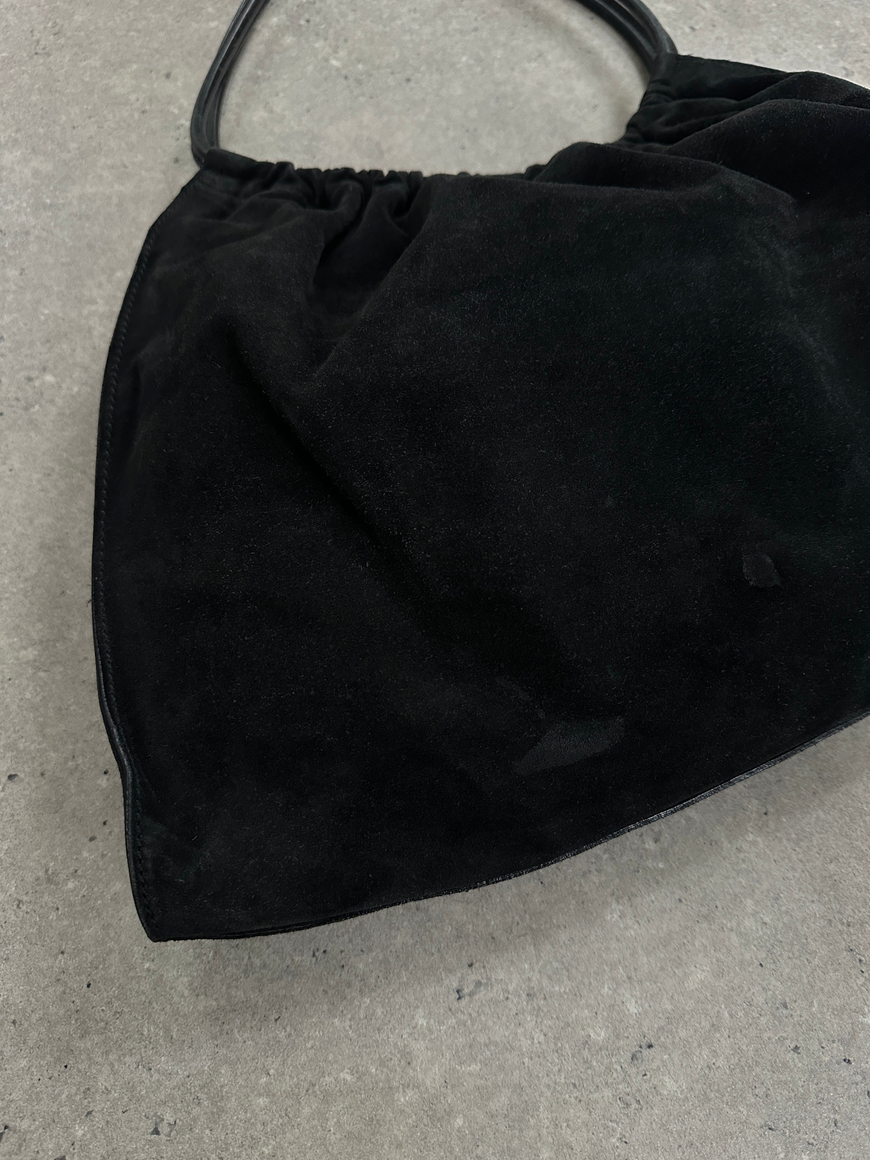 ~ Medium sized hobo tote in soft black suede with leather side panels