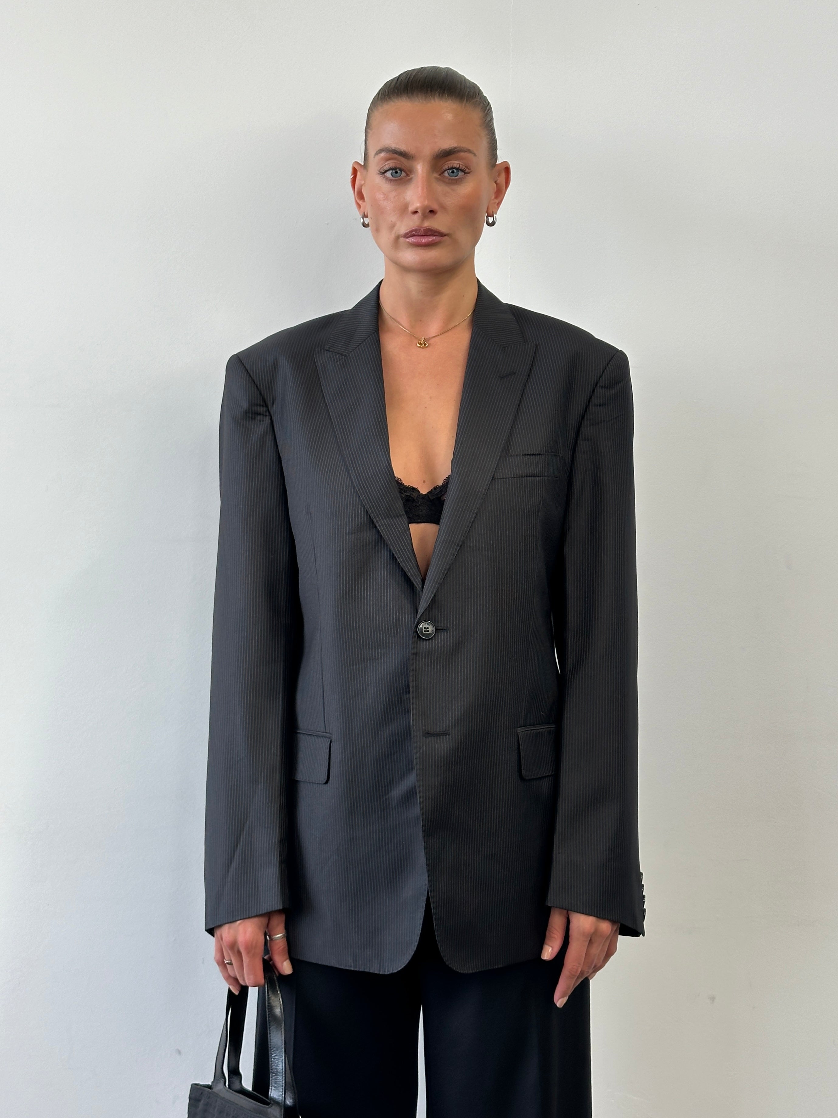 Versace Collection Stripe Wool Single Breasted Blazer - 40R/L