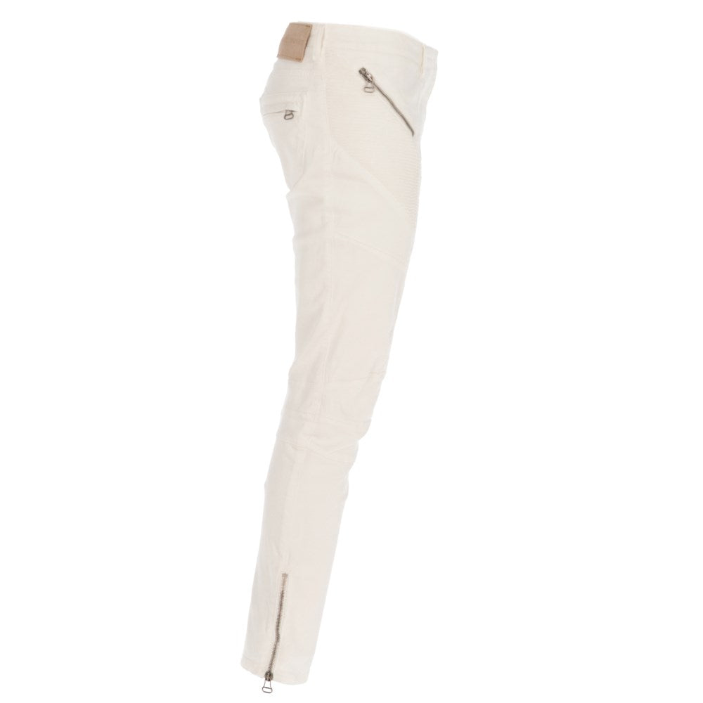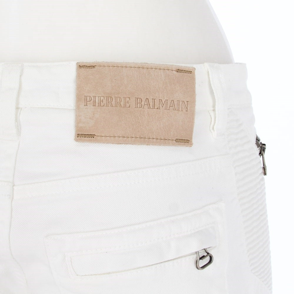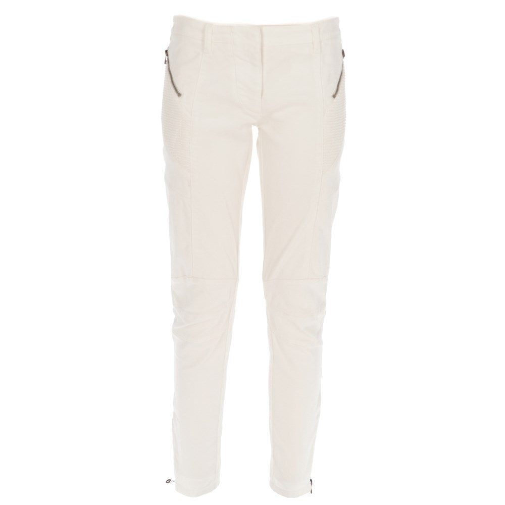 Balmain 2000s white cotton denim trousers. Side ribbed, pockets and hem with zip. Closure with hook and hidden button.