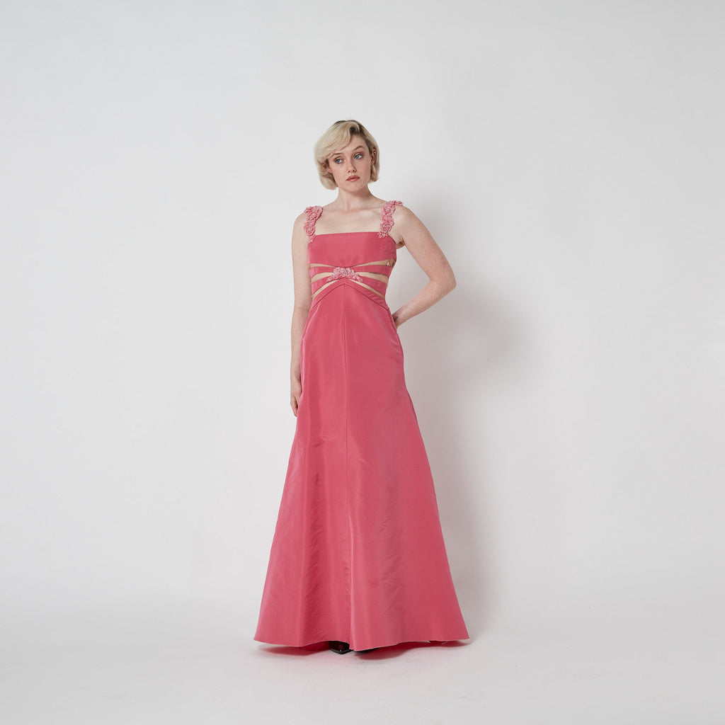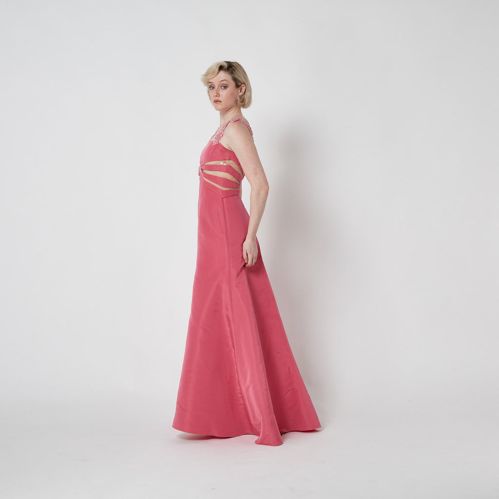 2000s Valentino Pink Beaded Gown with Sheer Panels
