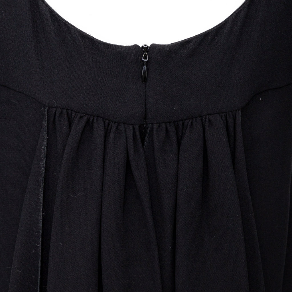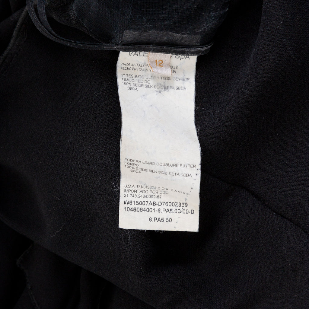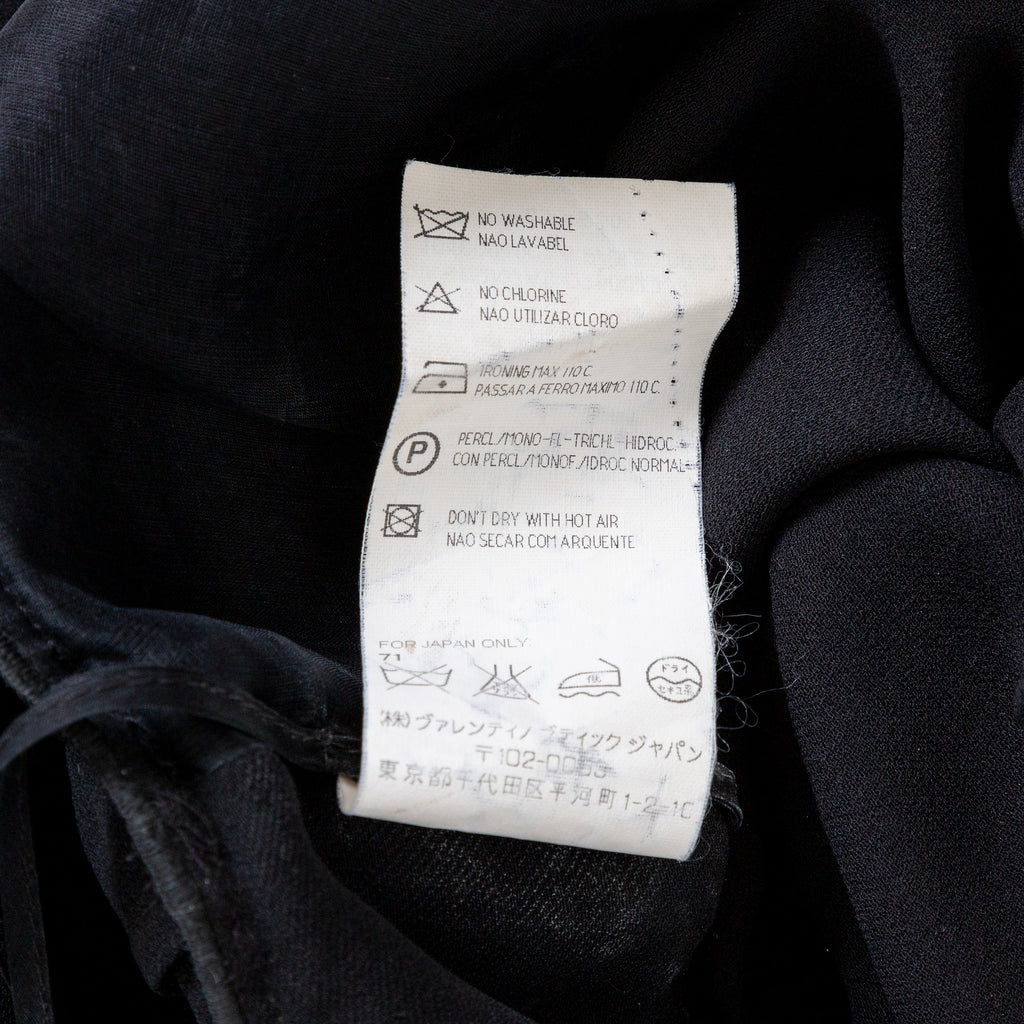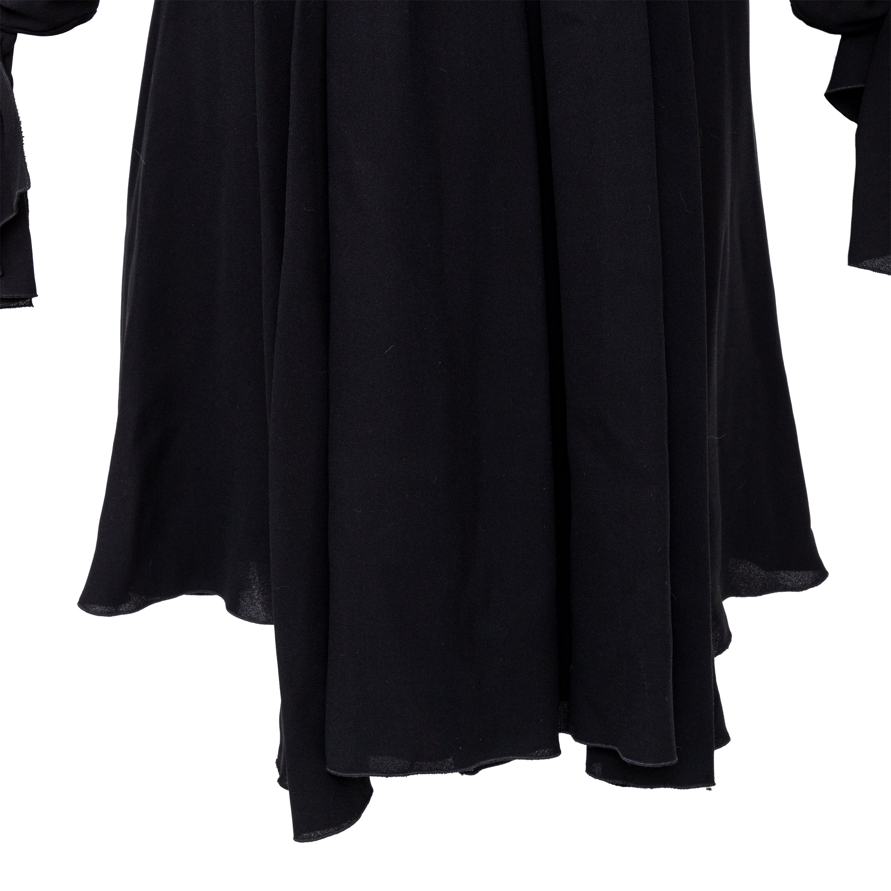 Crafted from soft chiffon silk in black, this vintage dress features a flowy midi silhouette, tie-knot neck, and tassel panel details at the sleeve hems for added elegance.
