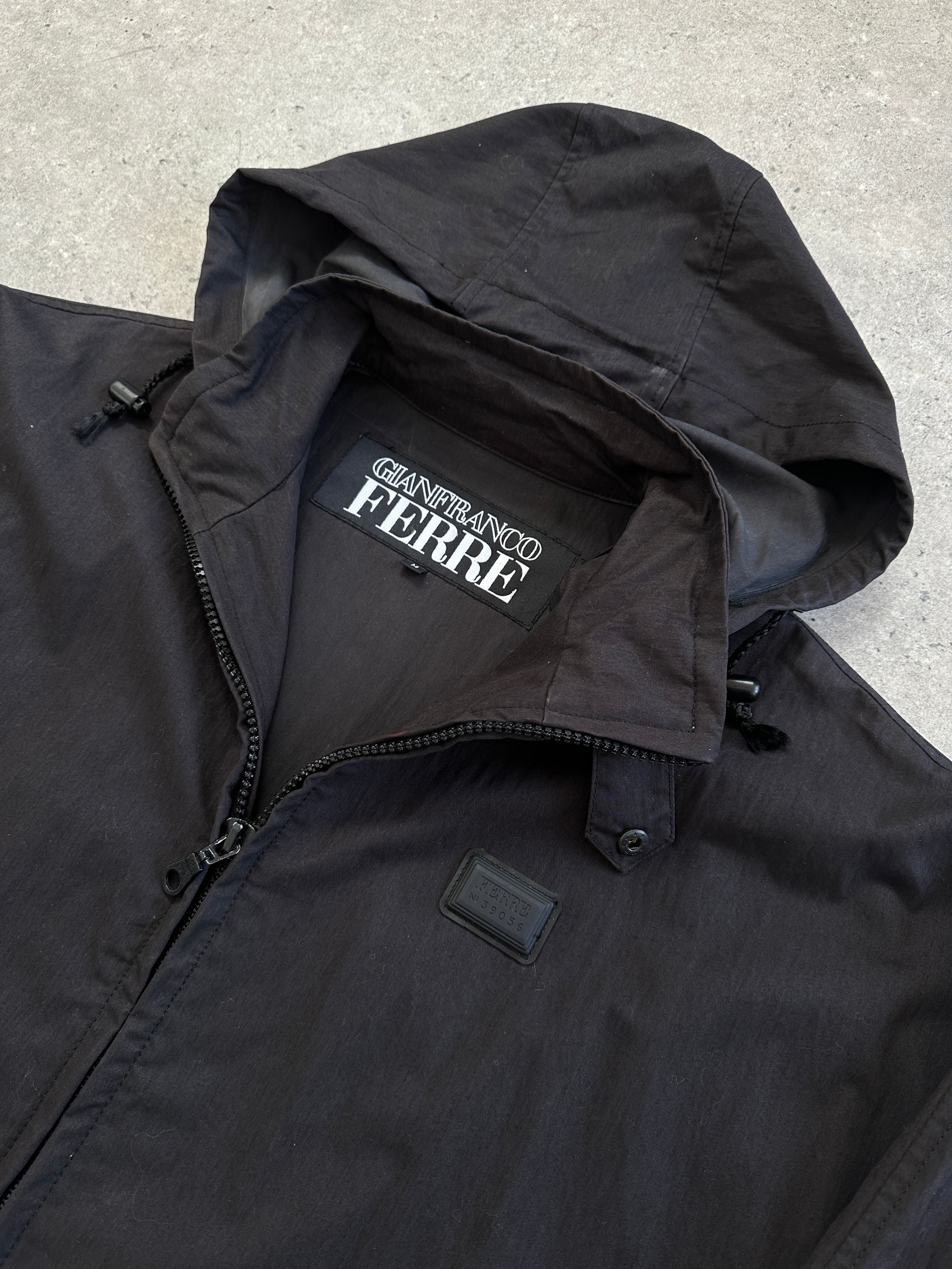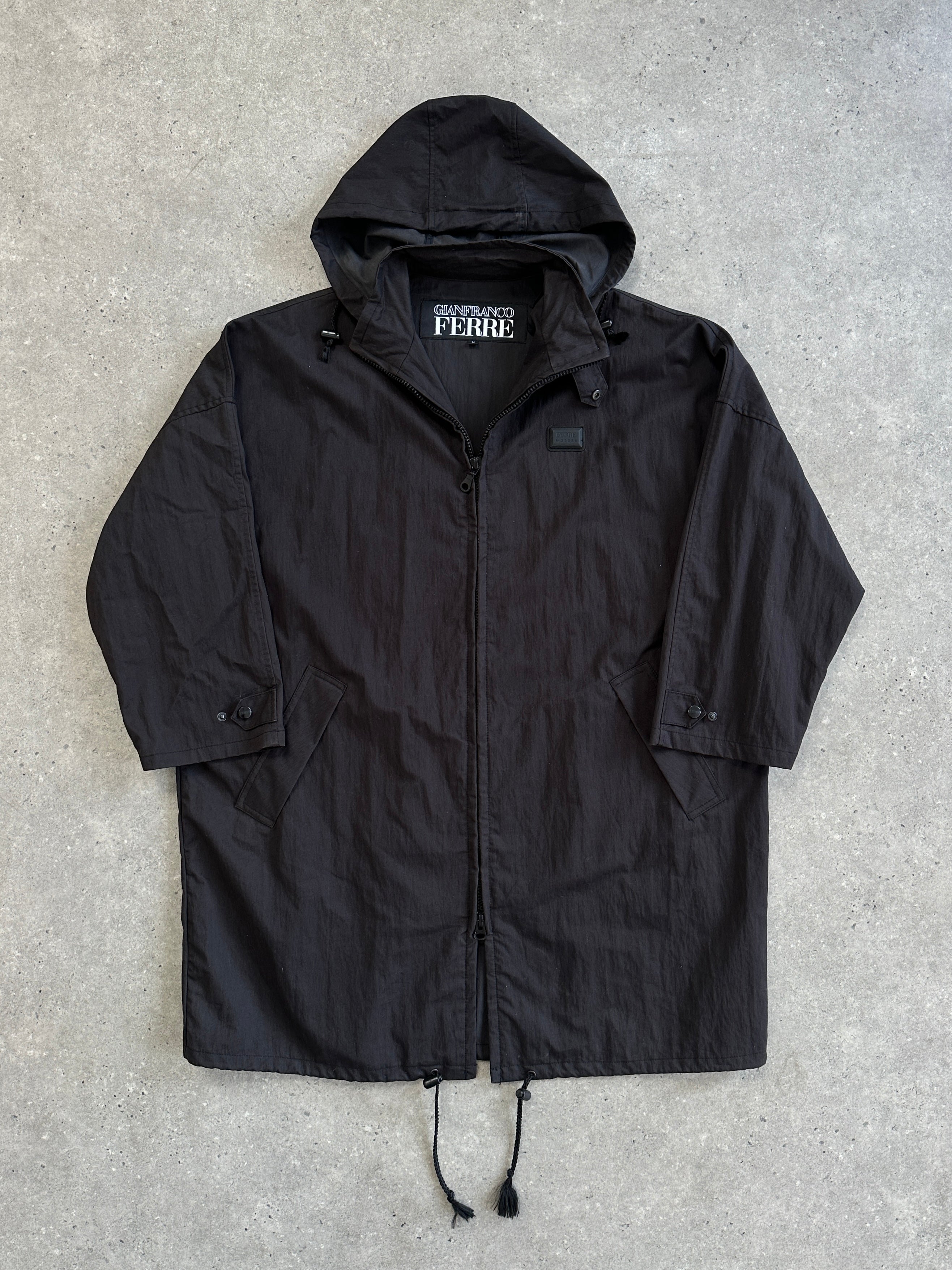Gianfranco Ferre Crinkle Hooded Parka Coat - XL
