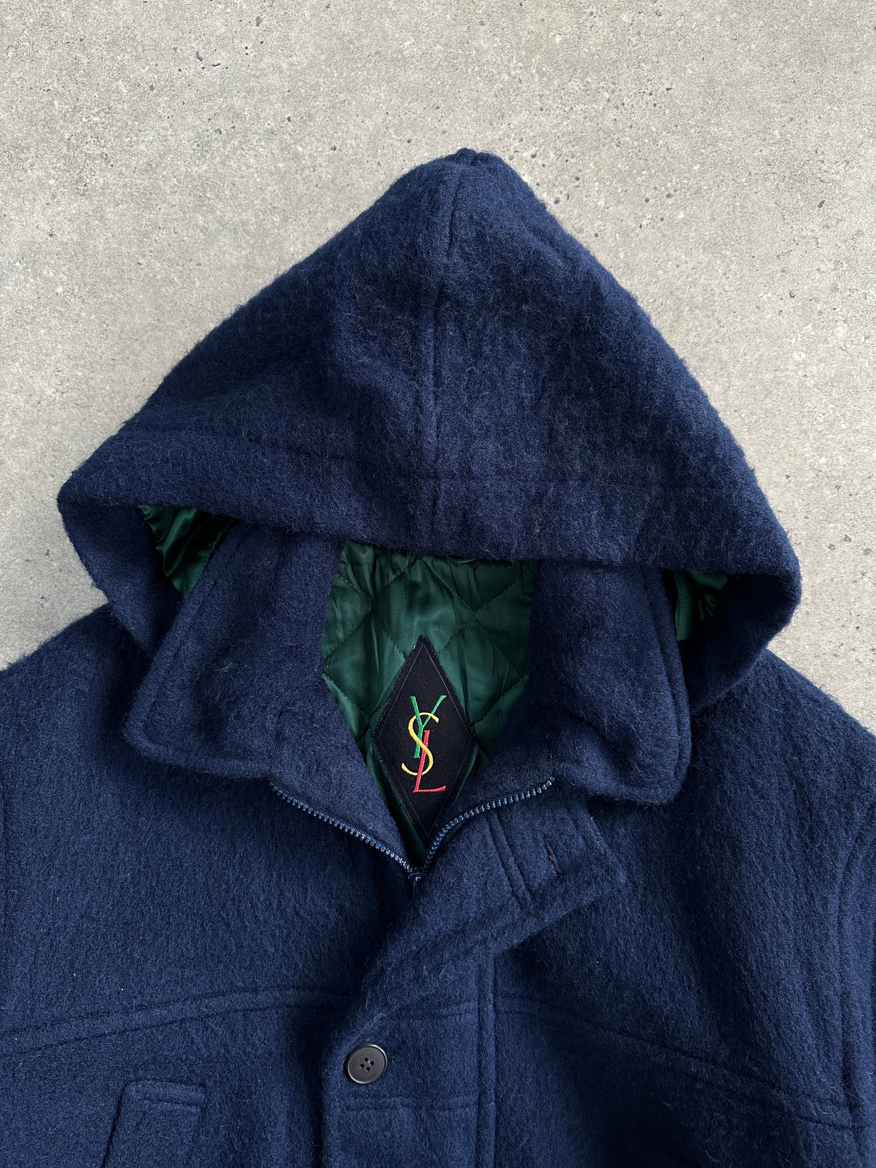 Yves Saint Laurent Sportswear 1980s Pure Wool Hooded Coat - XL/XXL
