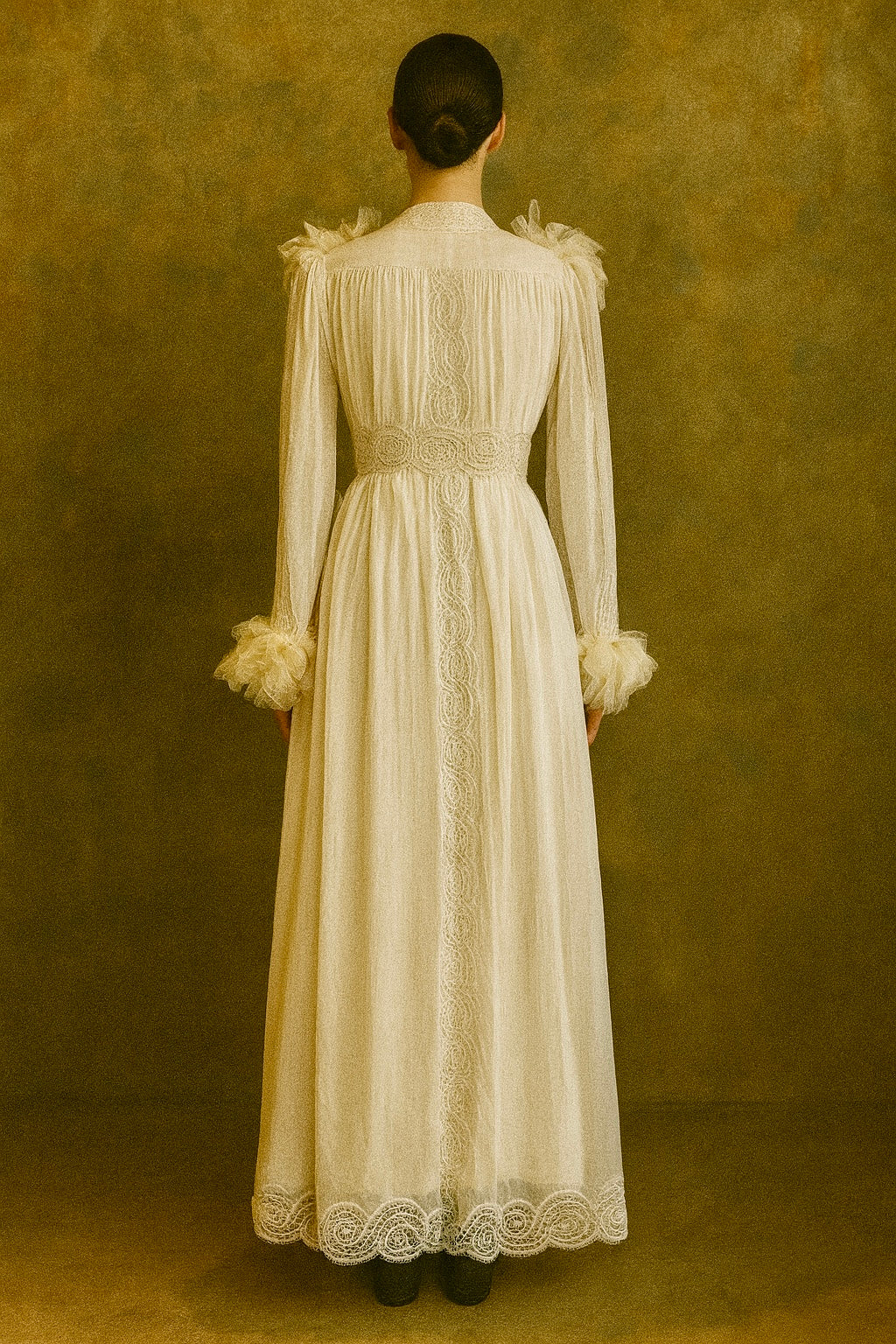 Iman, 70s chiffon and lace button down dress with lace belt