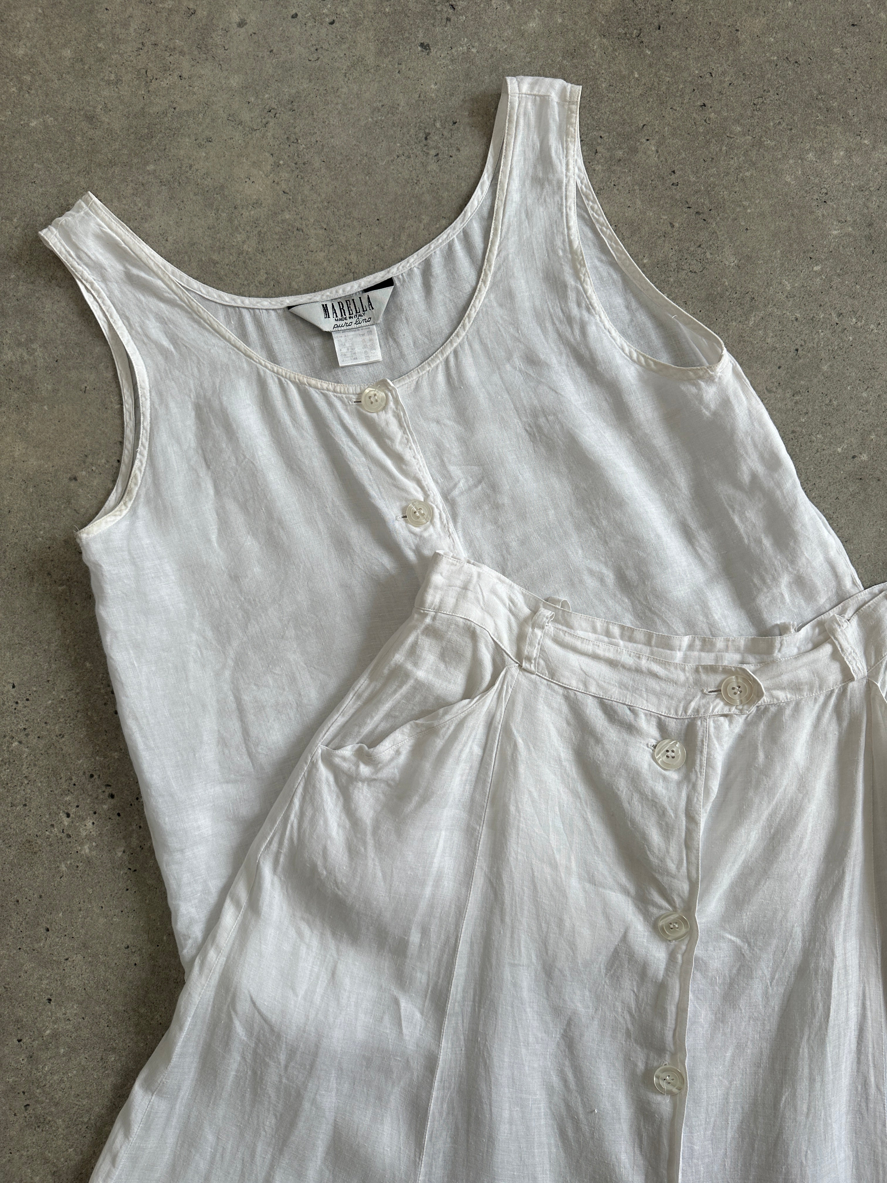 Marella 2000s Pure Linen Two Piece Skirt Top Set - L/W30
