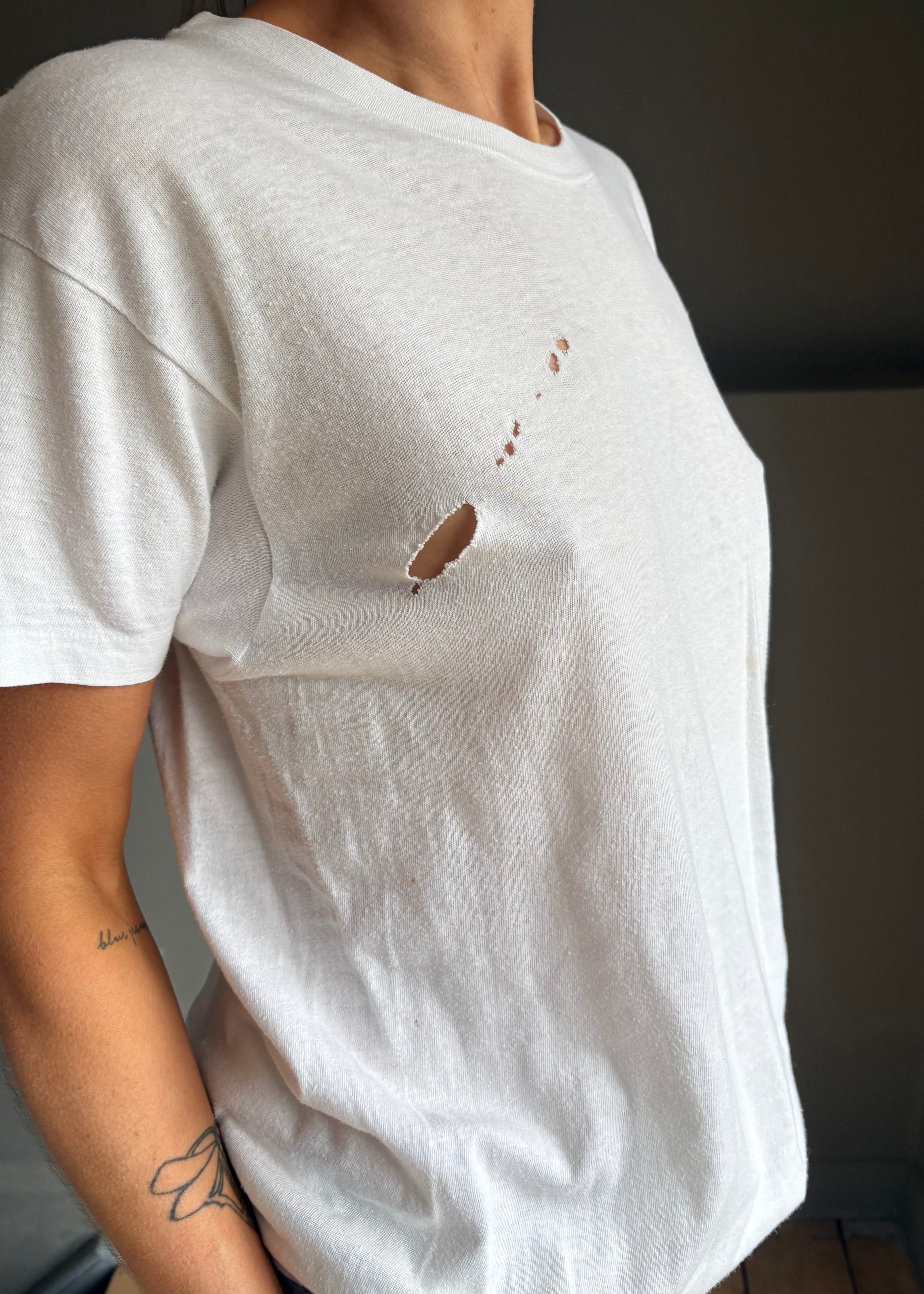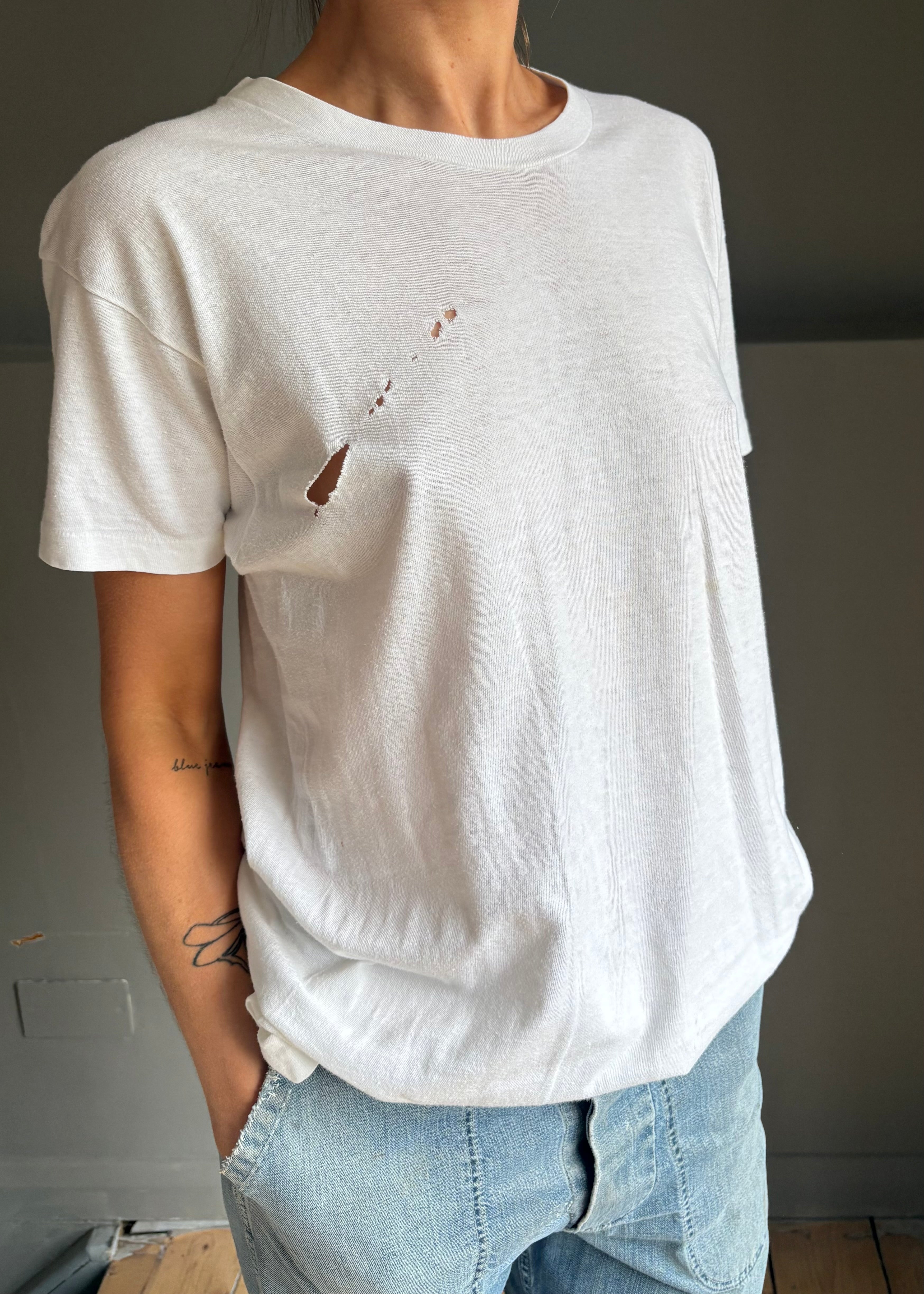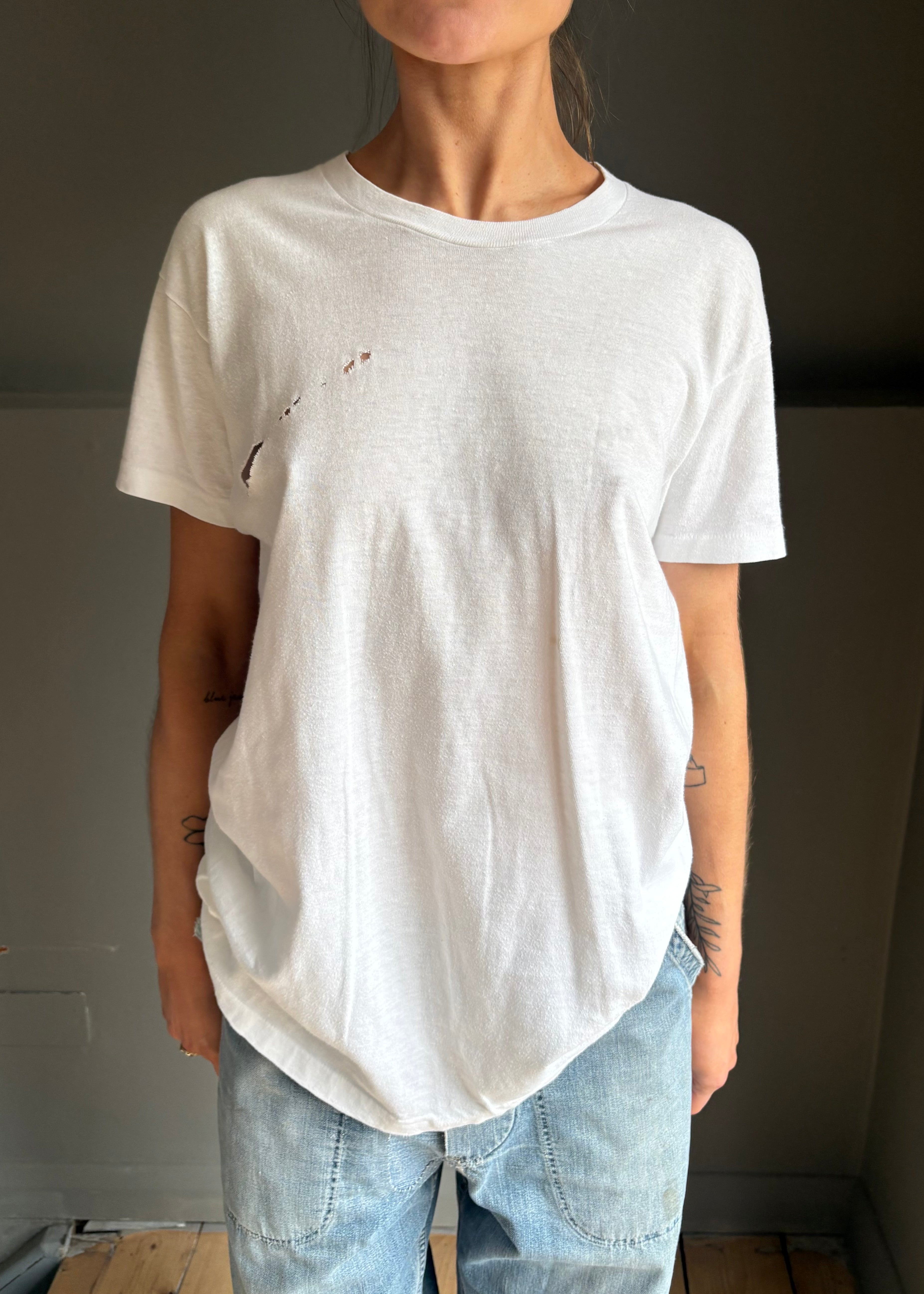 1980S WHITE COTTON HANES TSHIRT WITH A SLASH