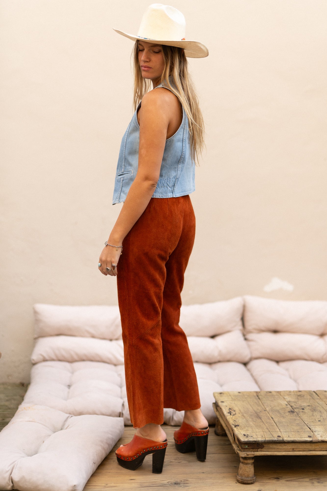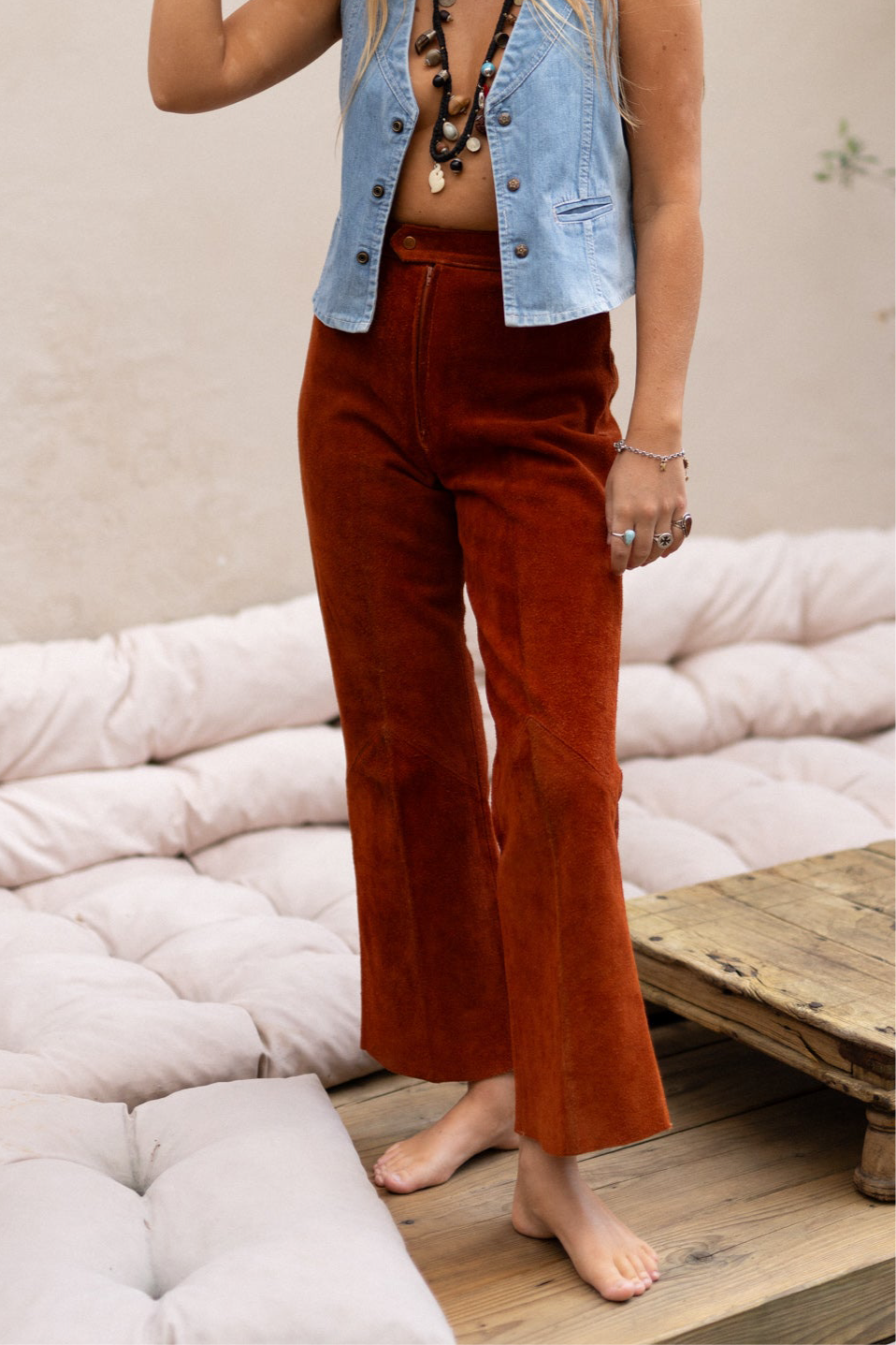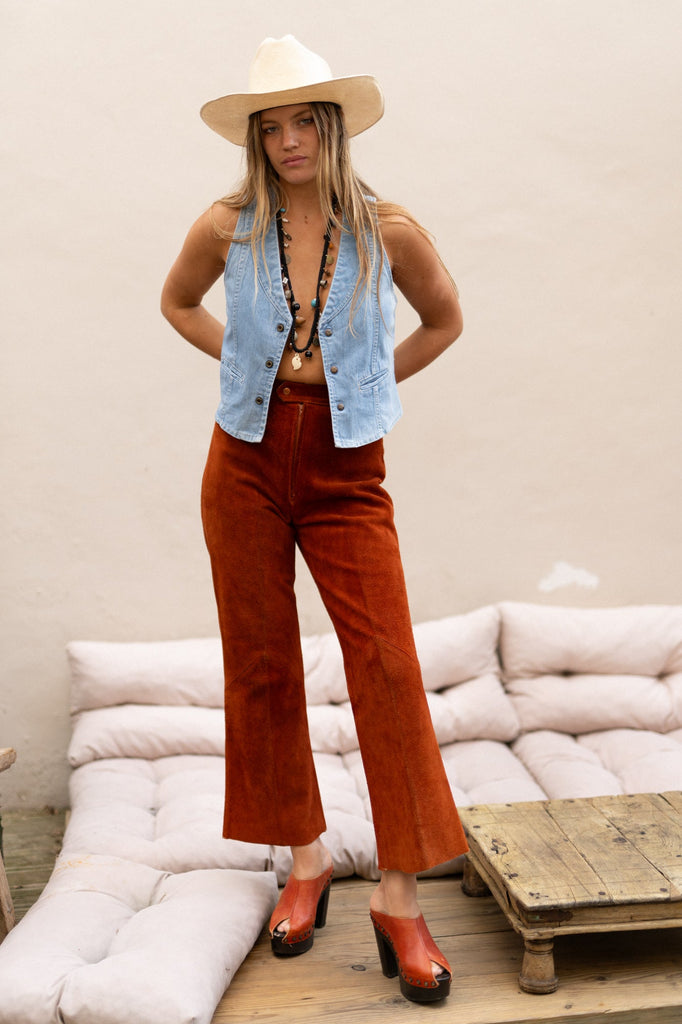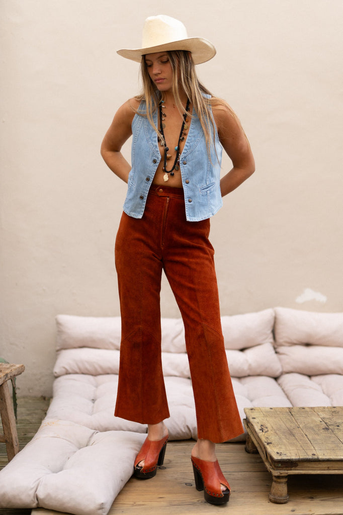 BURNT ORANGE SUEDE FLARES