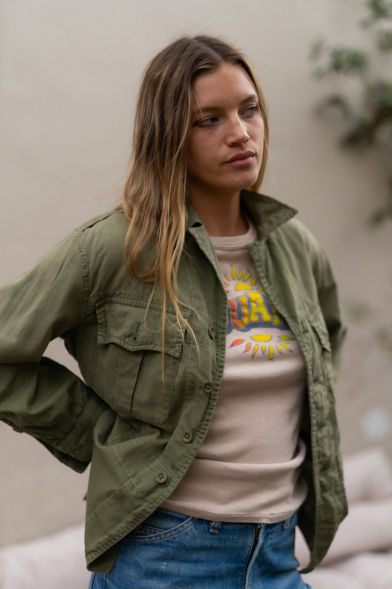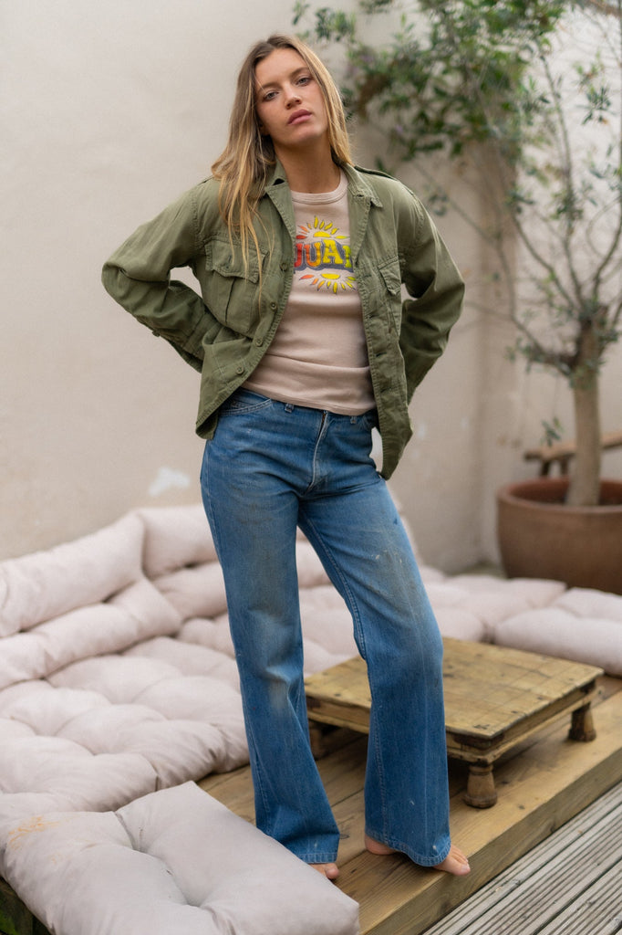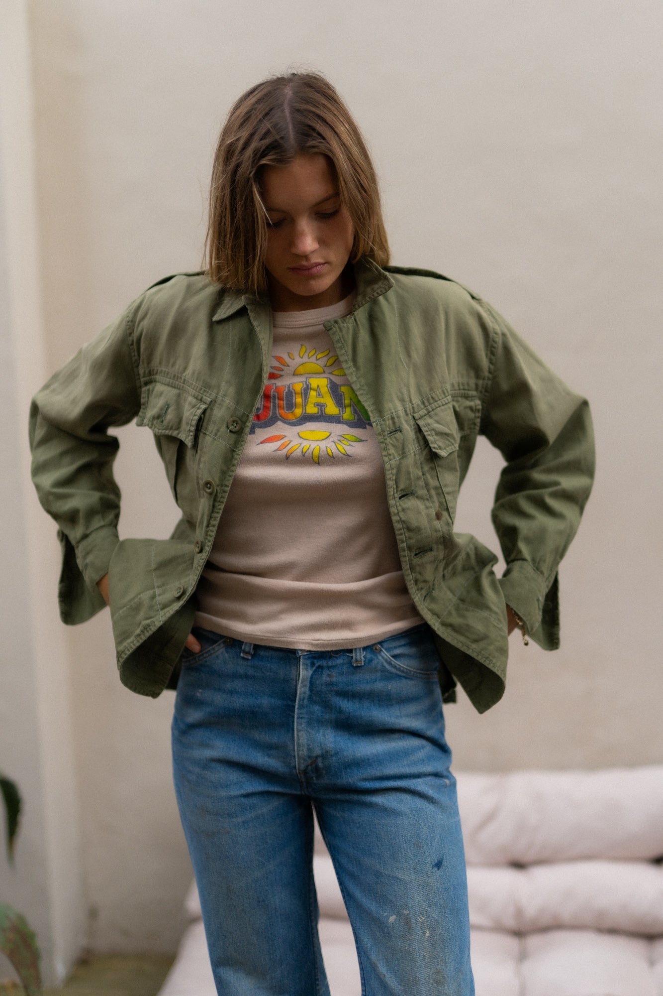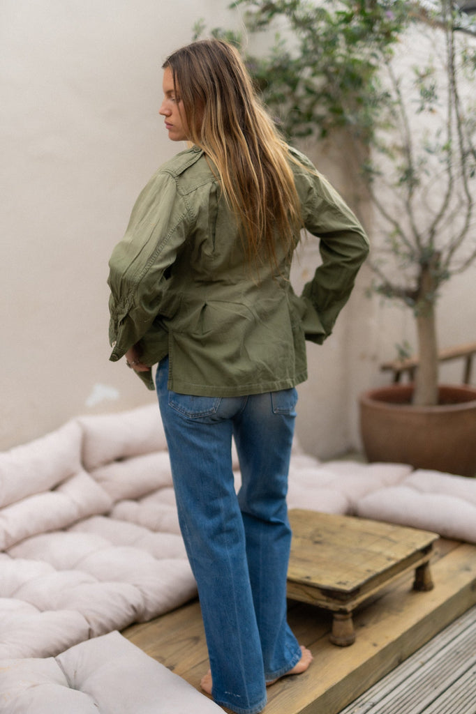 40S/50S MILITARY UNIFORM JACKET. FOUR FRONT POCKETS, STRIPES ON THE ARM, WELL WORN WITH THE RIGHT AMOUNT OF WEAR.
