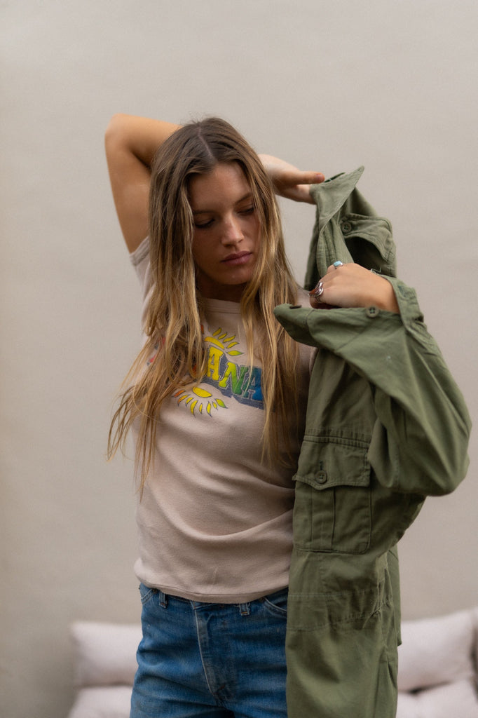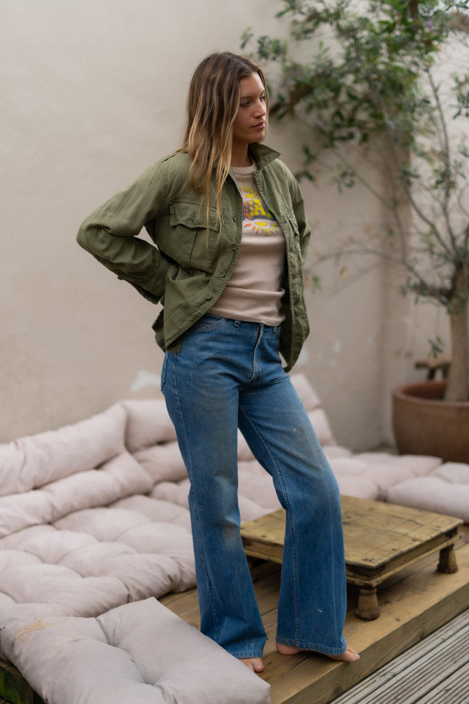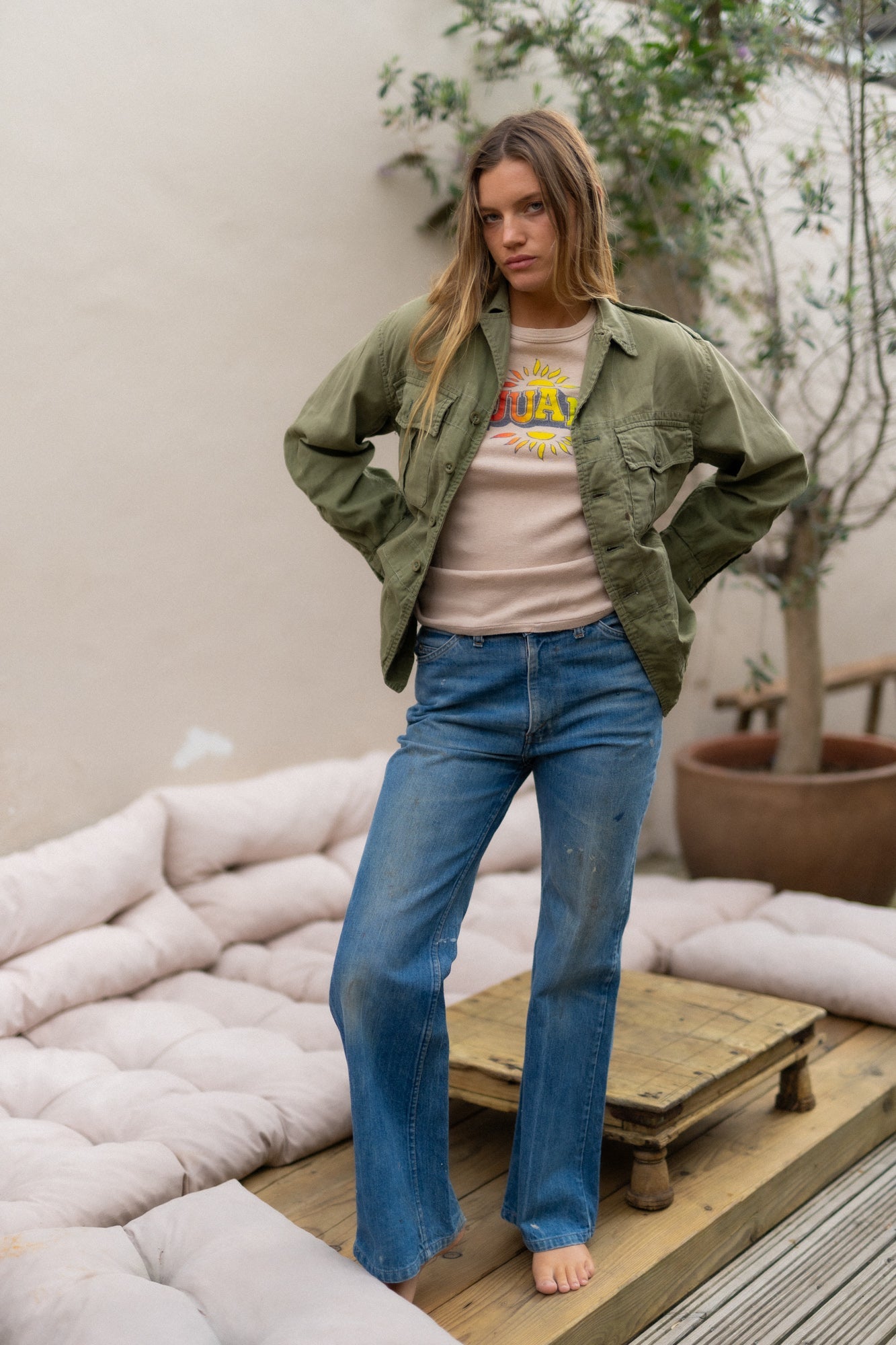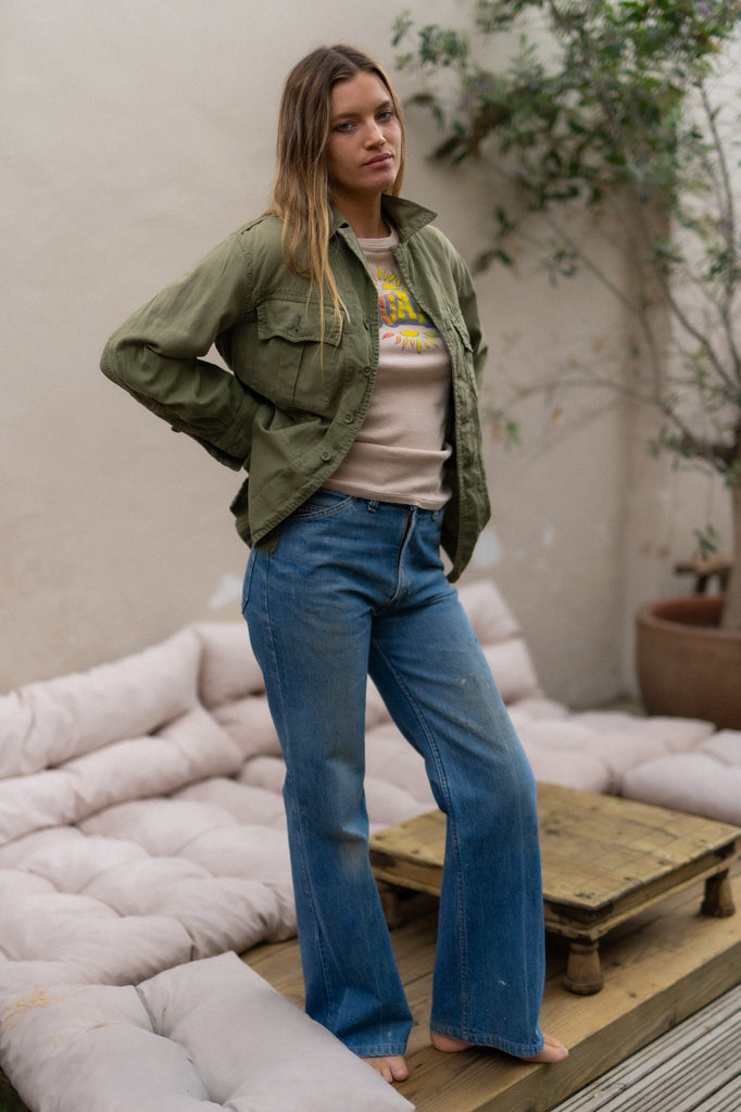 40S/50S MILITARY UNIFORM JACKET. FOUR FRONT POCKETS, STRIPES ON THE ARM, WELL WORN WITH THE RIGHT AMOUNT OF WEAR.